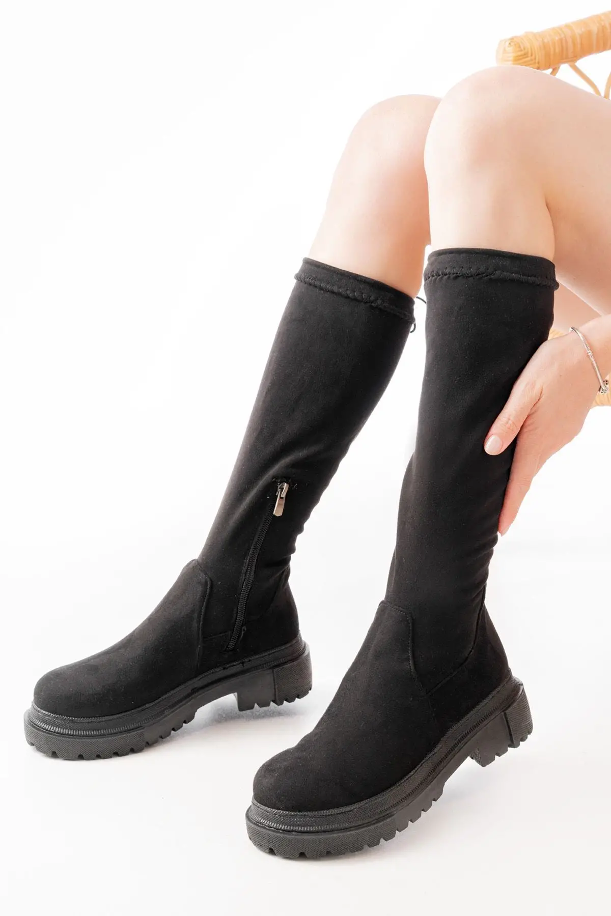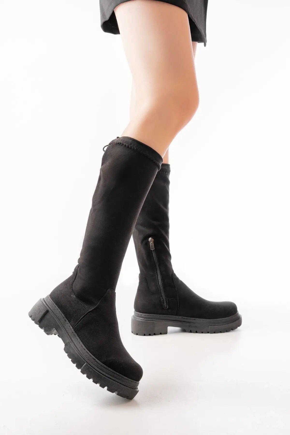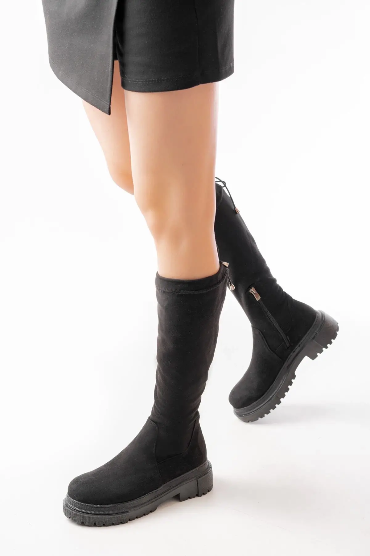 Siyah Süet Fermuarlı Günlük Kadın Çizme