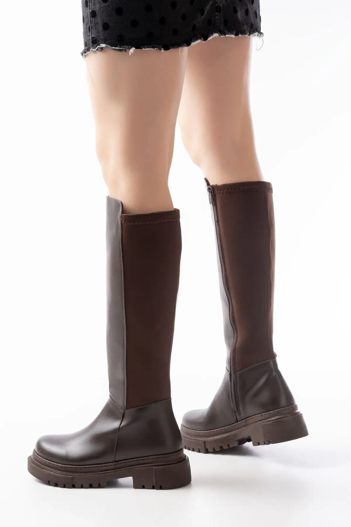 Kahve Arkası Streç Fermuarlı Günlük Kadın Çizme