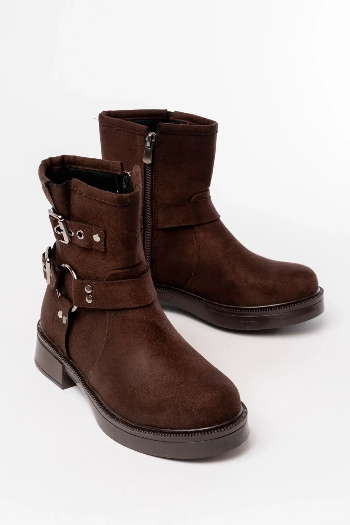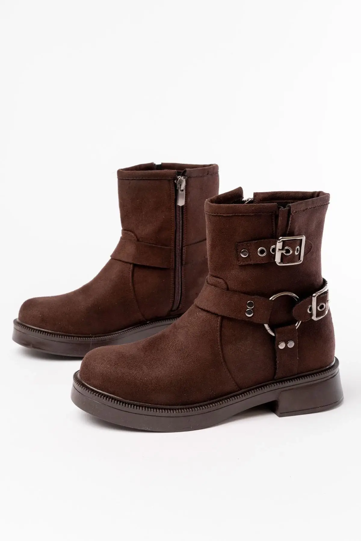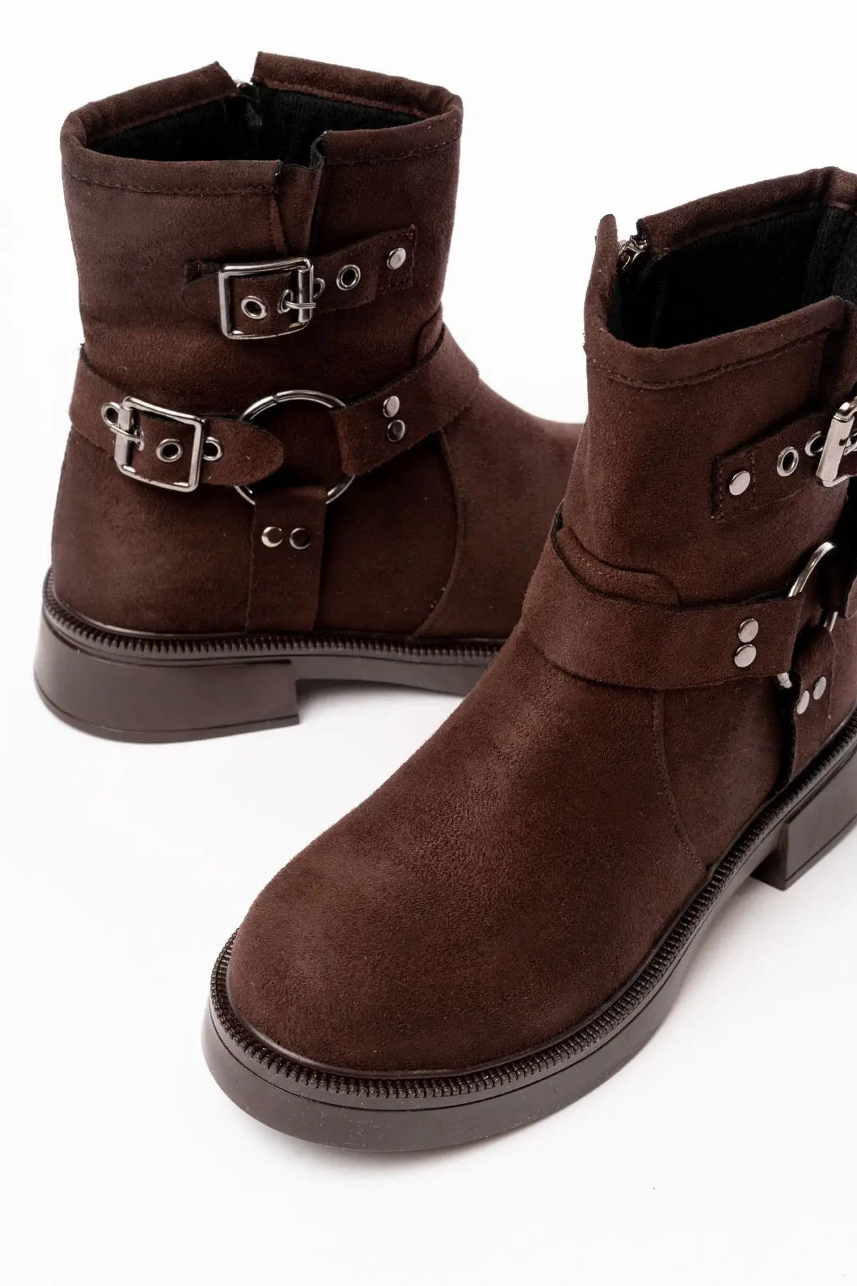Kahverengi Süet Toka Aksesuarlı Fermuarlı Günlük Kadın Bot