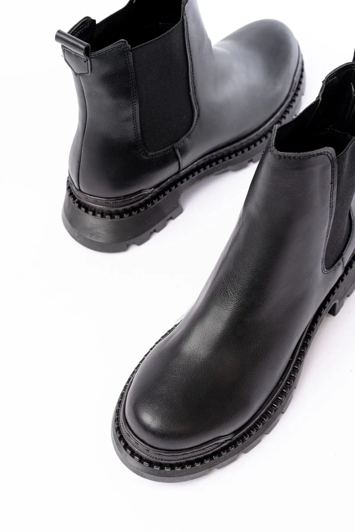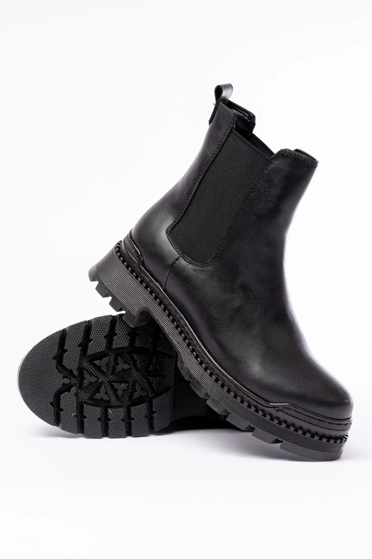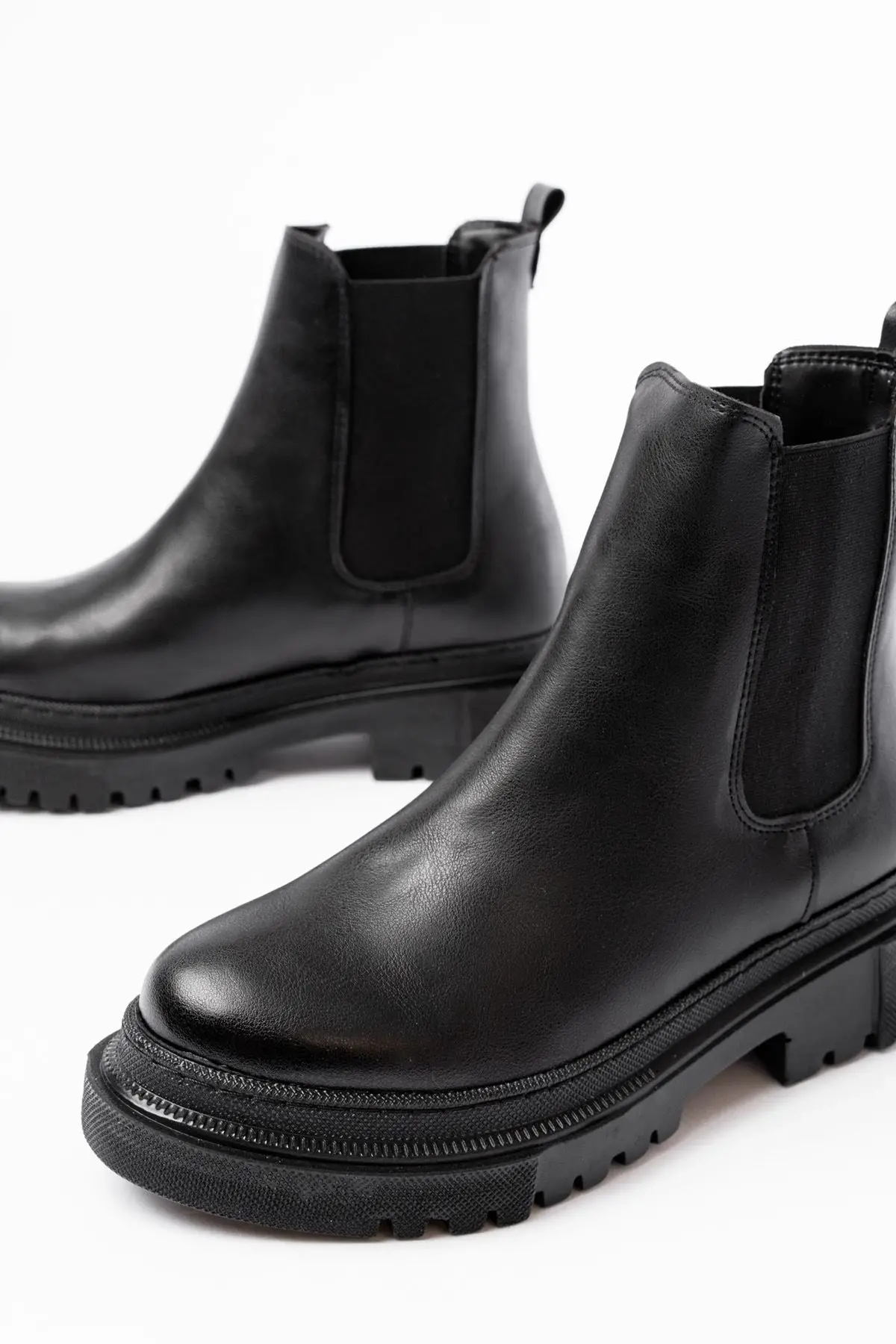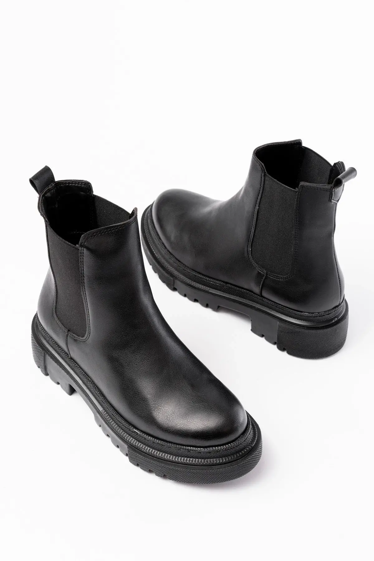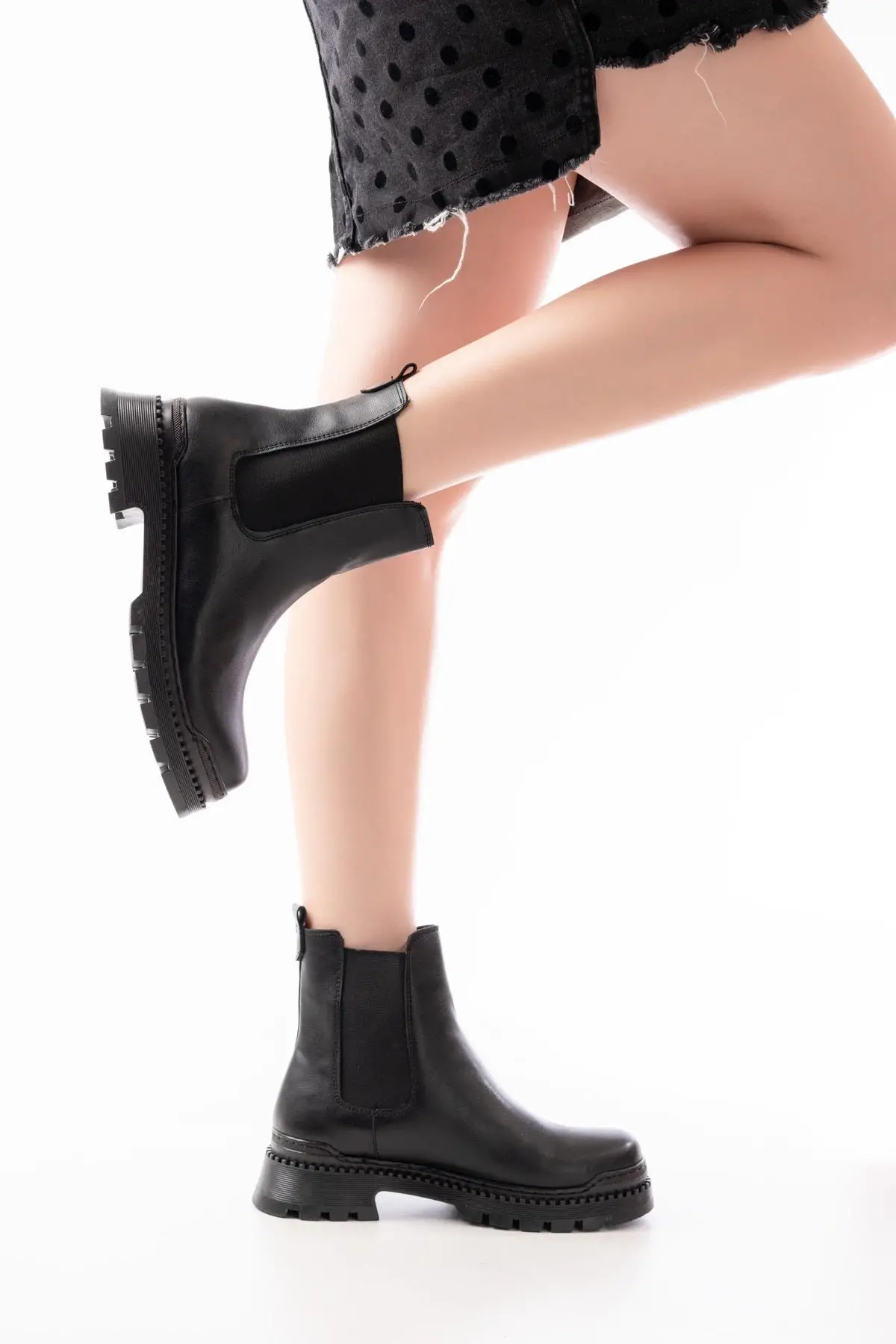 Siyah Bağcıklı Kalın Tabanlı Bağcıklı Fermuarlı Günlük Kadın Bot