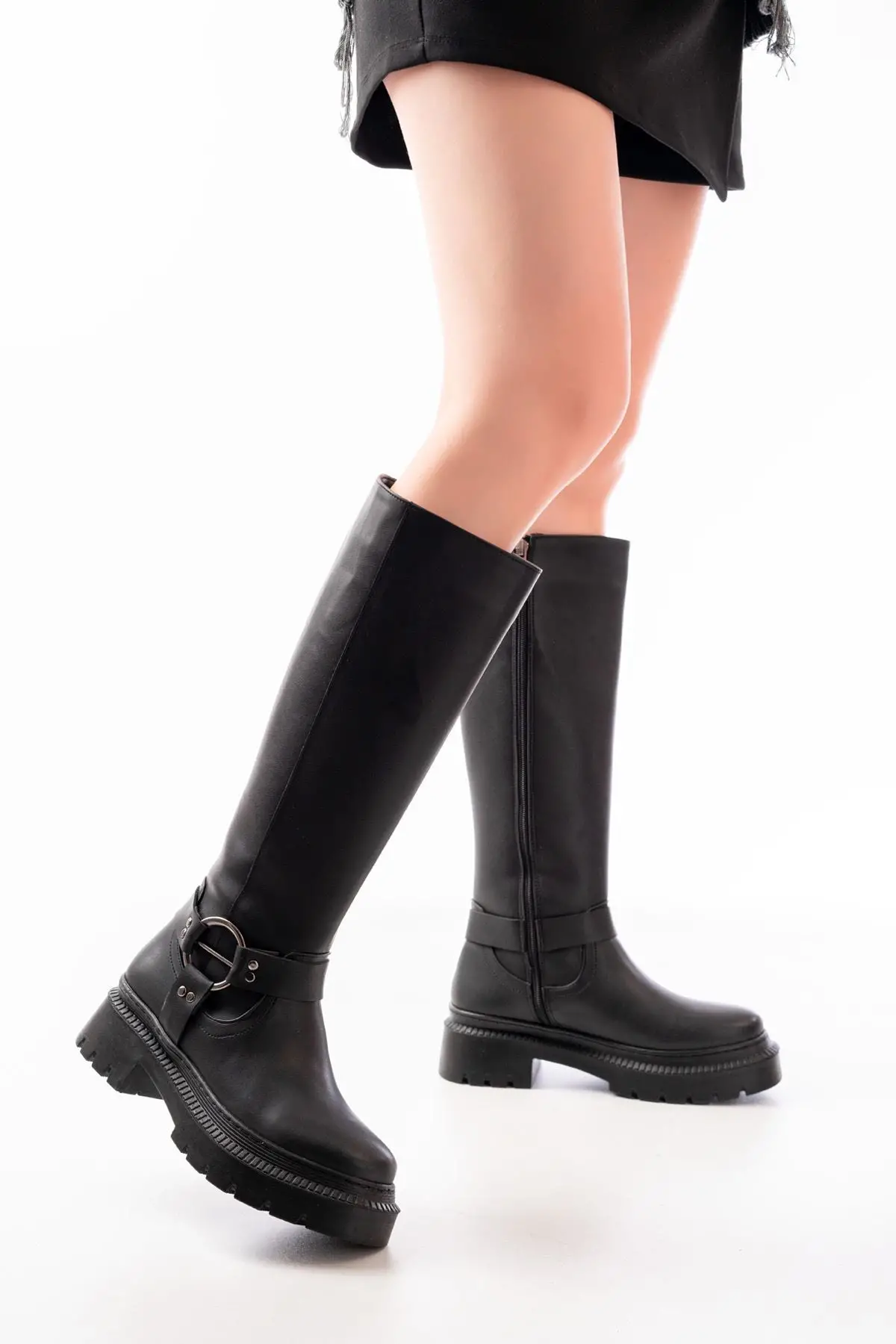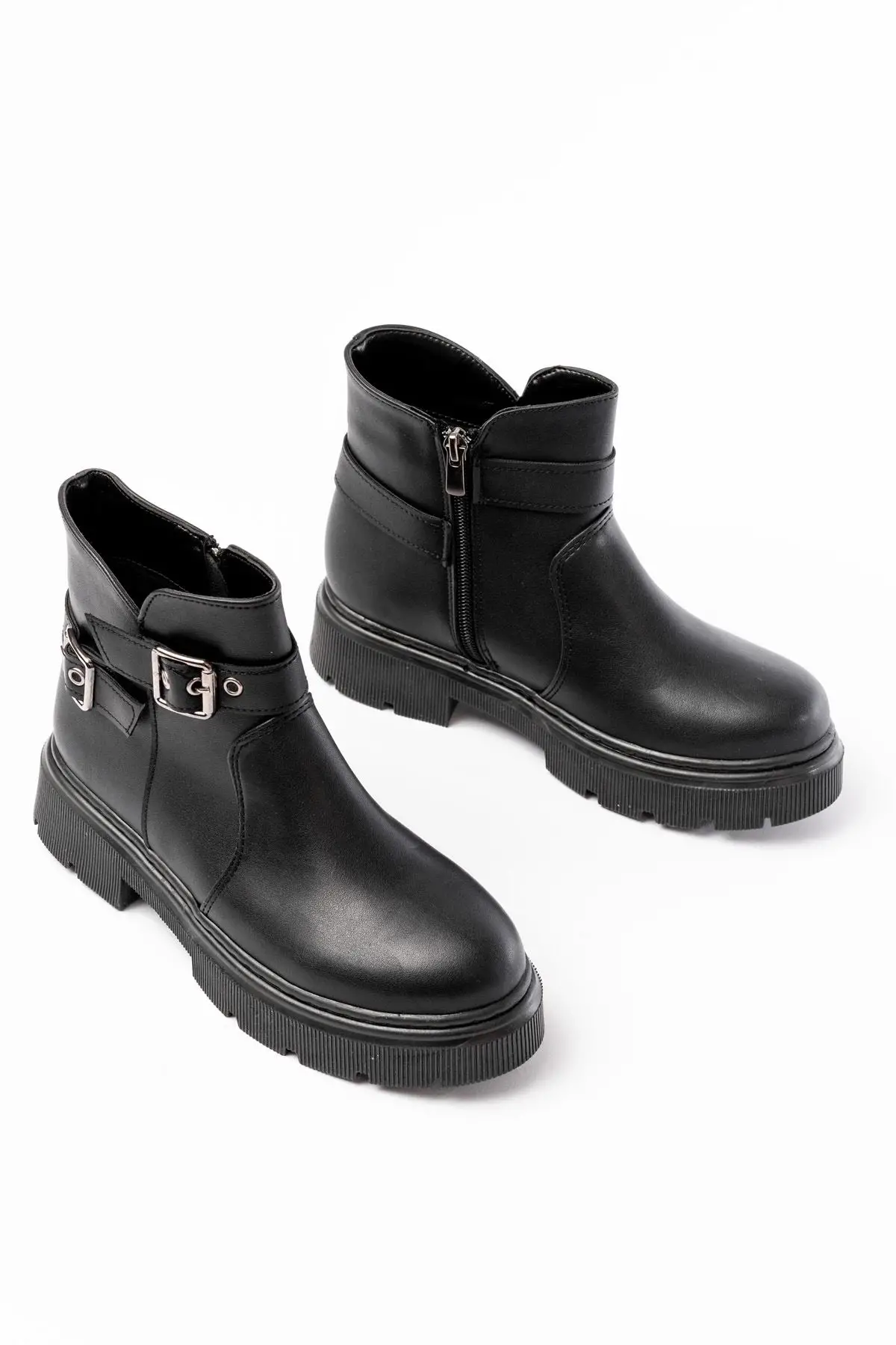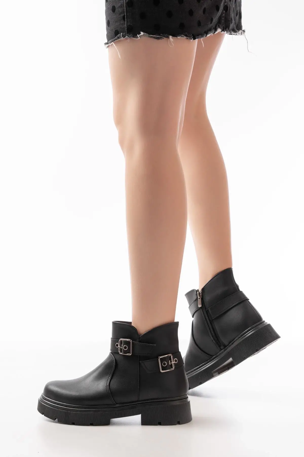 Siyah Toka Aksesuarlı Fermuarlı Günlük Kadın Bot