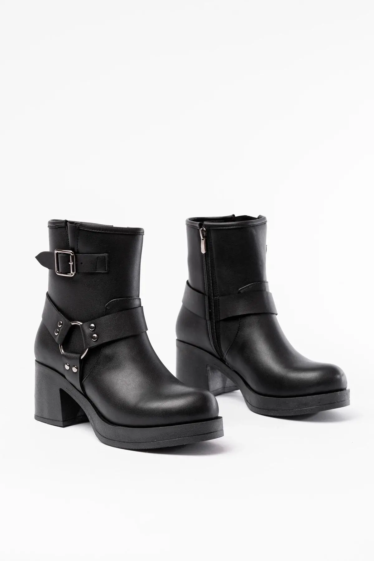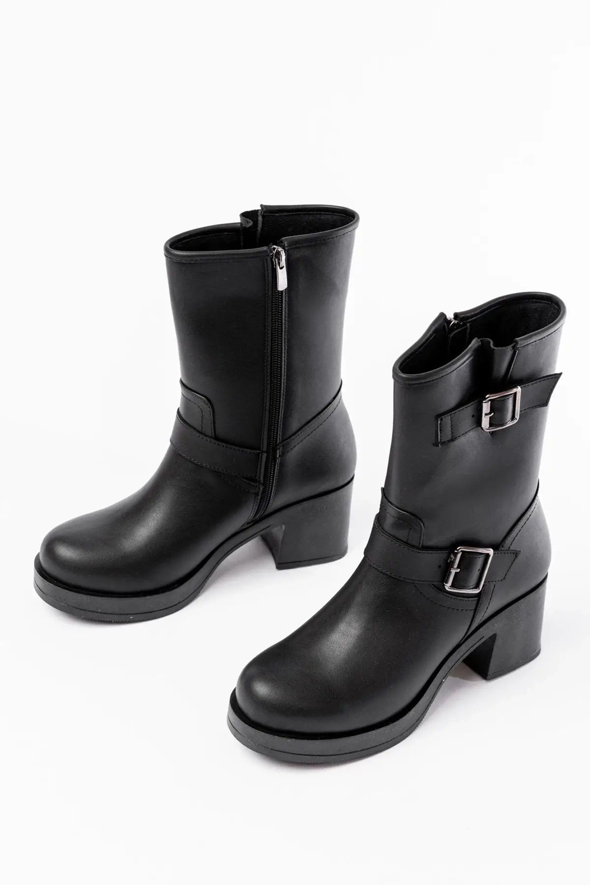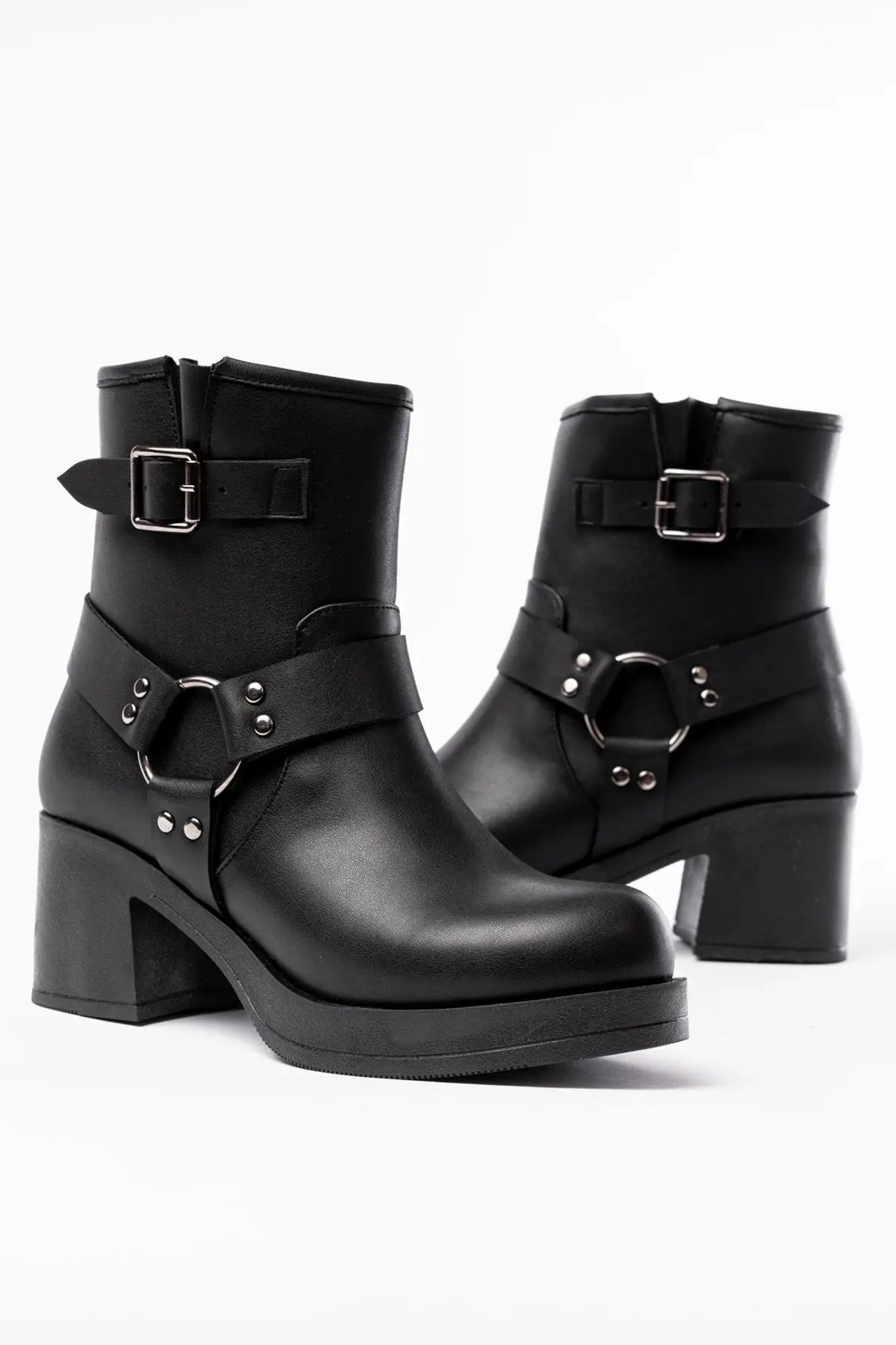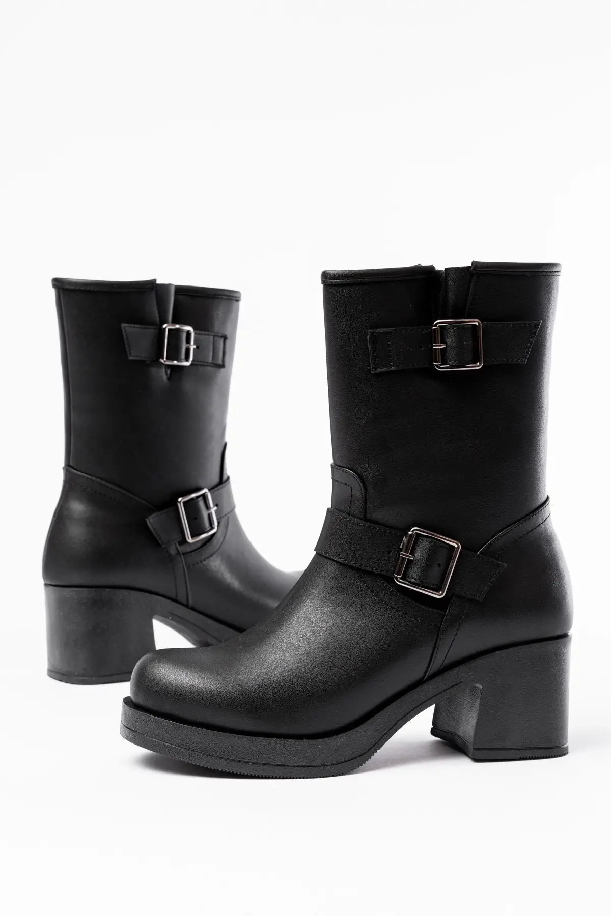 Siyah Toka Aksesuarlı Fermuarlı Kalın Topuklu Günlük Kadın Bot