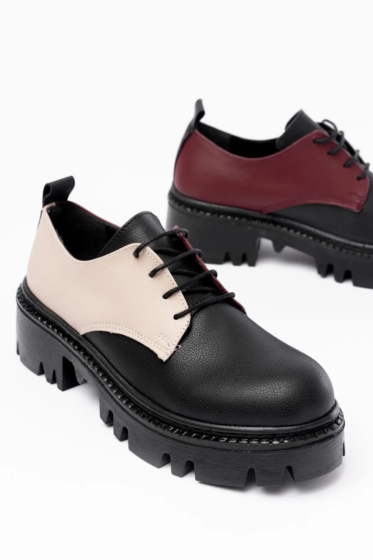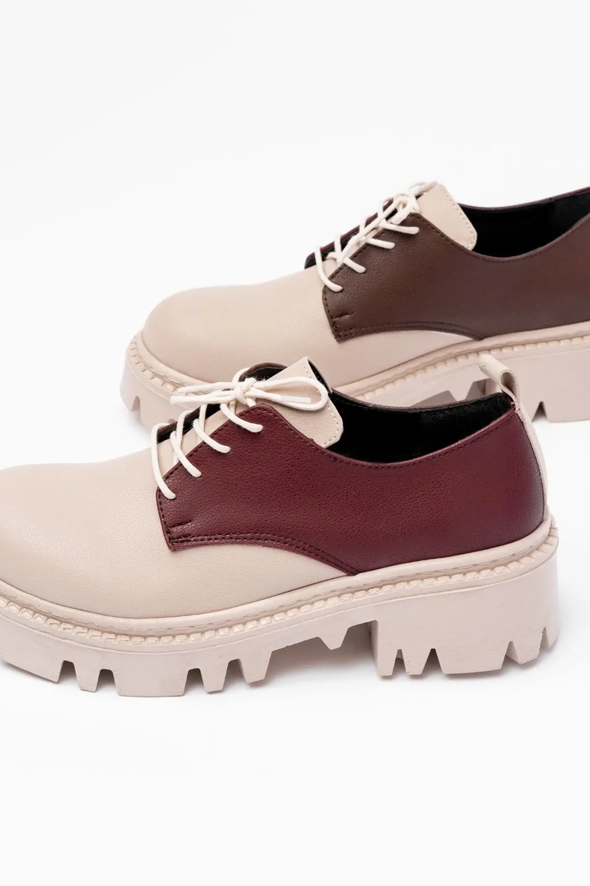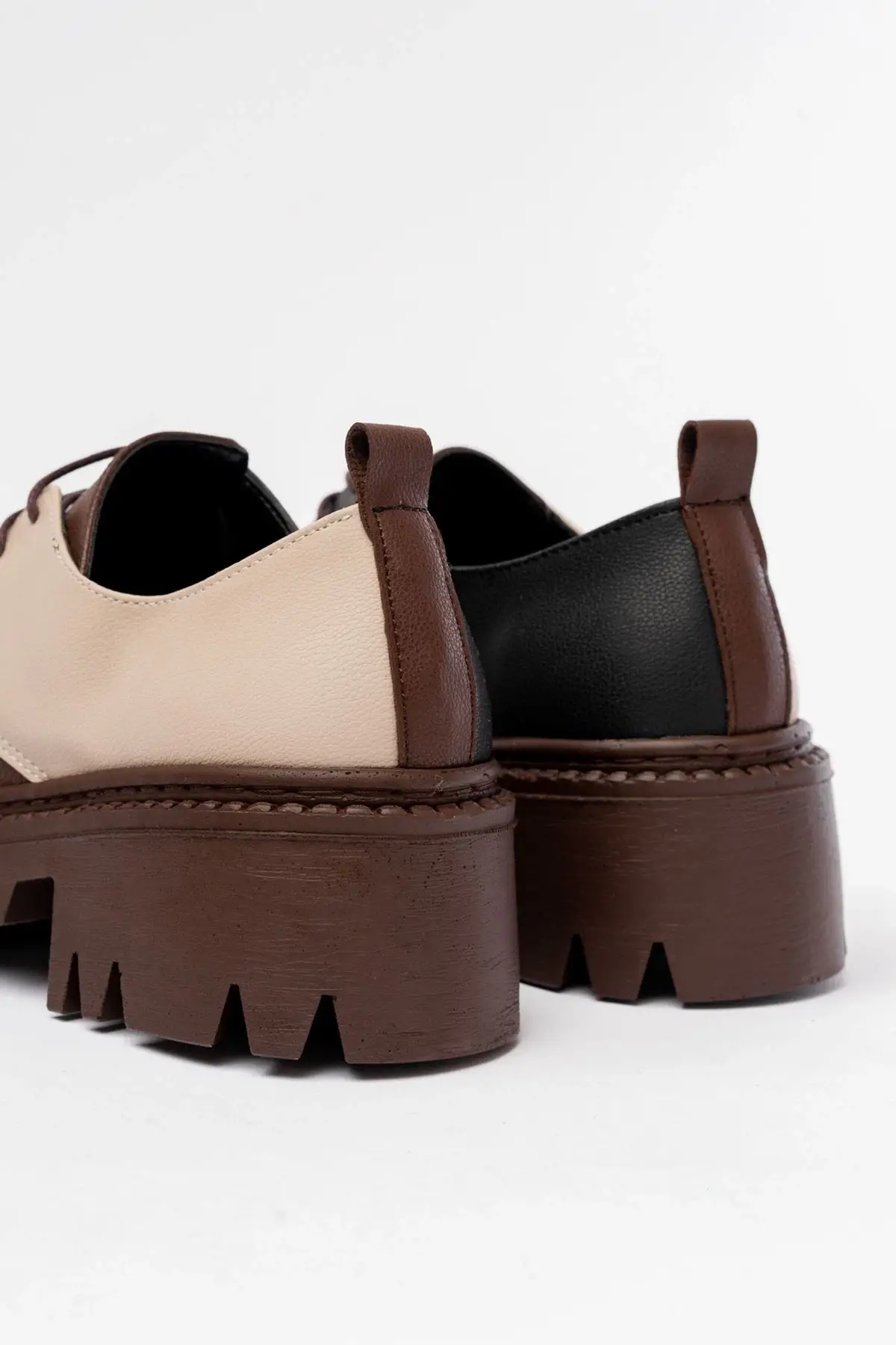 Bej Garni Bağcıklı Günlük Yüksek Tabanlı Loafer Ayakkabı