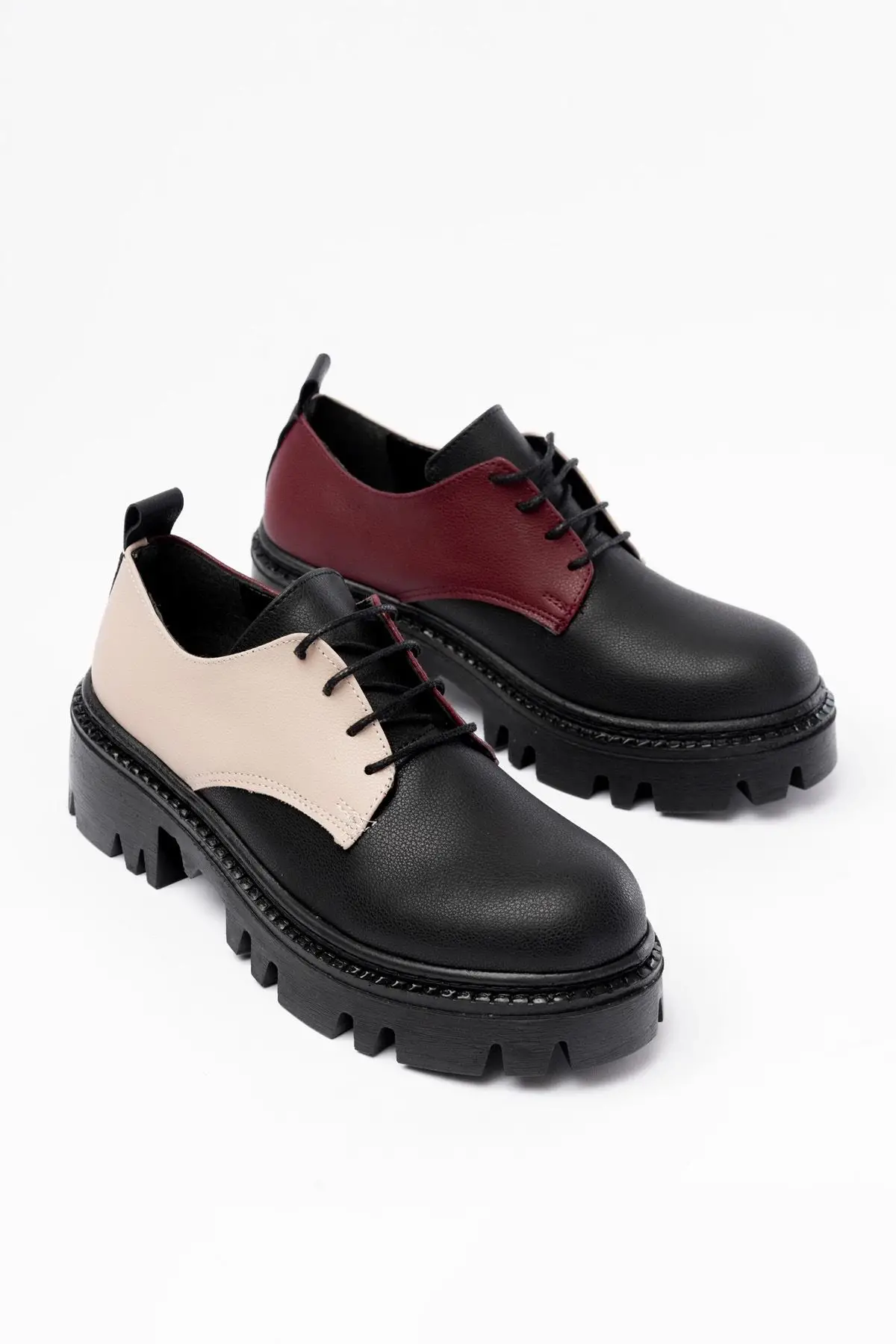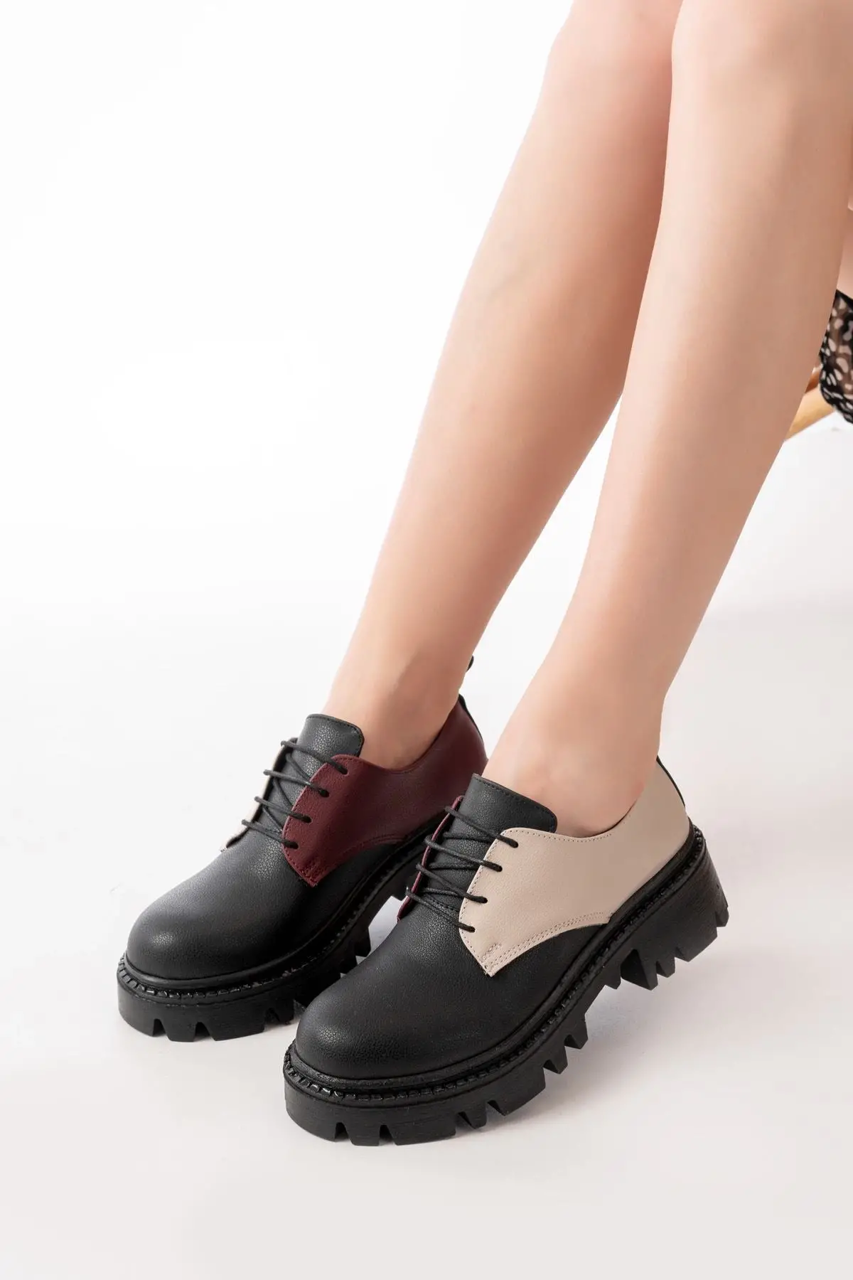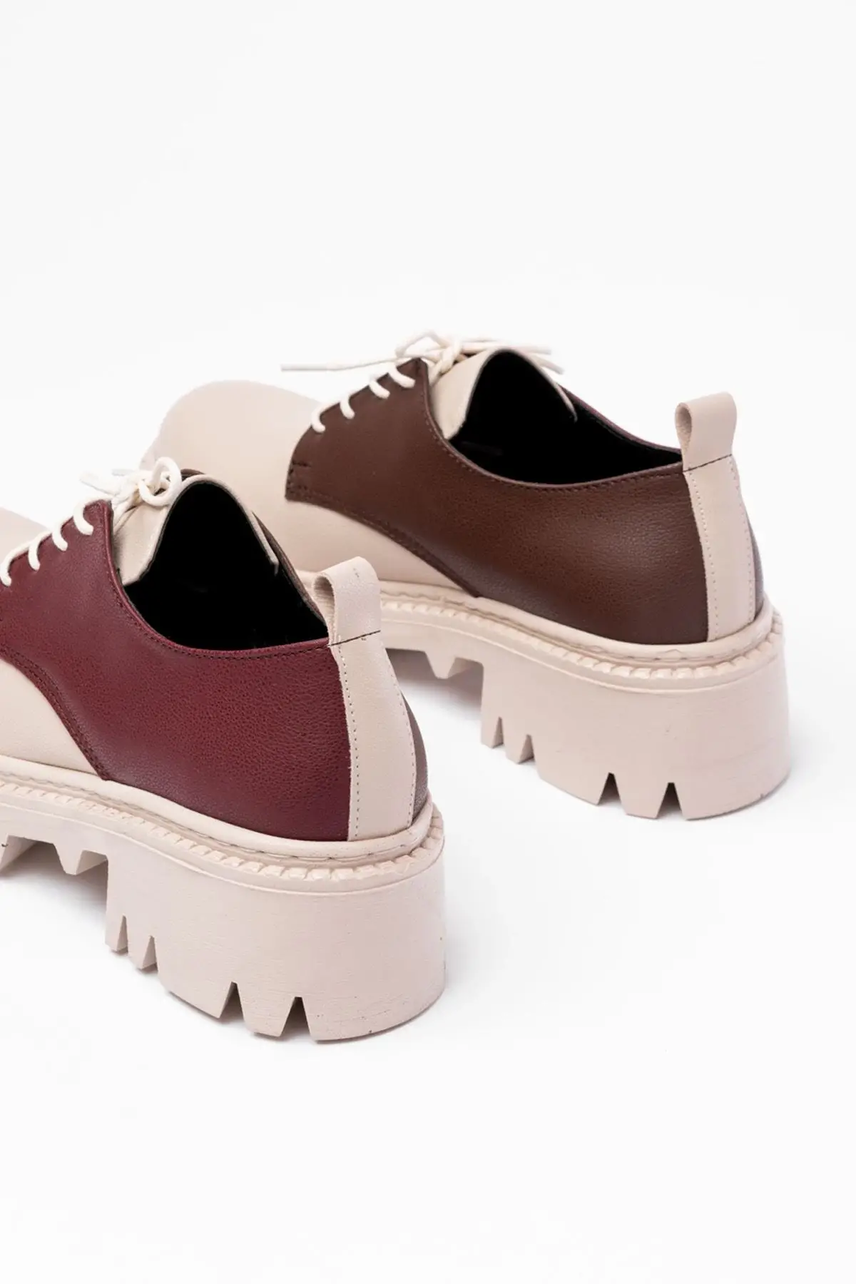 Bej Garni Bağcıklı Günlük Yüksek Tabanlı Loafer Ayakkabı