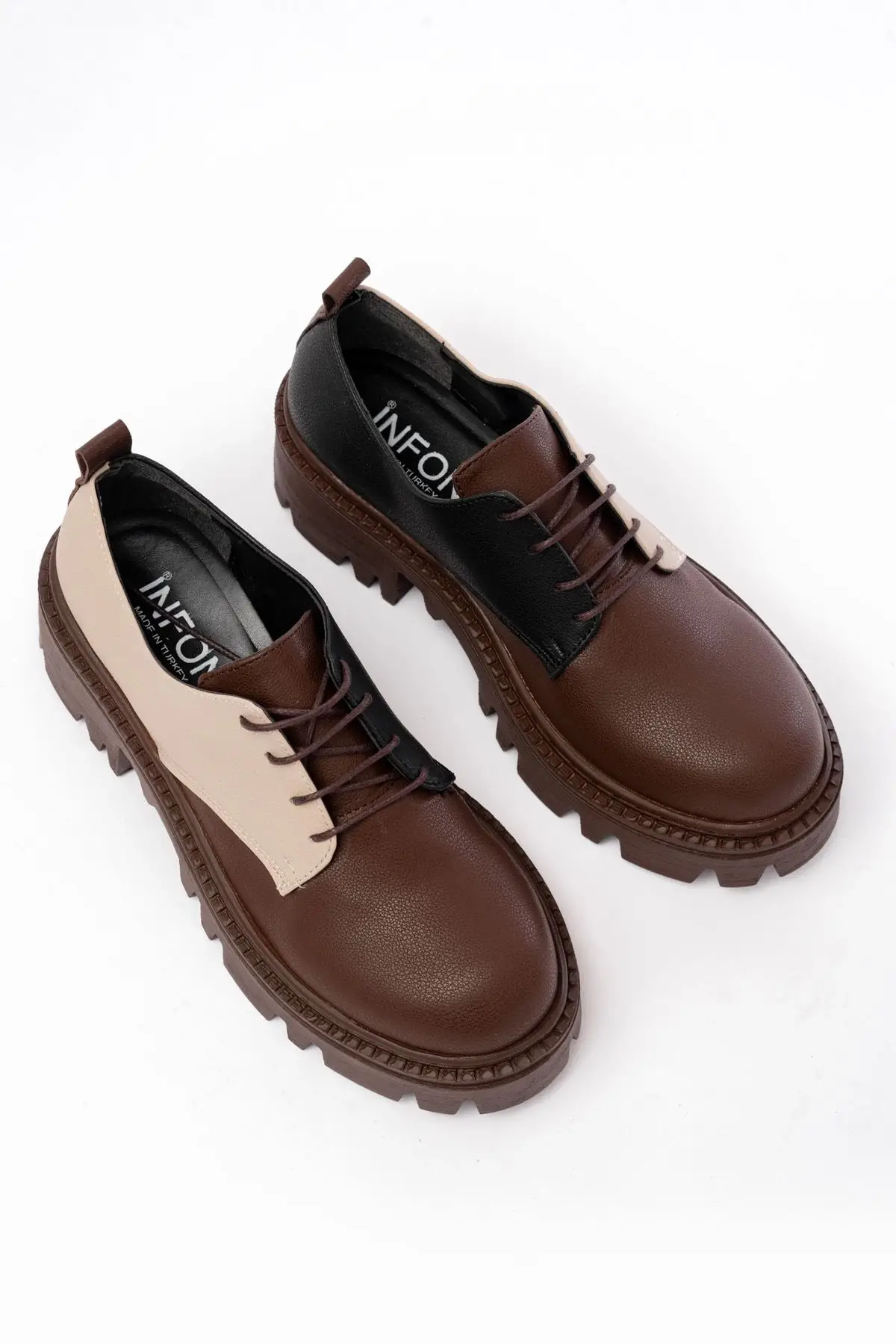 Kahverengi Garni Bağcıklı Günlük Yüksek Tabanlı Loafer Ayakkabı