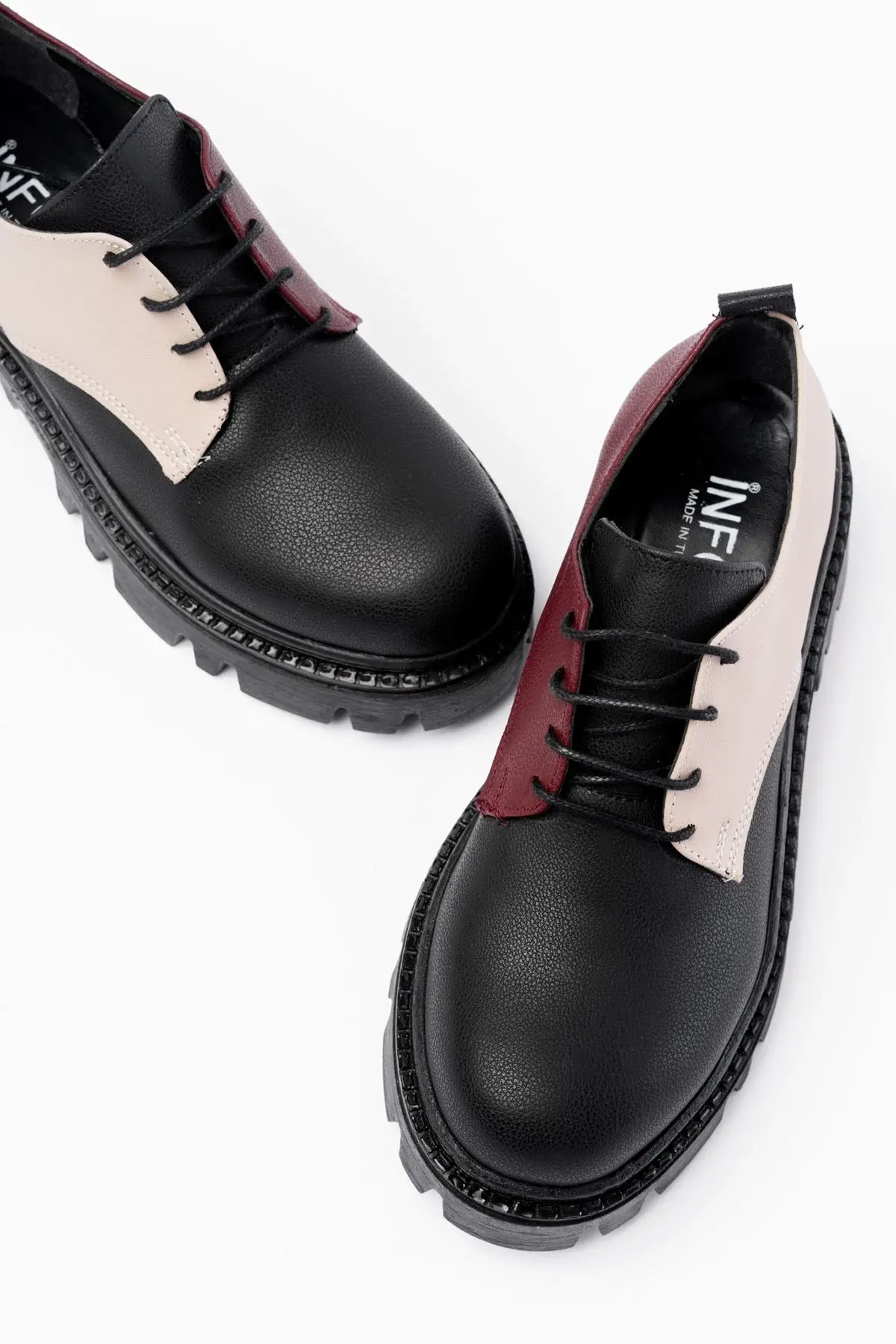 Siyah Garni Bağcıklı Günlük Yüksek Tabanlı Loafer Ayakkabı