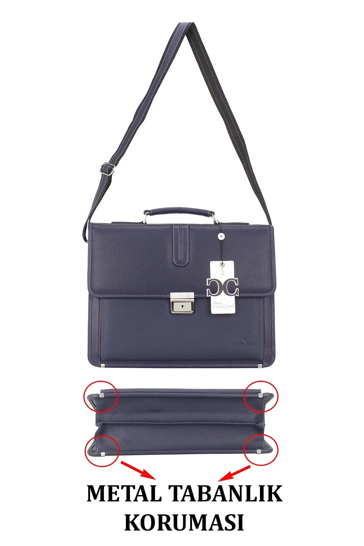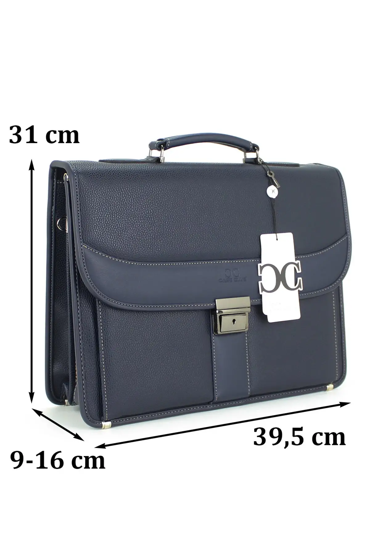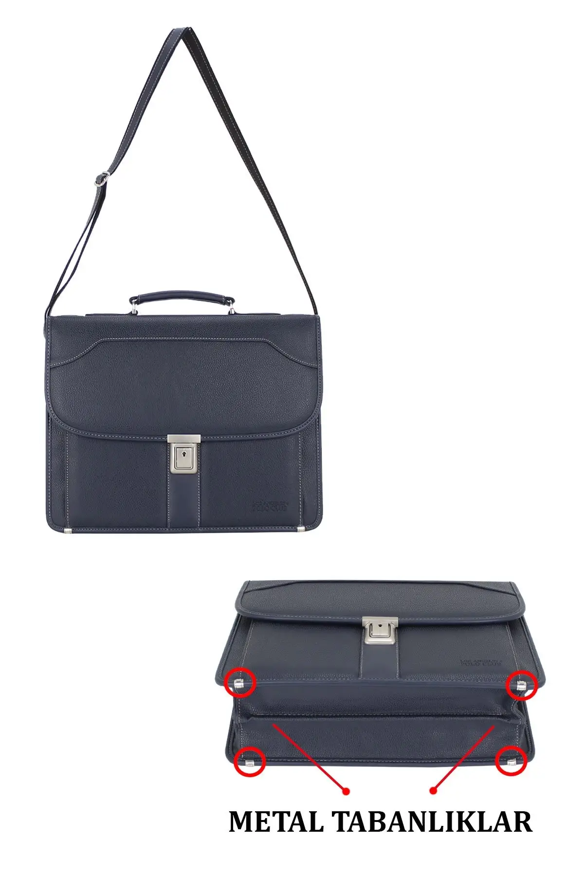 Lacivert Vintage Klasik Tarz A4 Kağıt Uyumlu Evrak Çantası