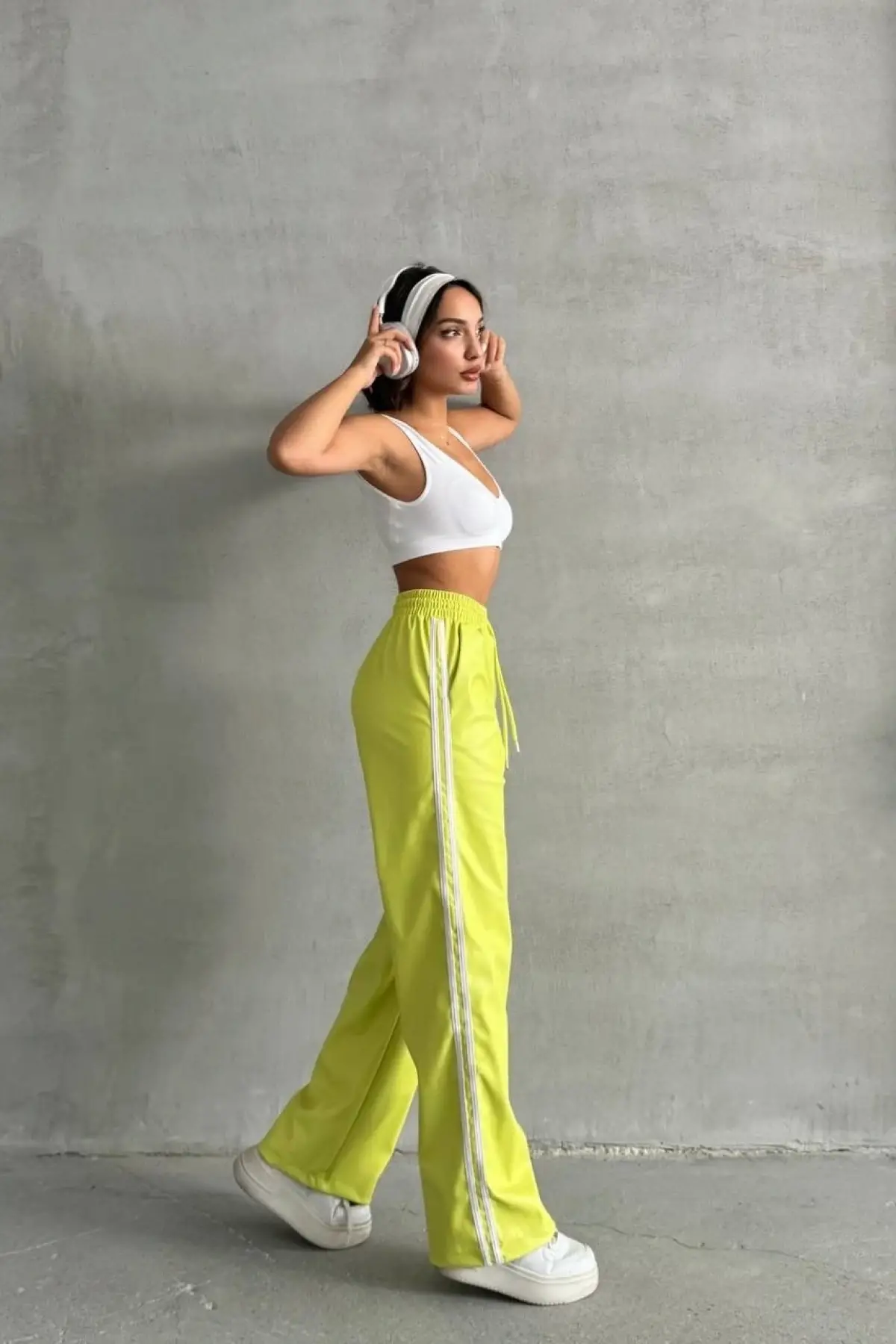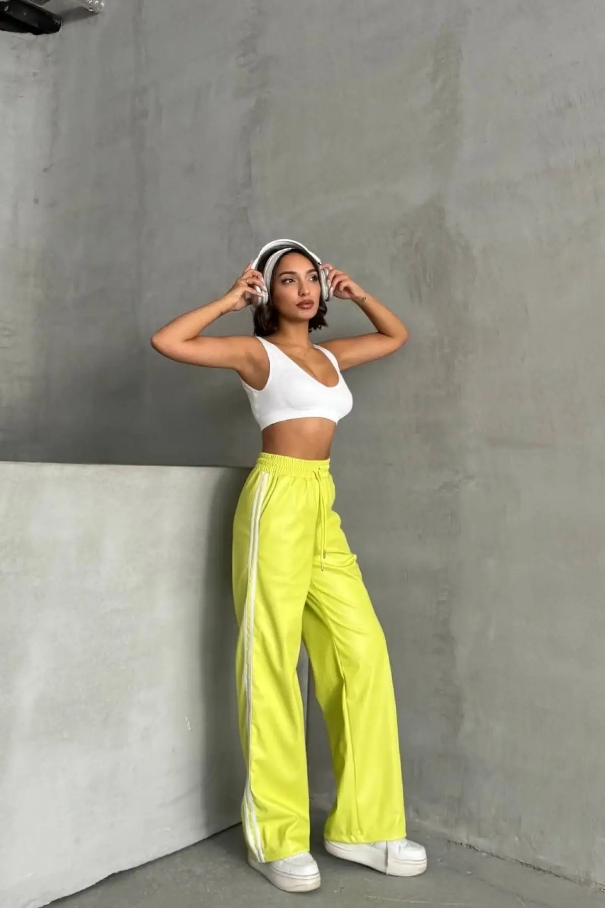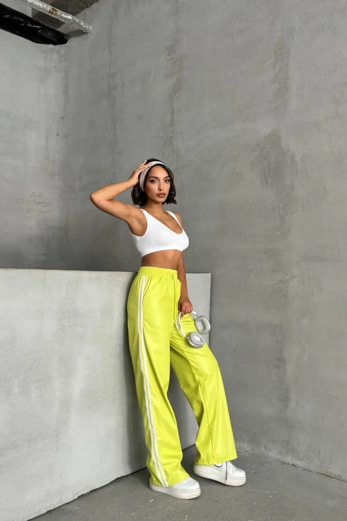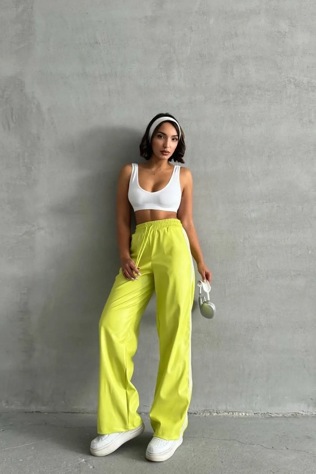 Deri Geniş Paça Beli Lastikli Pantolon Bej H263644