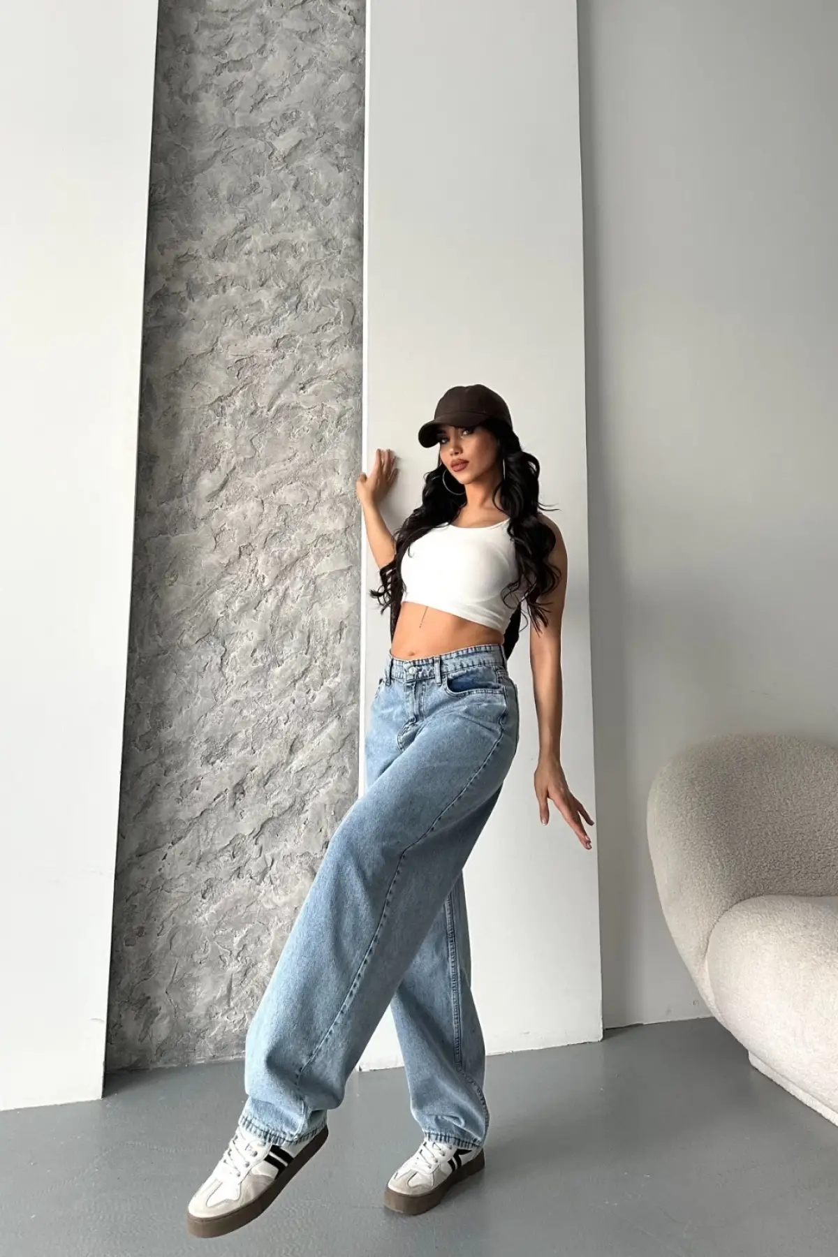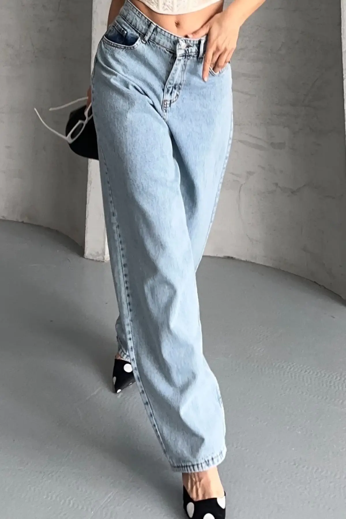 Baggy Kar Yıkama Buz Mavi Jeans Pantolon D2007
