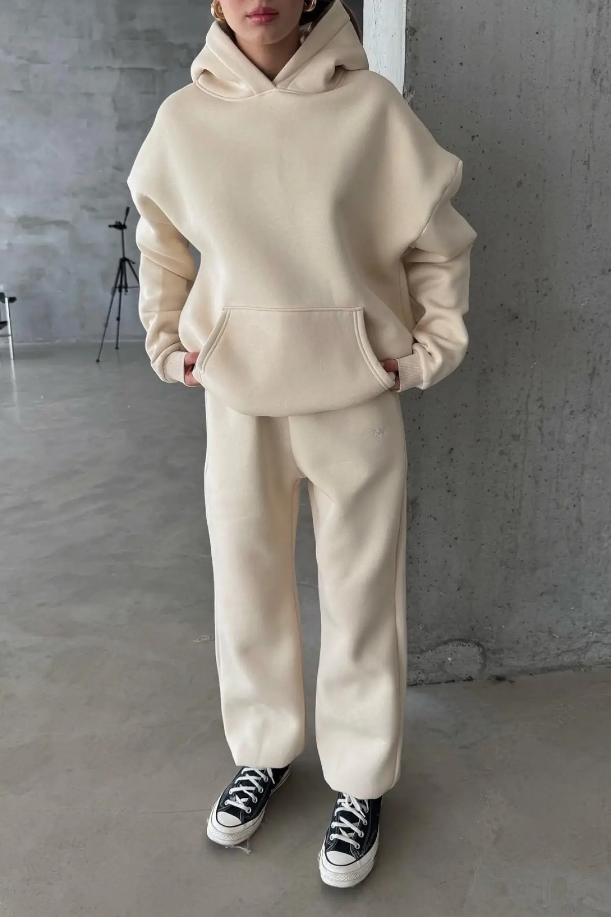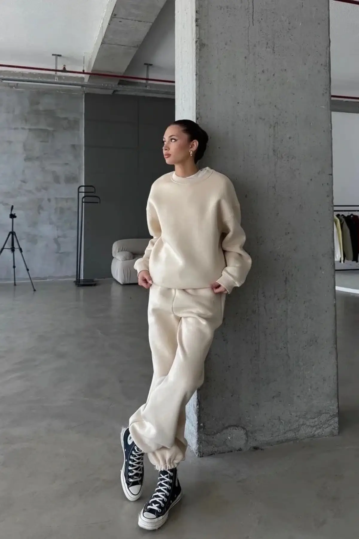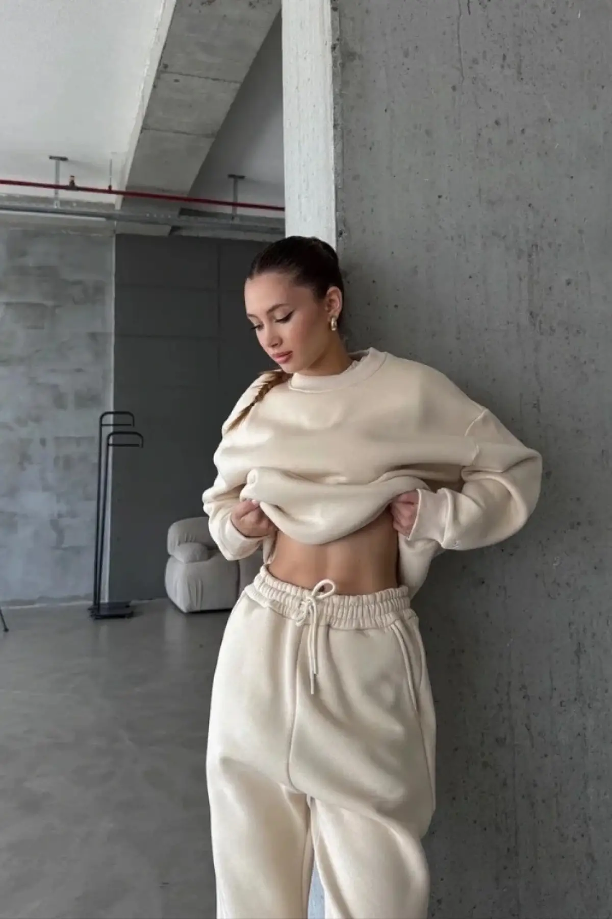 3 İplik Şardonlu Lastik Paça Eşofman Bej P510439