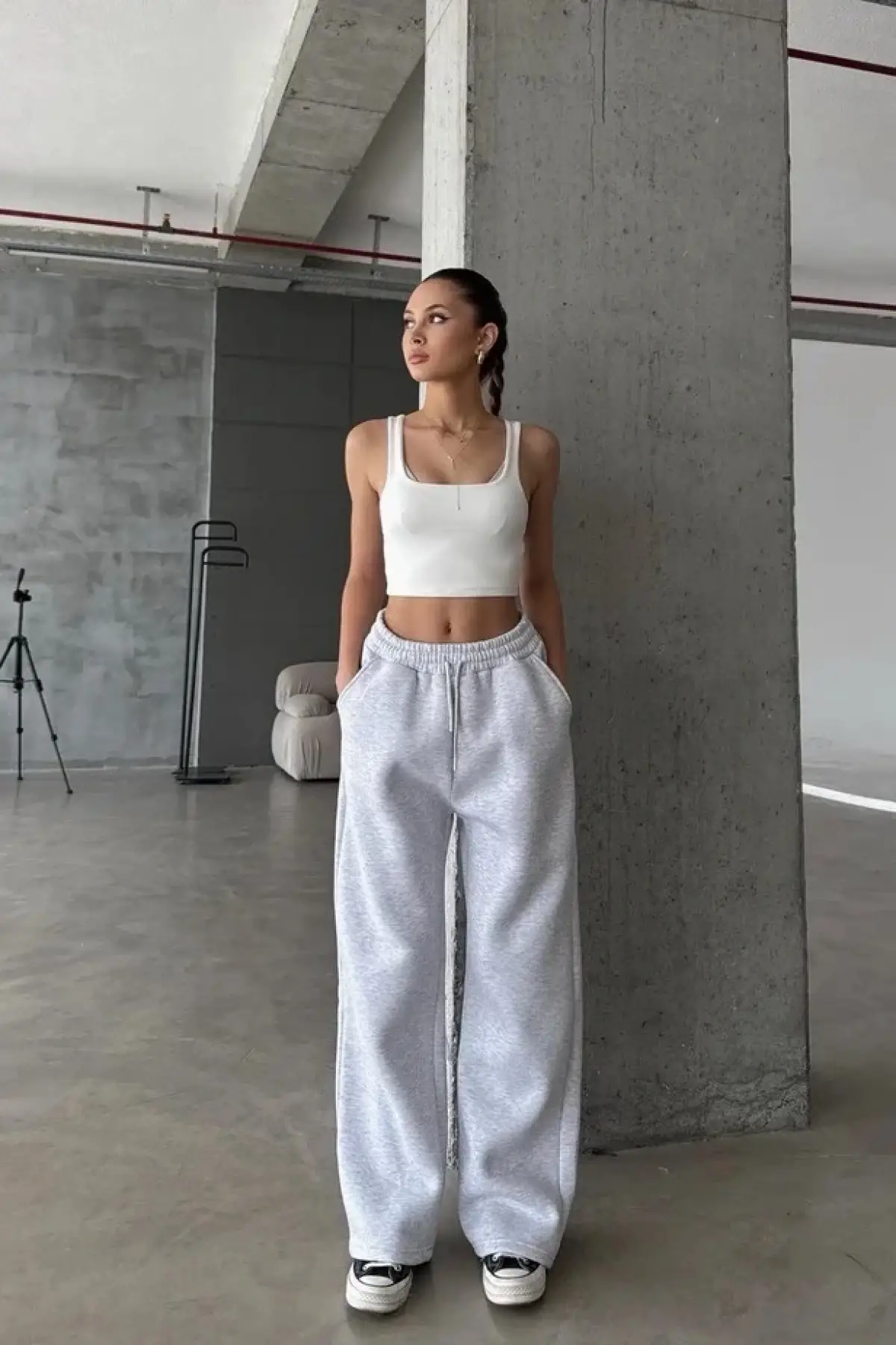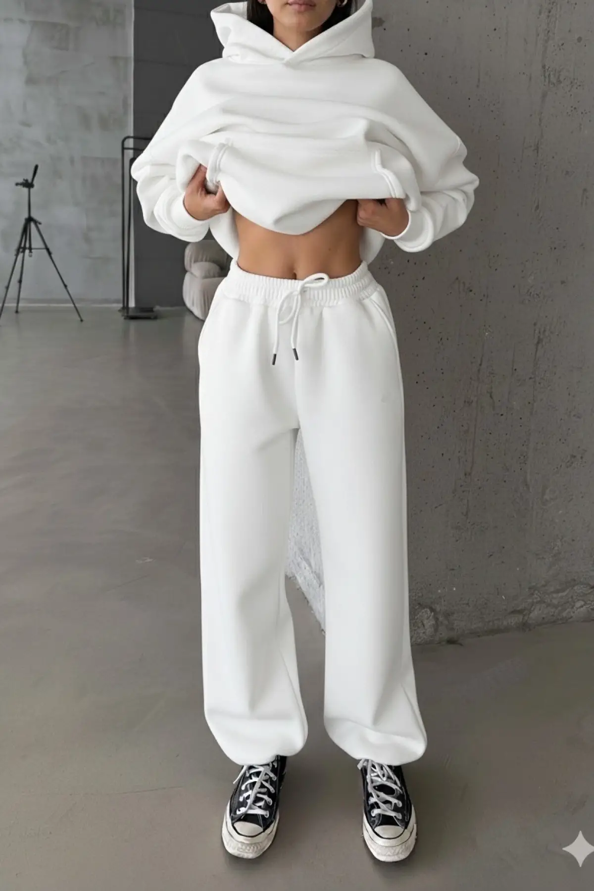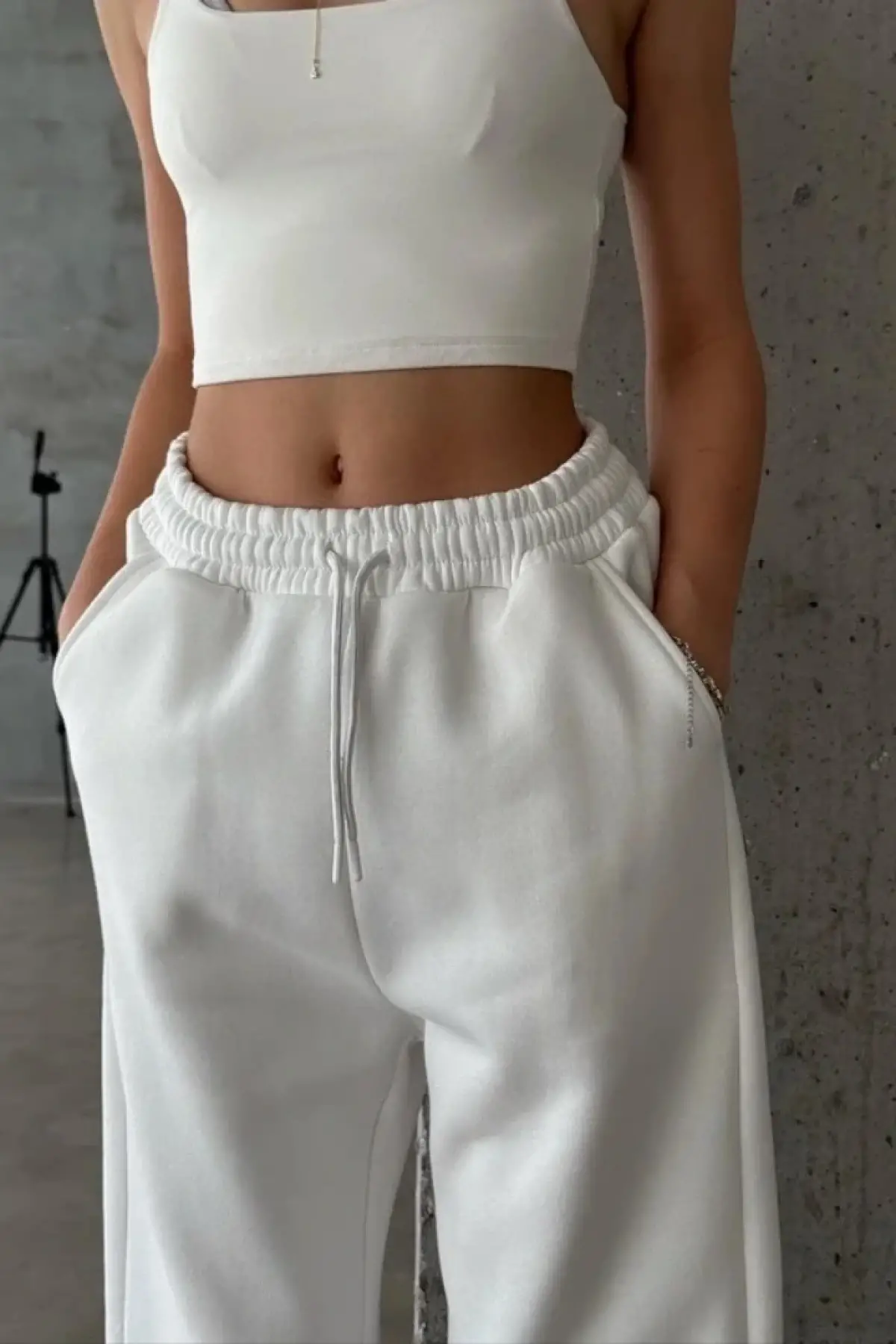 3 İplik Şardonlu Lastik Paça Eşofman Beyaz P510439