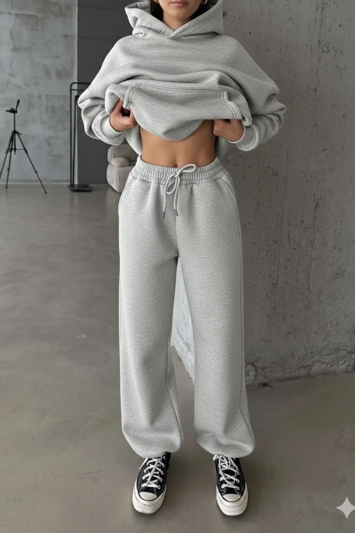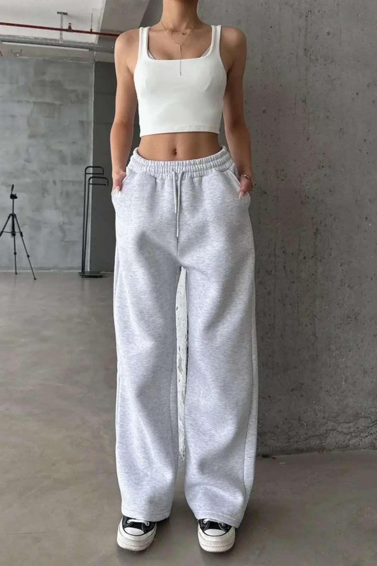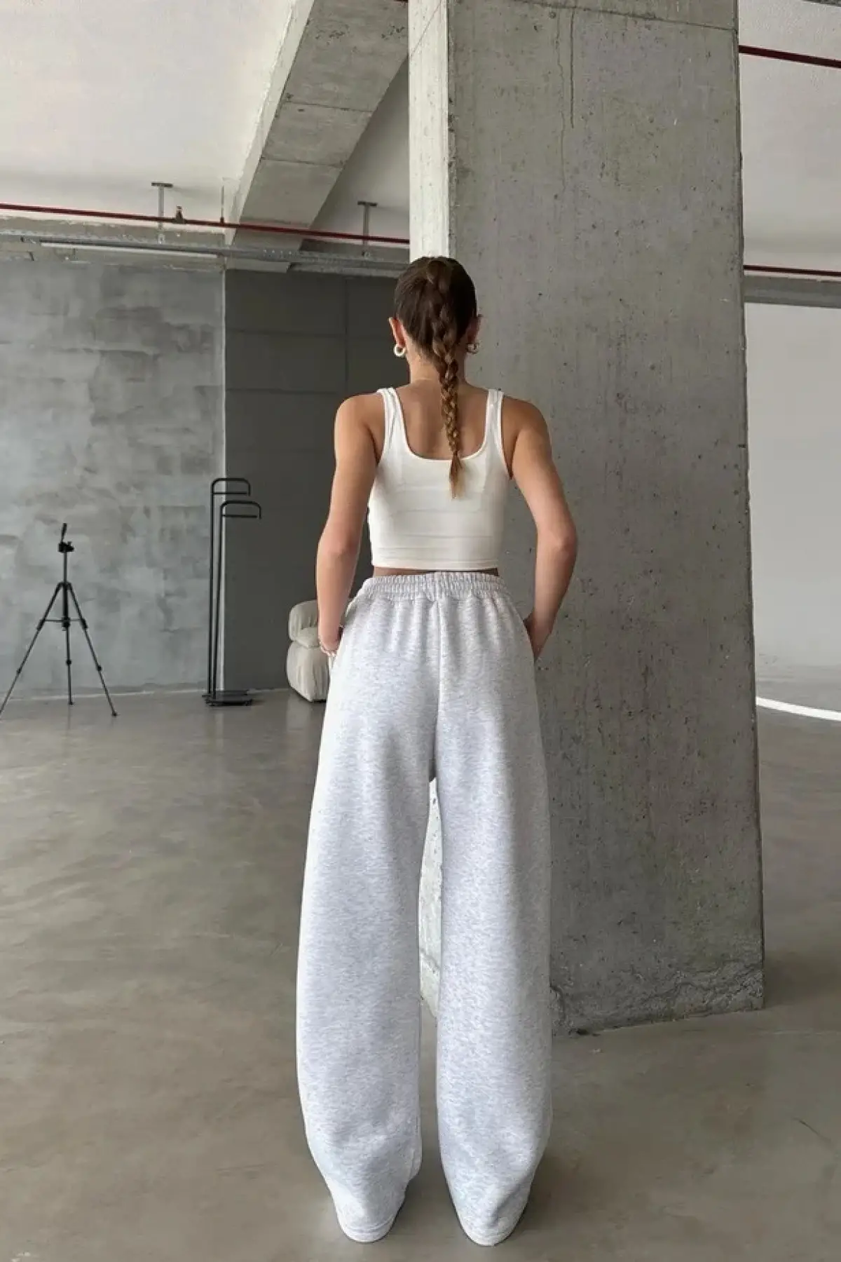 3 İplik Şardonlu Lastik Paça Eşofman Gri P510439