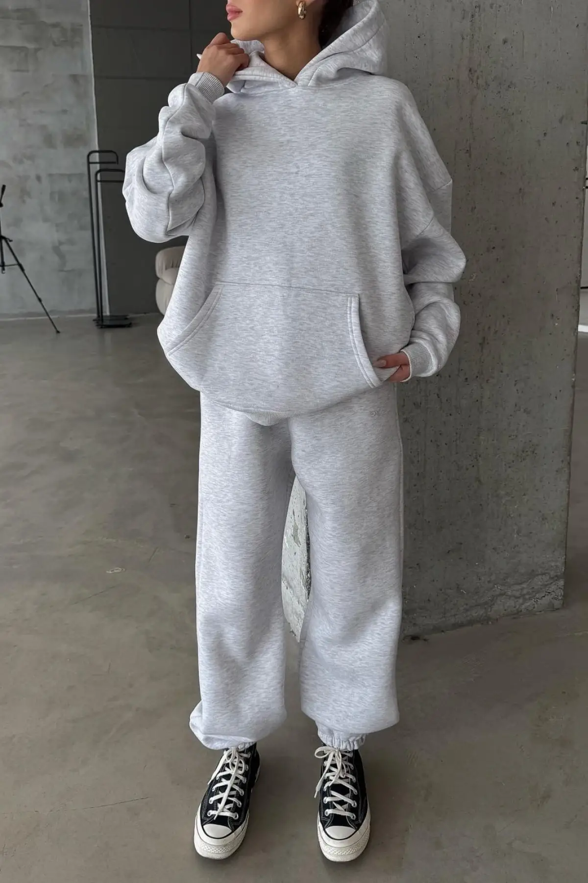 3 İplik Şardonlu Kapşonlu Hoodie Frm Gri P510437