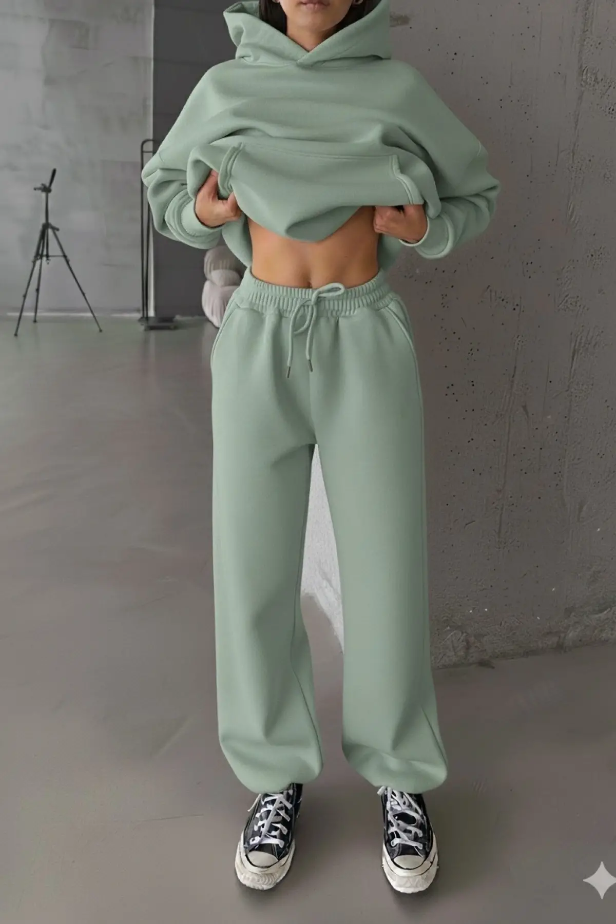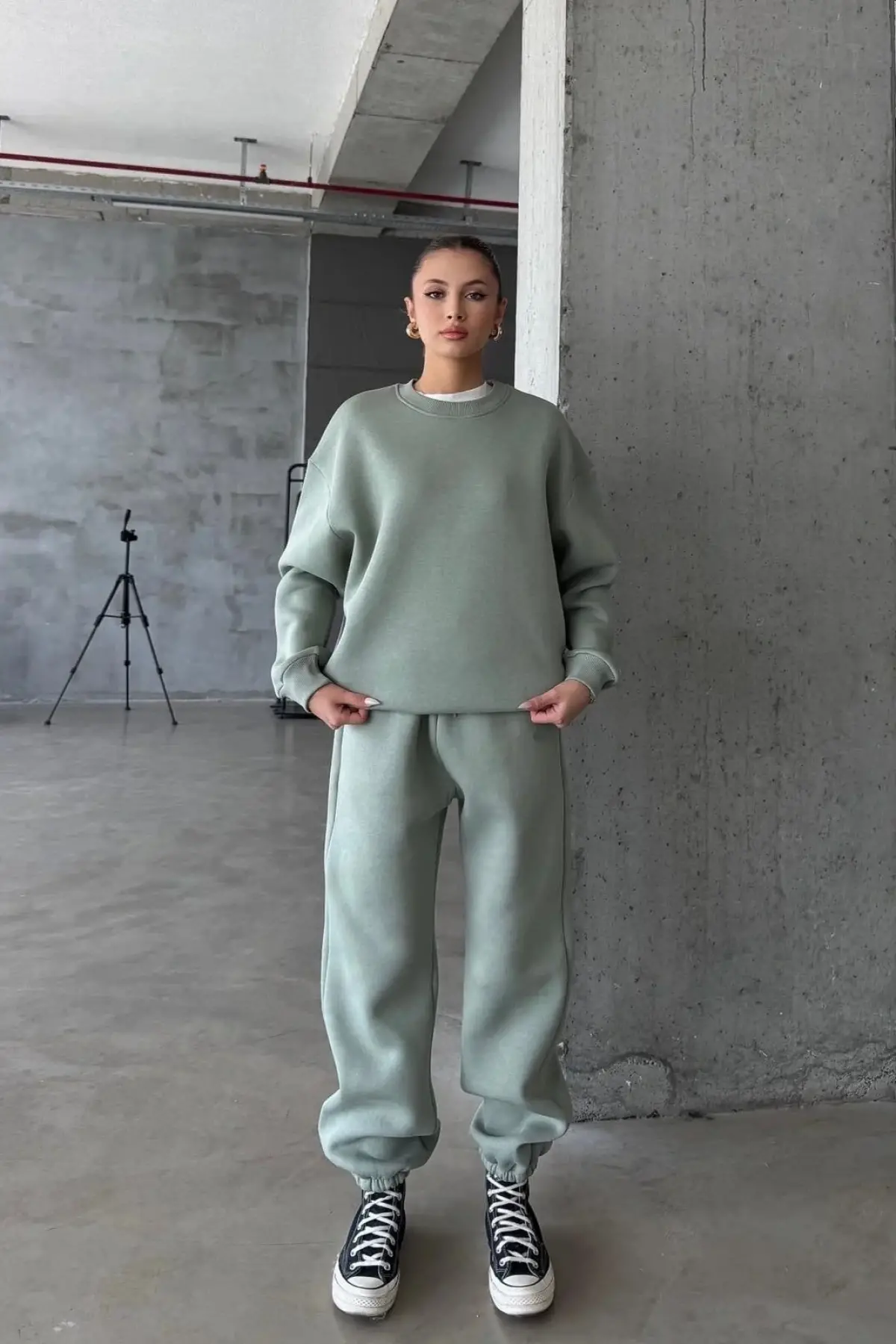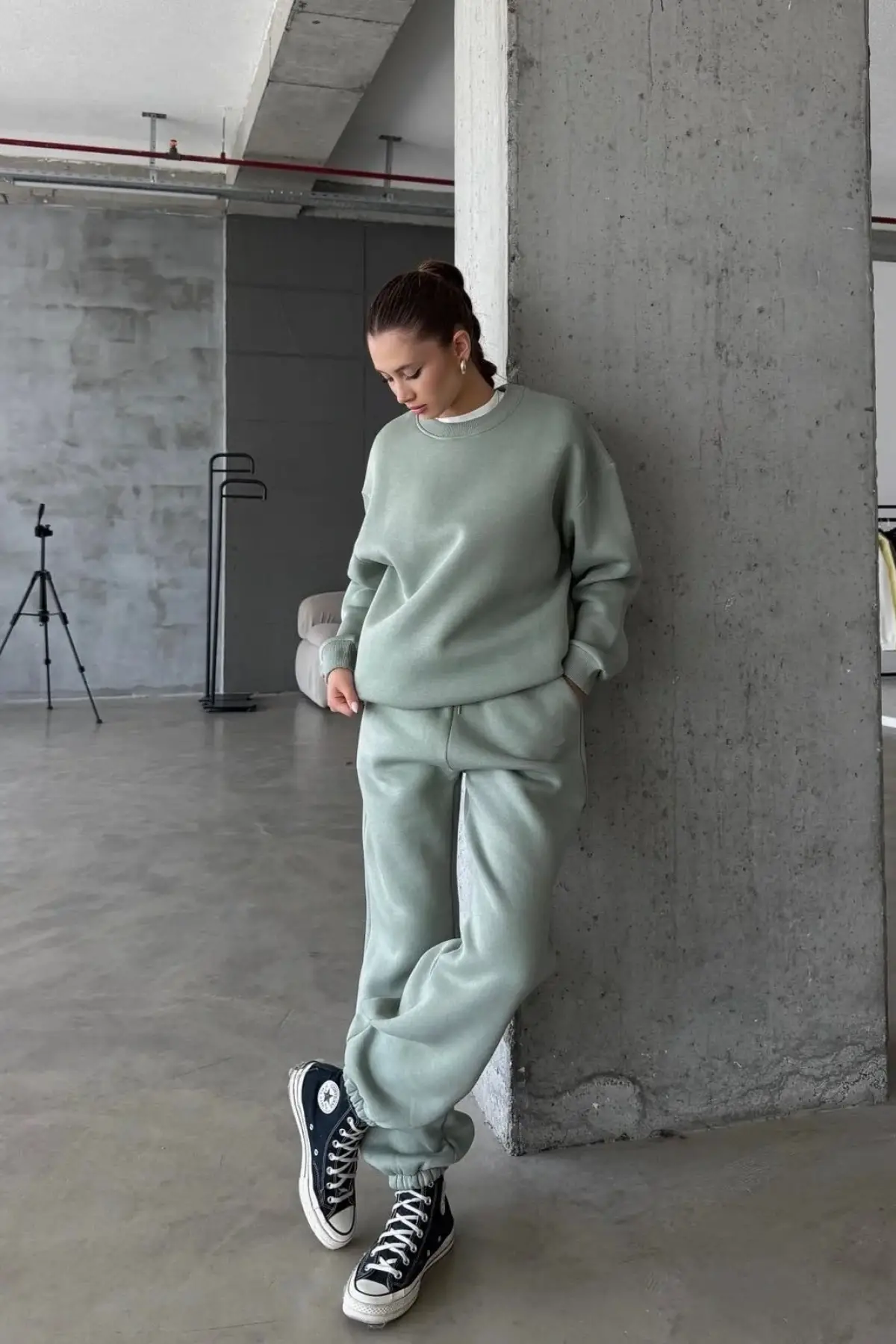 3 İplik Şardonlu Oversize Eşofman Mint Yeşili