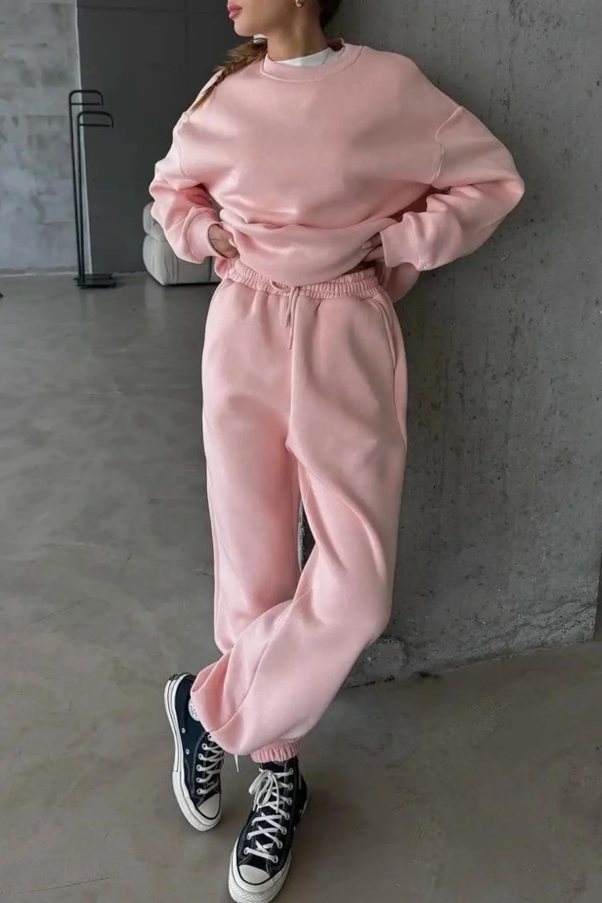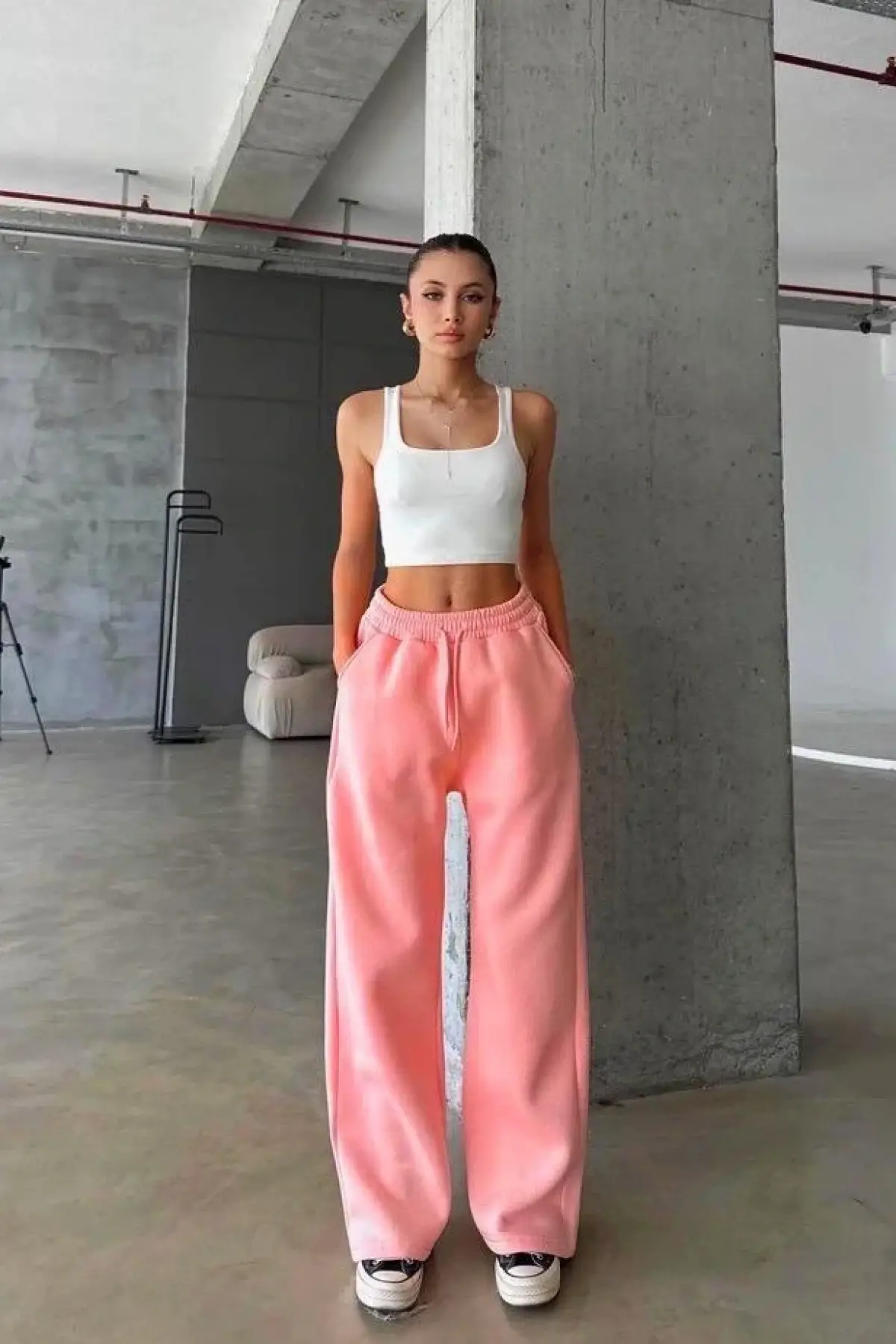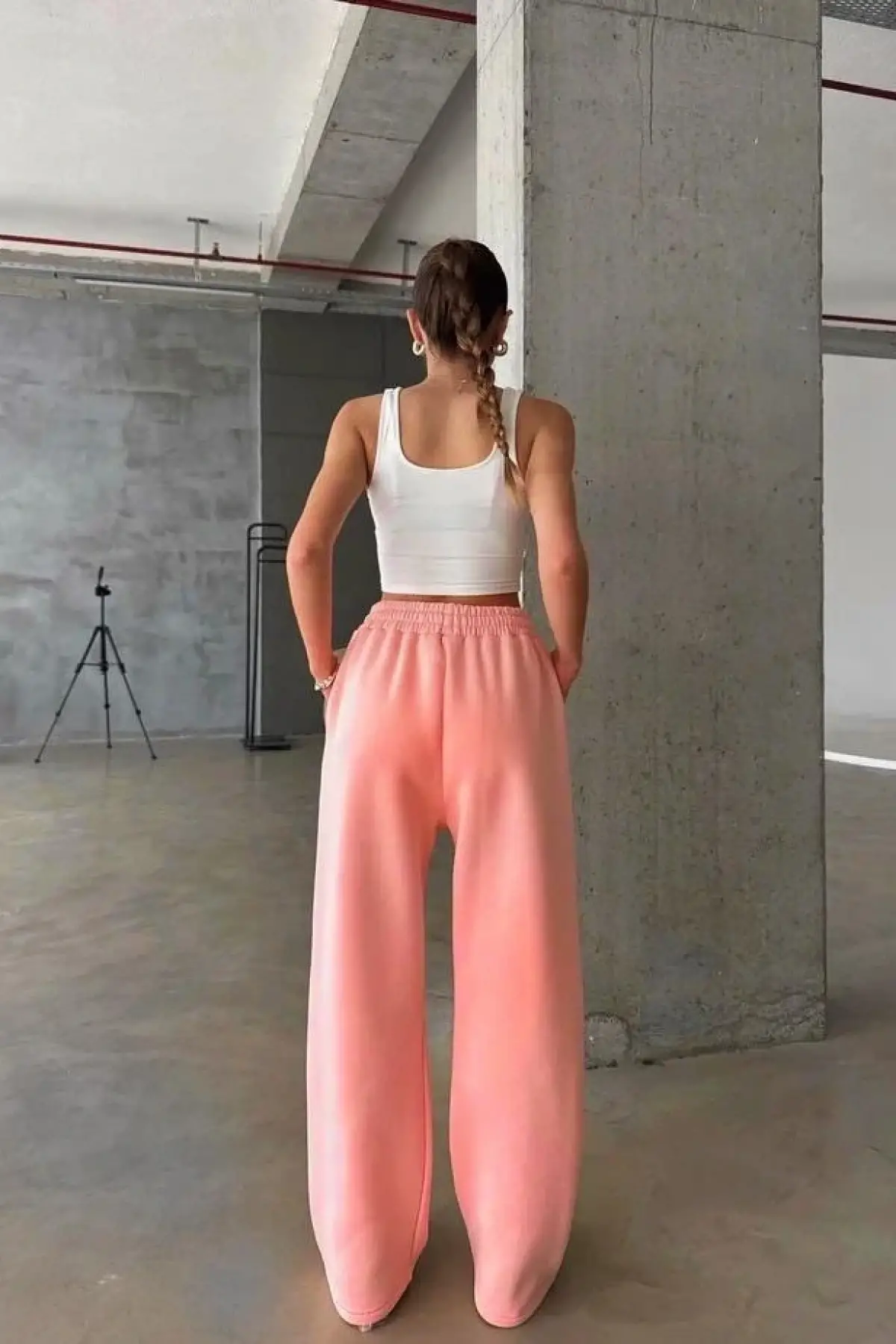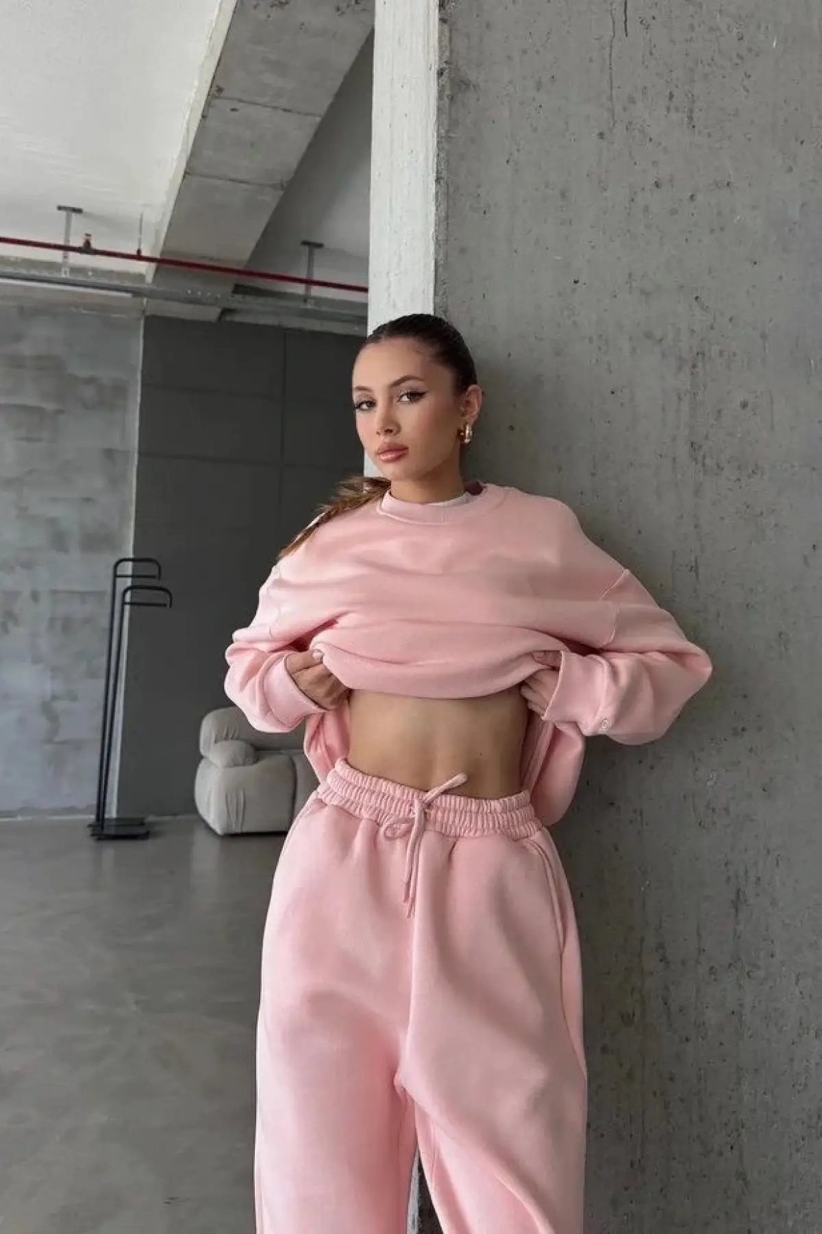 3 İplik Şardonlu Lastik Paça Eşofman Pembe P510439