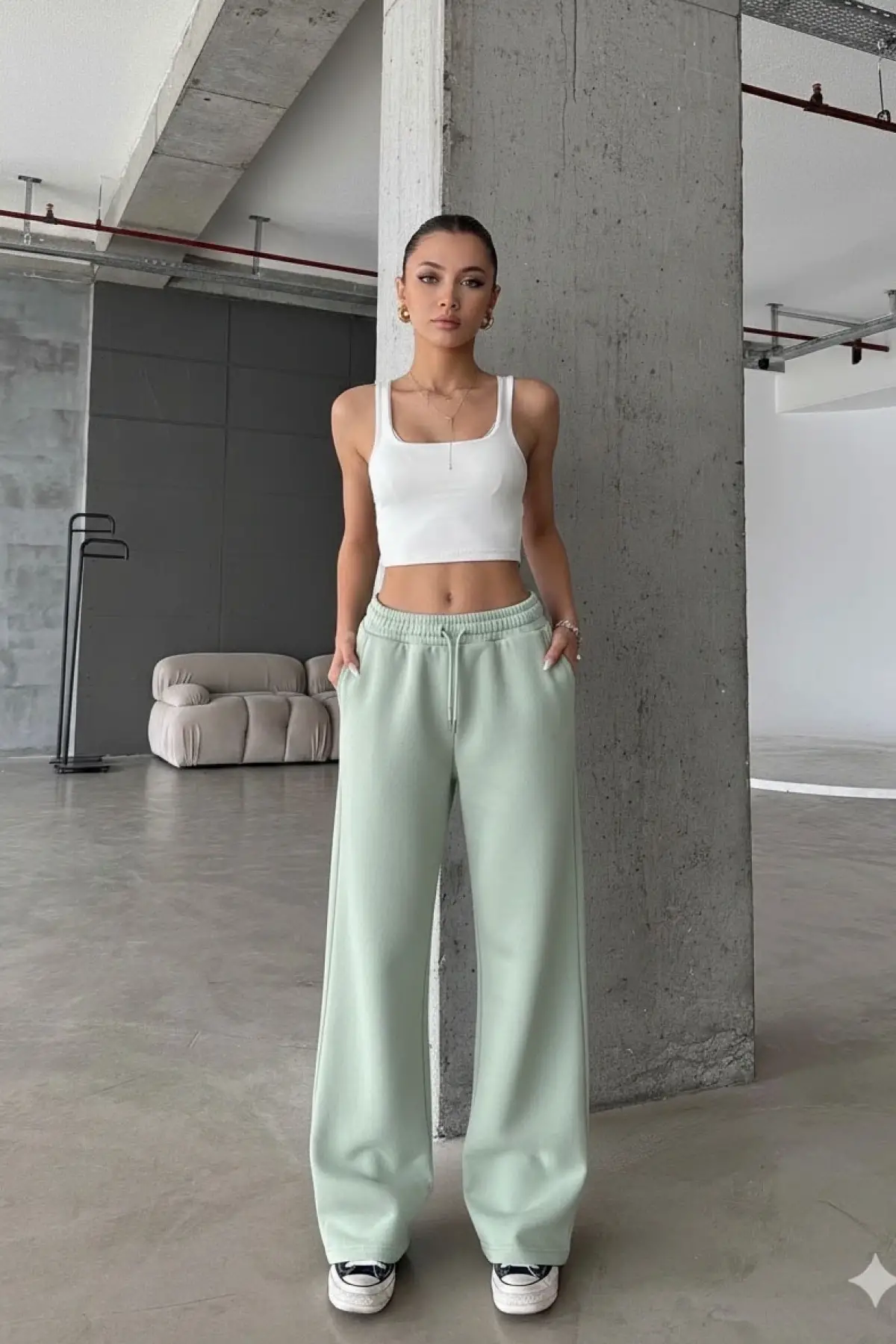 3 İplik Şardonlu Lastik Paça Eşofman Mint P510439