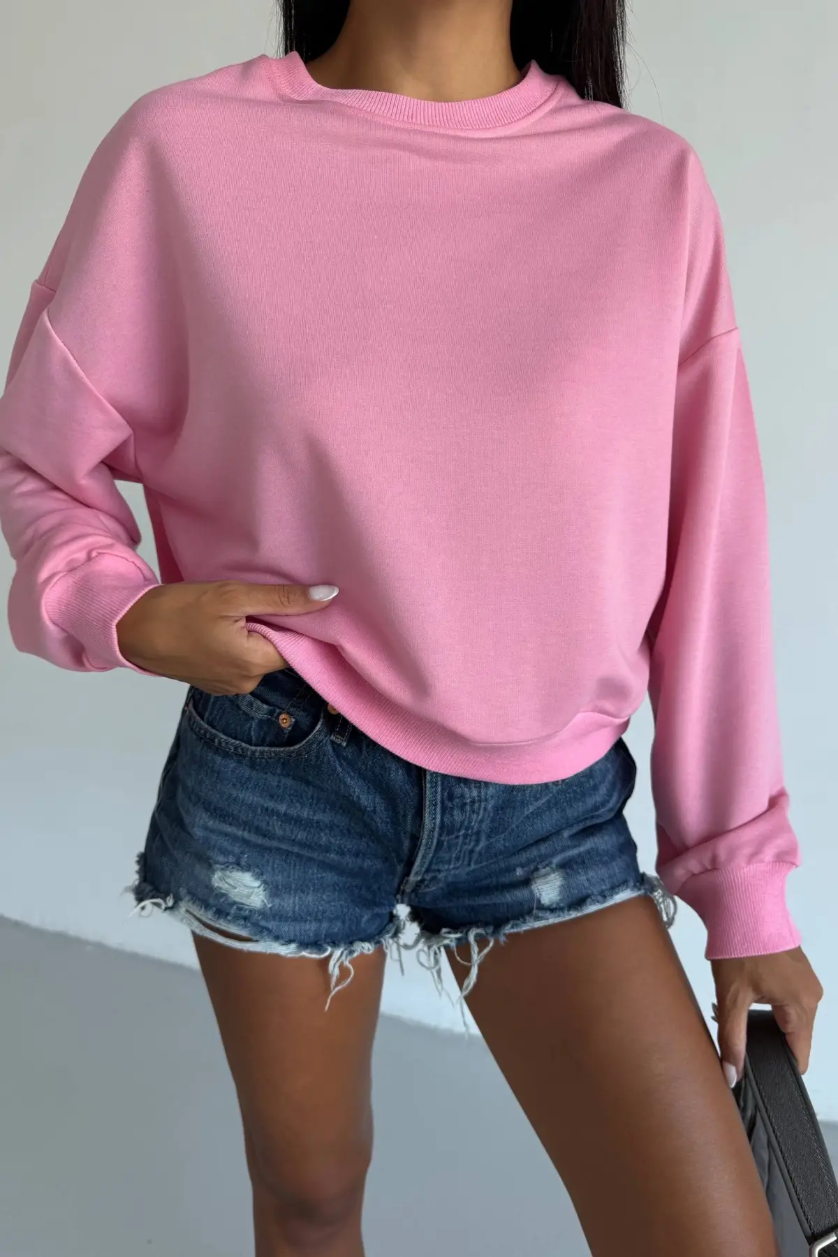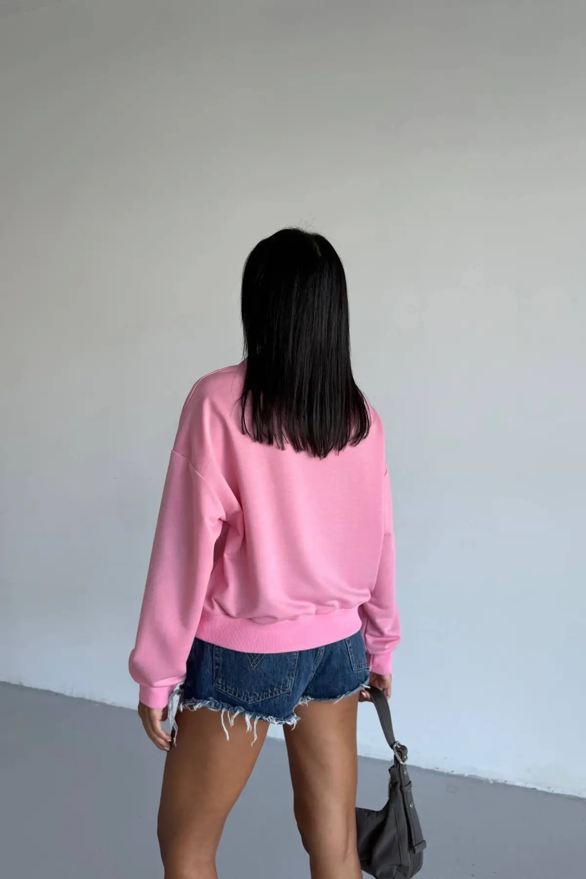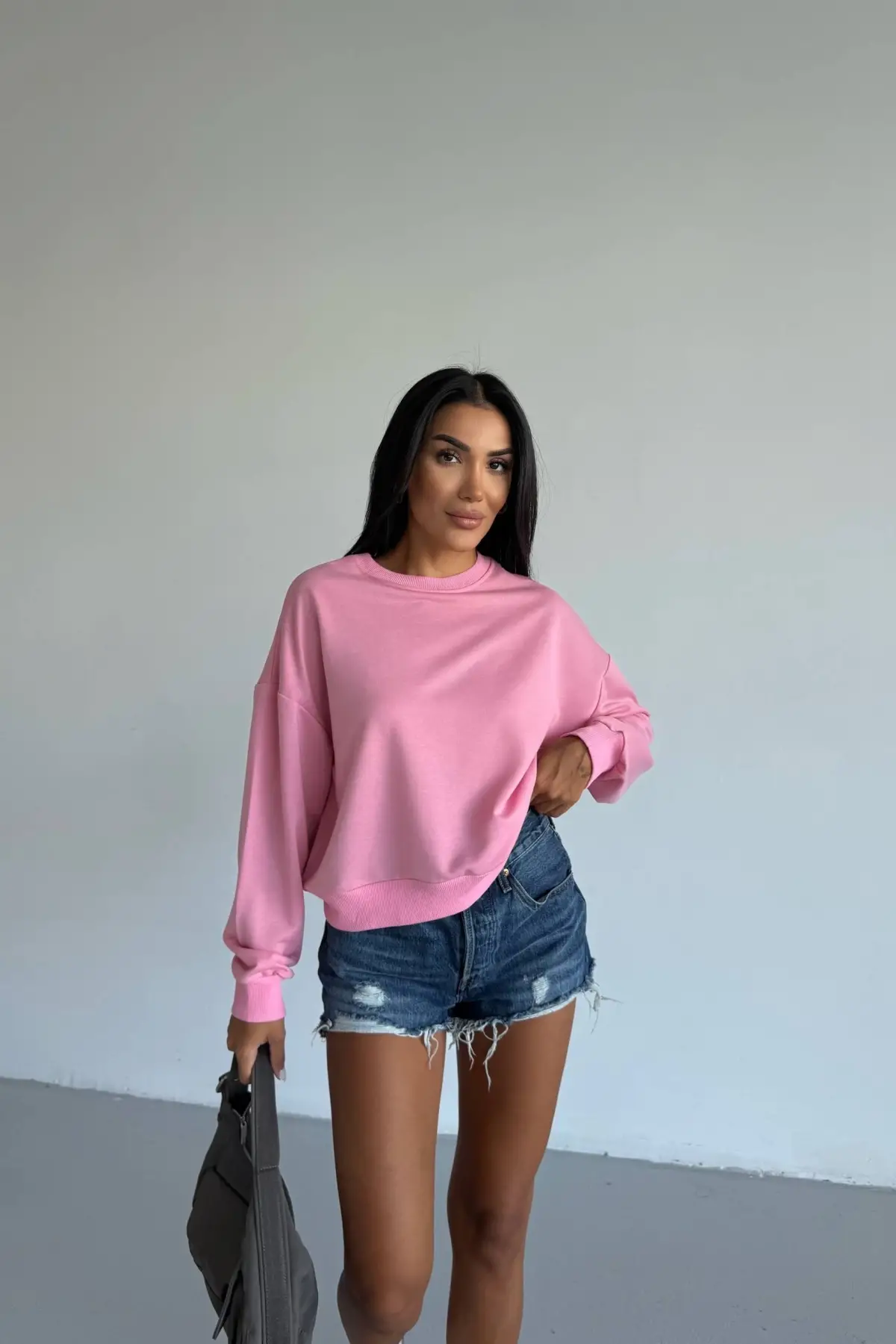 2 İplik Bisiklet Yaka Sweat Pembe F2339