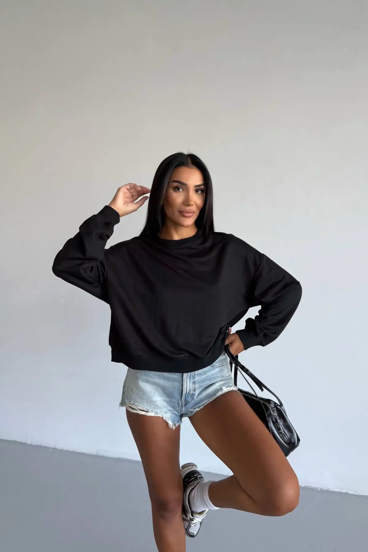 2 İplik Bisiklet Yaka Sweat Siyah F2339