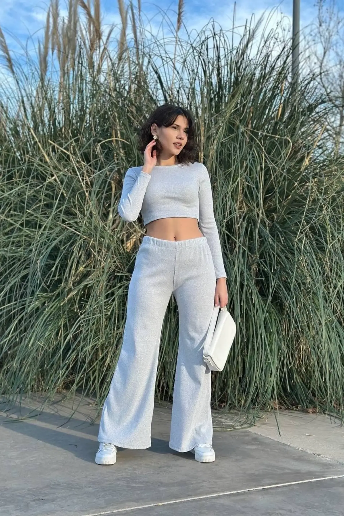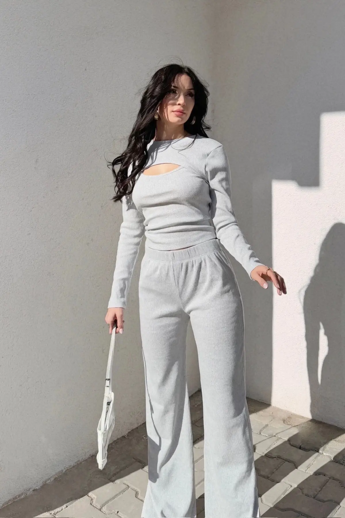 Pencereli Detaylı Alt Üst Takım Gri W3864