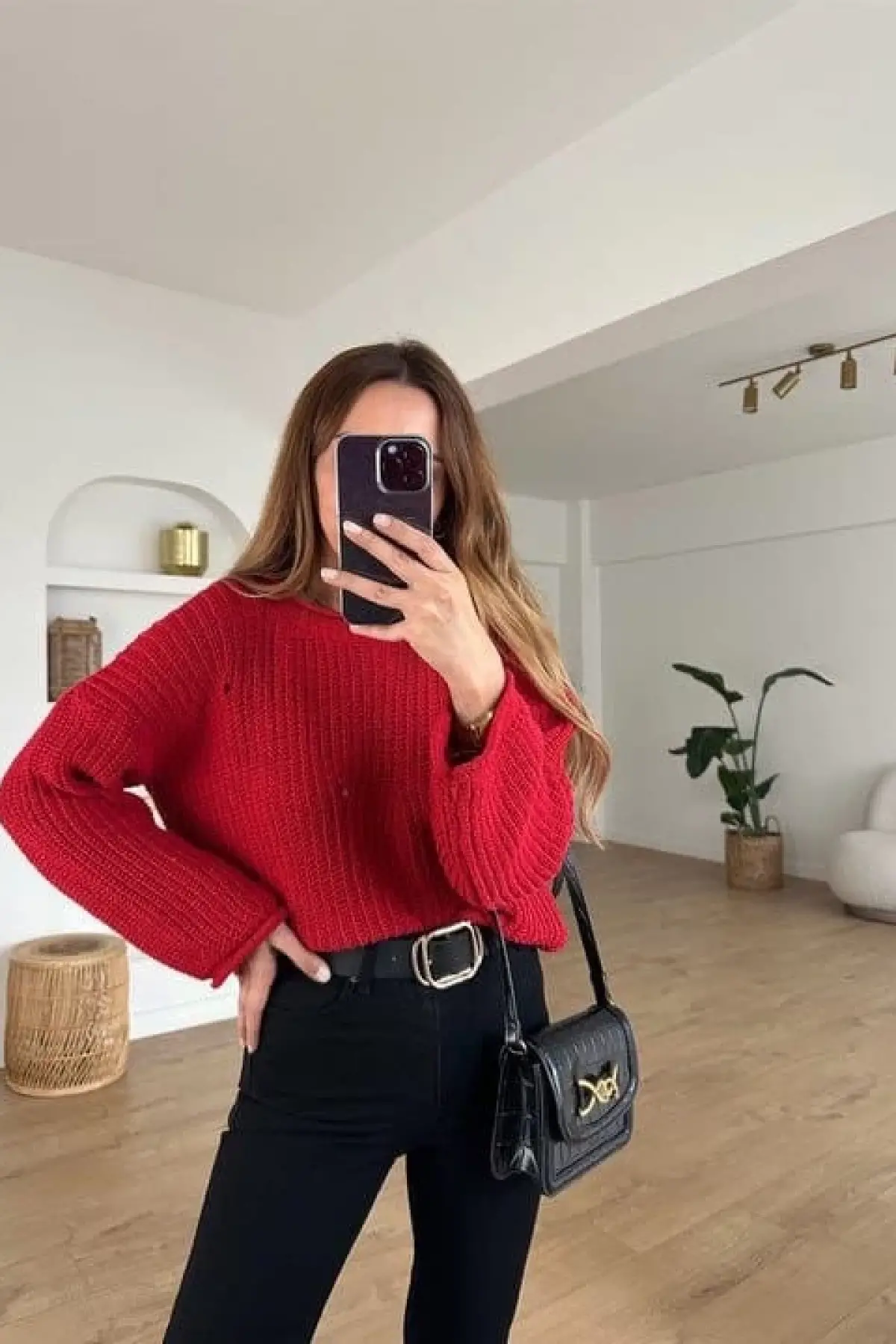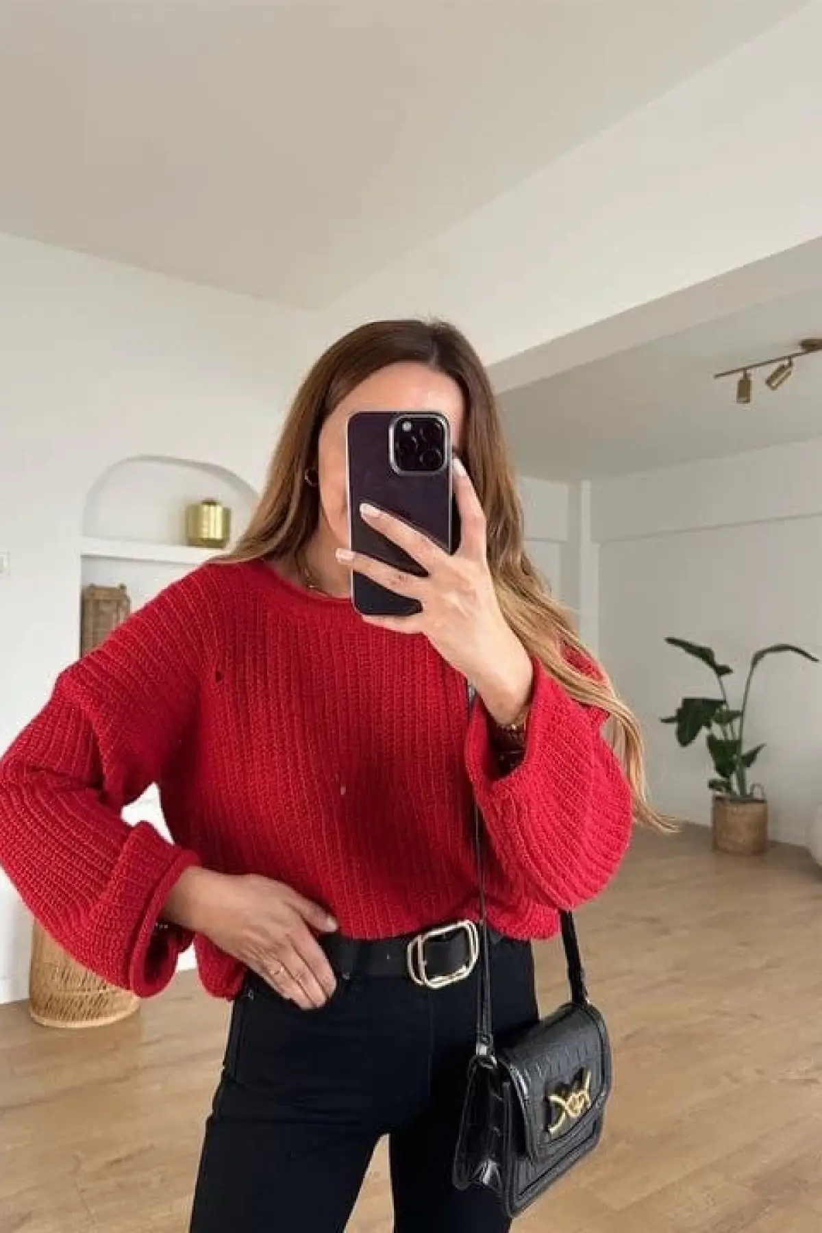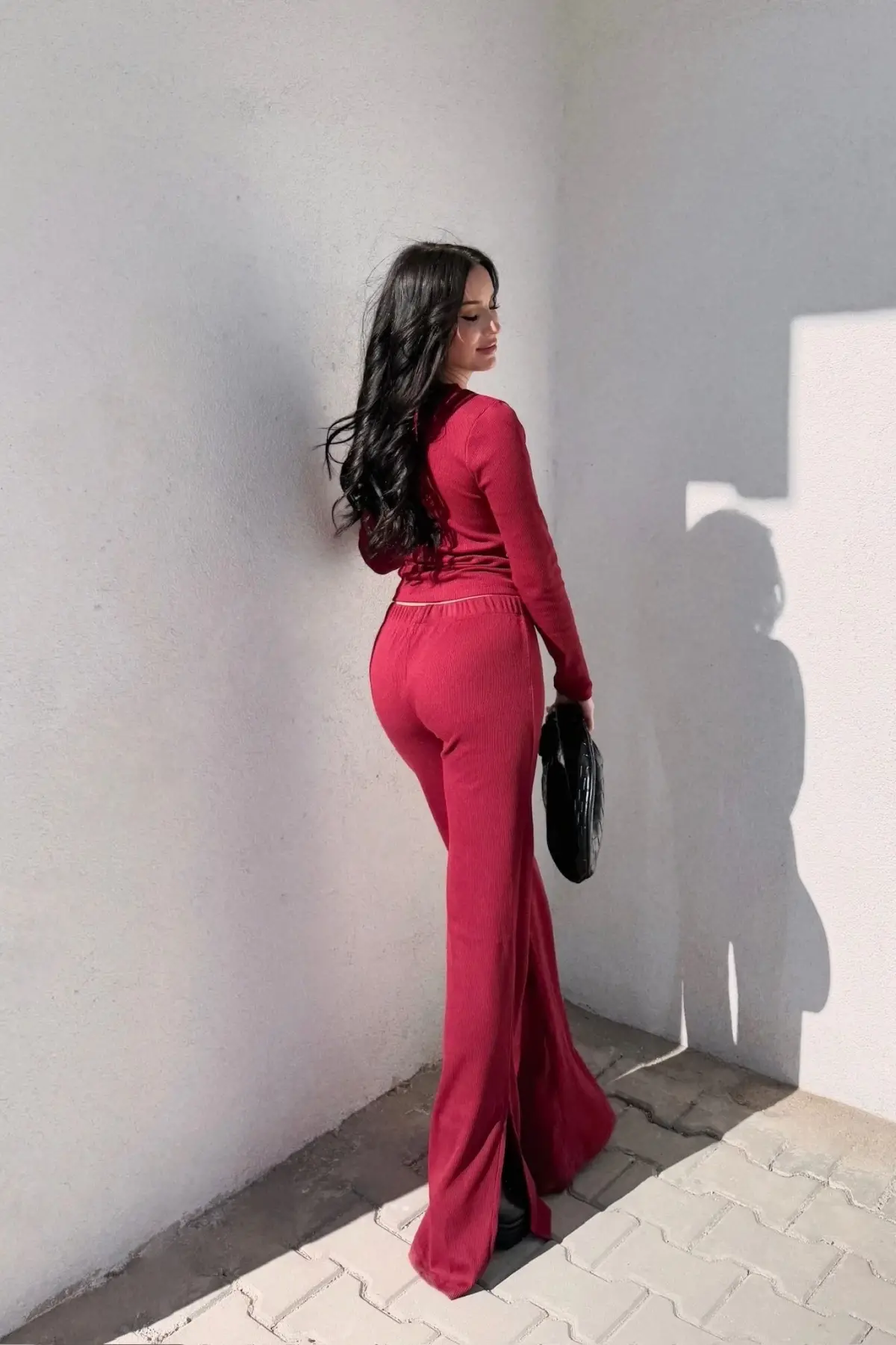 Pencereli Detaylı Alt Üst Takım Bordo W3864