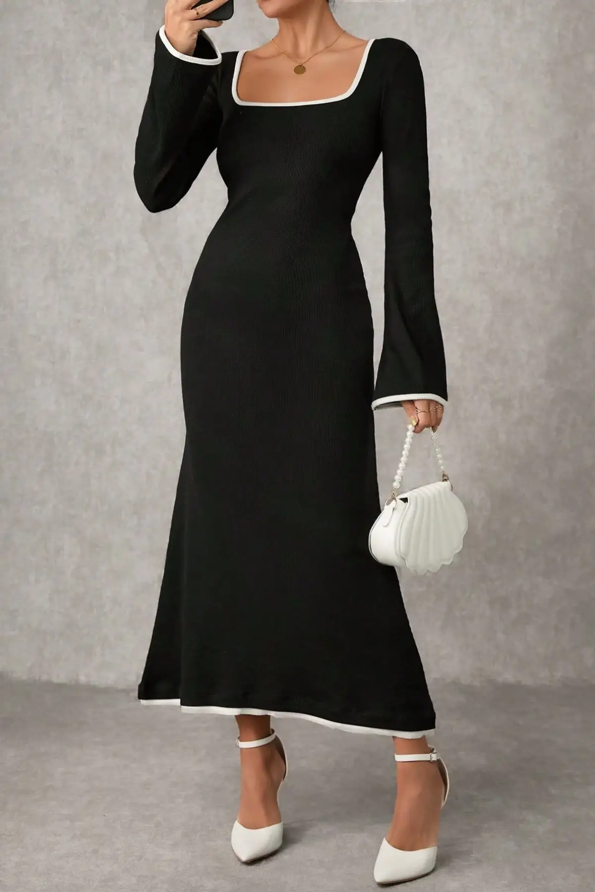 Boğazlı Kalın Bürümcük Uzun Elbise Siyah
