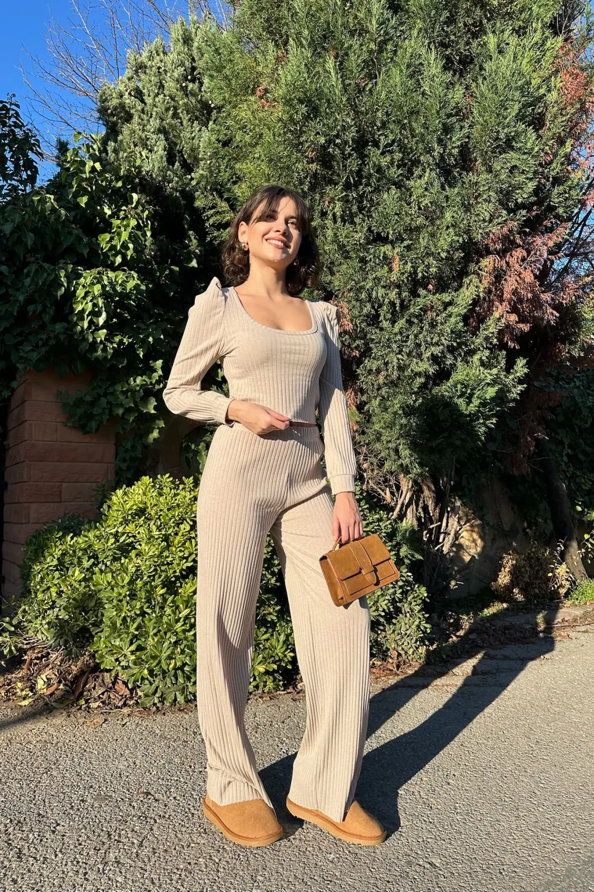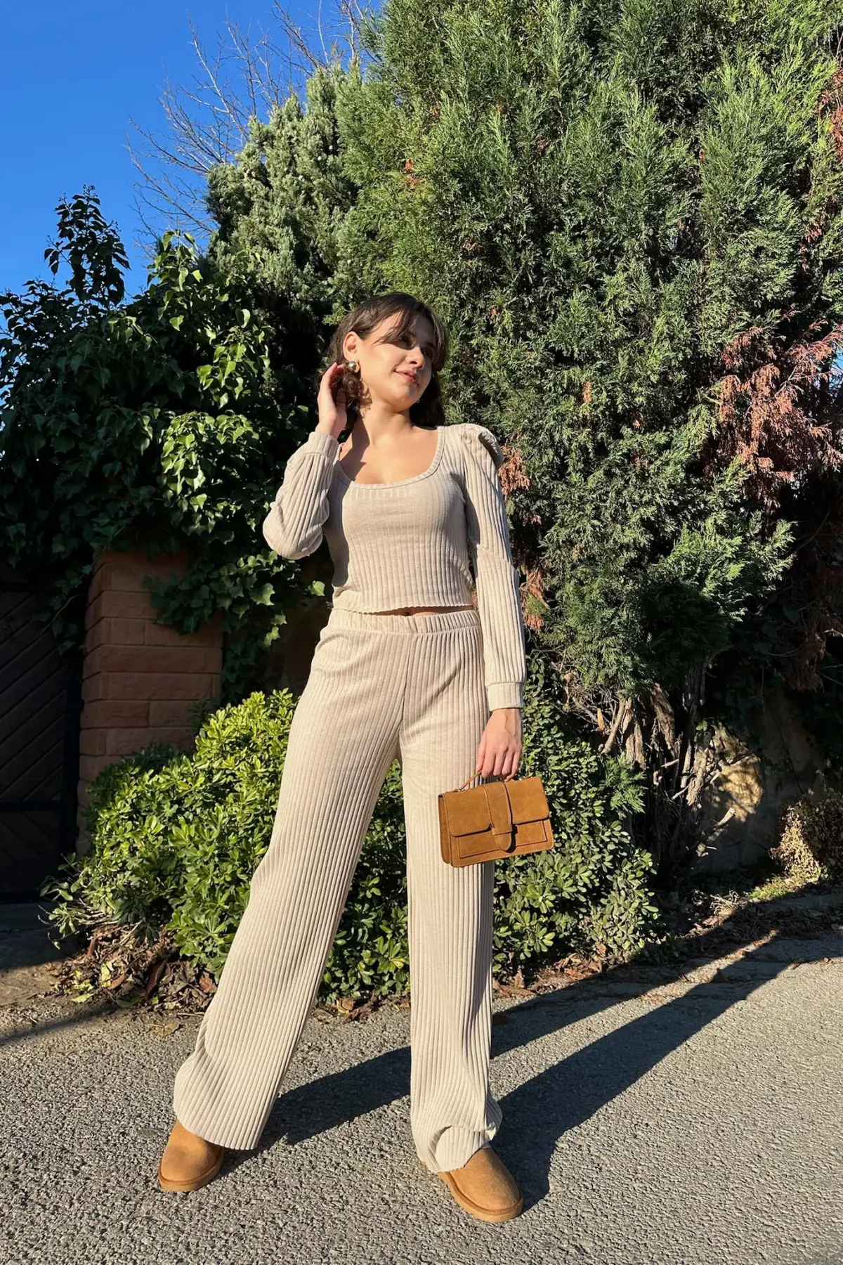 Gömlek Yaka Fitilli Salaş İkili Takım Buz Mavisi T4300