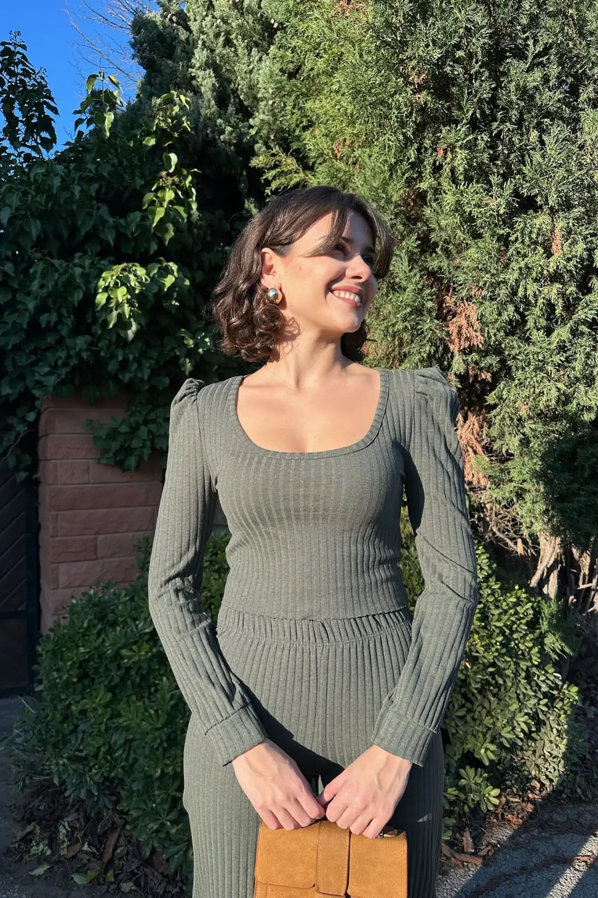 Boğazlı Kalın Bürümcük Uzun Elbise Yeşil
