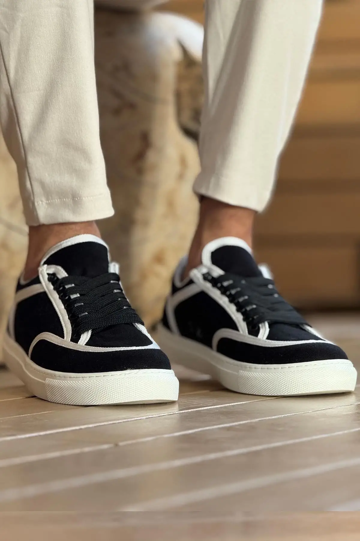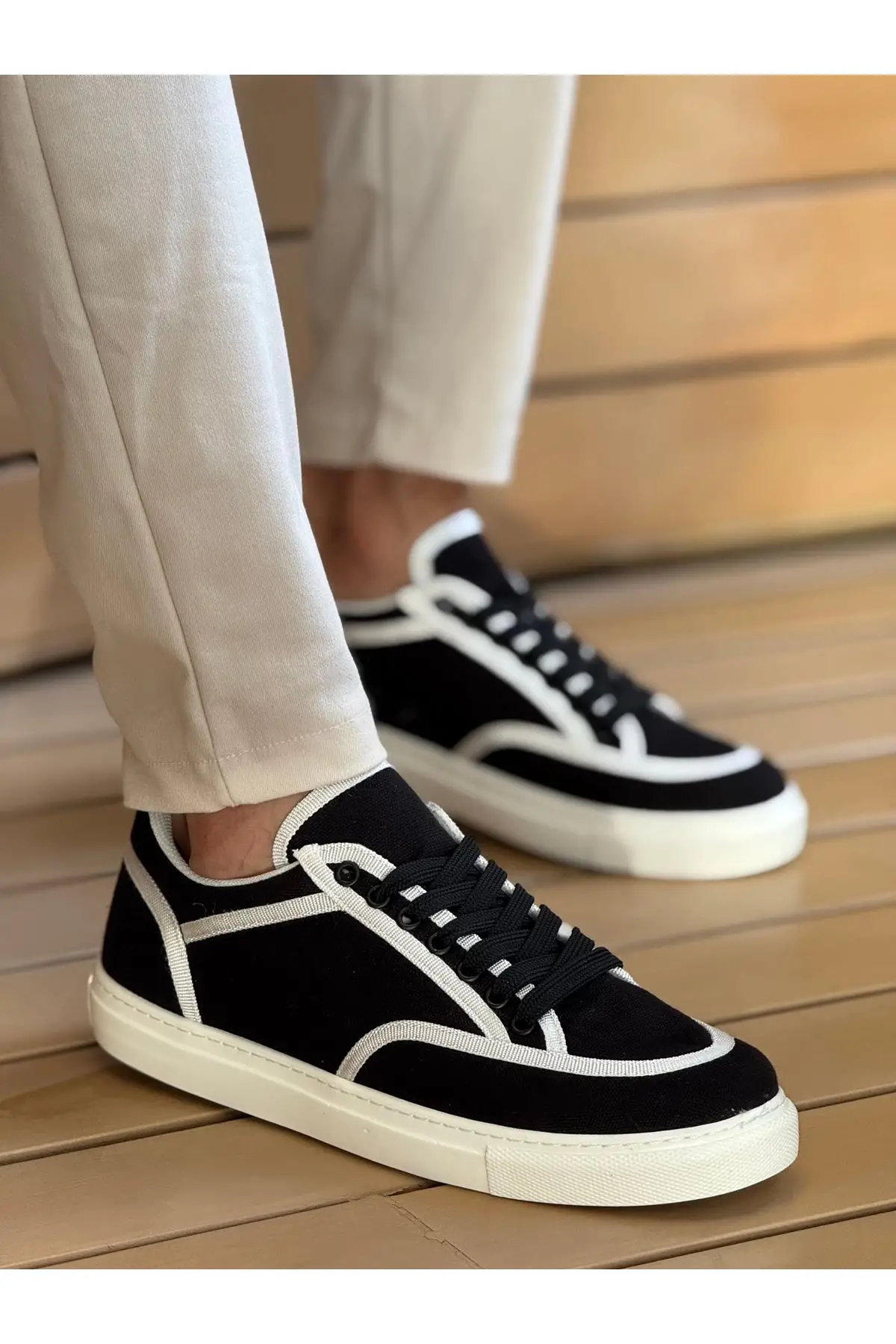 TB2505 - Keten Erkek Ayakkabı SİYAH - BEYAZ