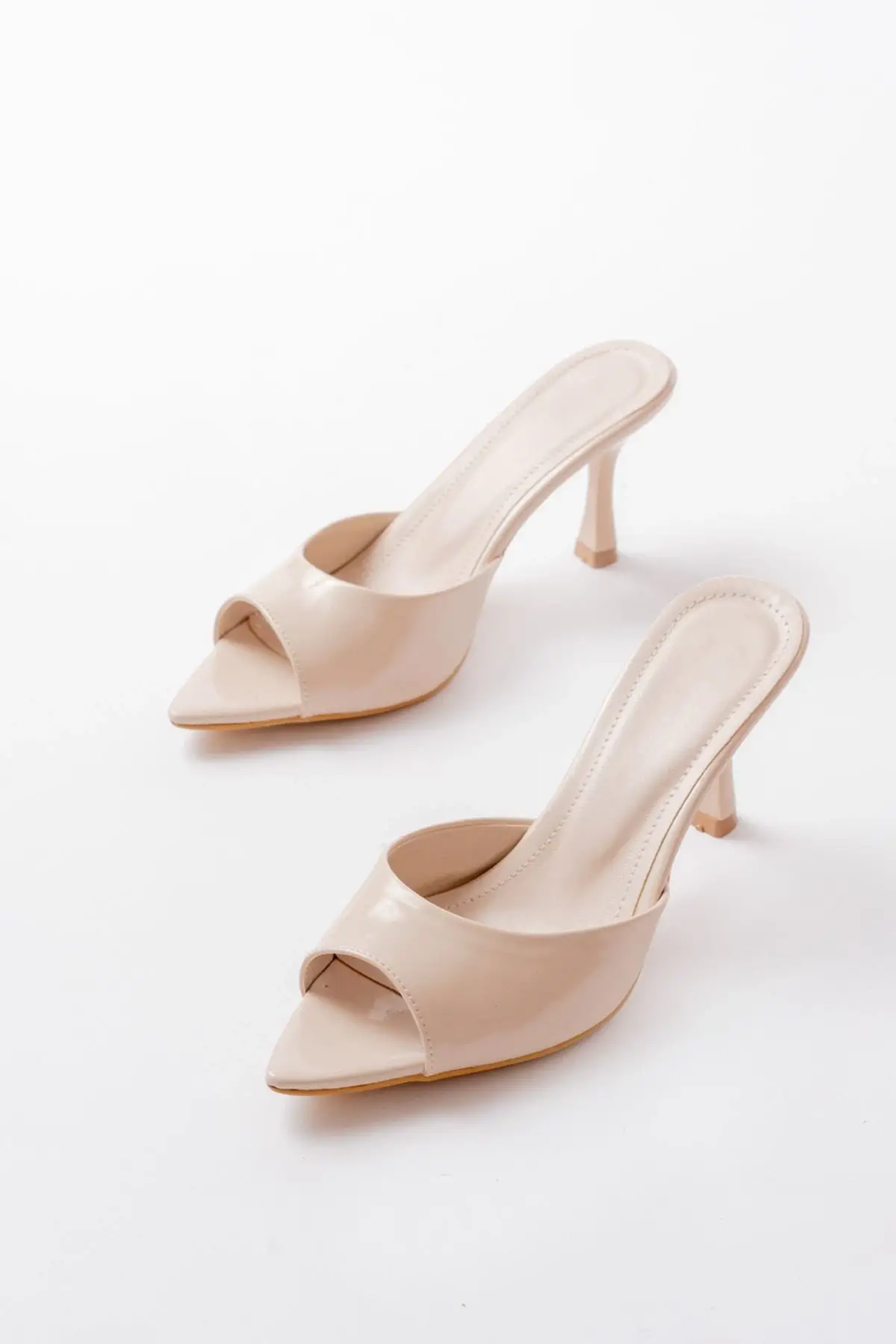 716 Bej Rugan Sivri Burunlu Topuklu Kadın Terlik