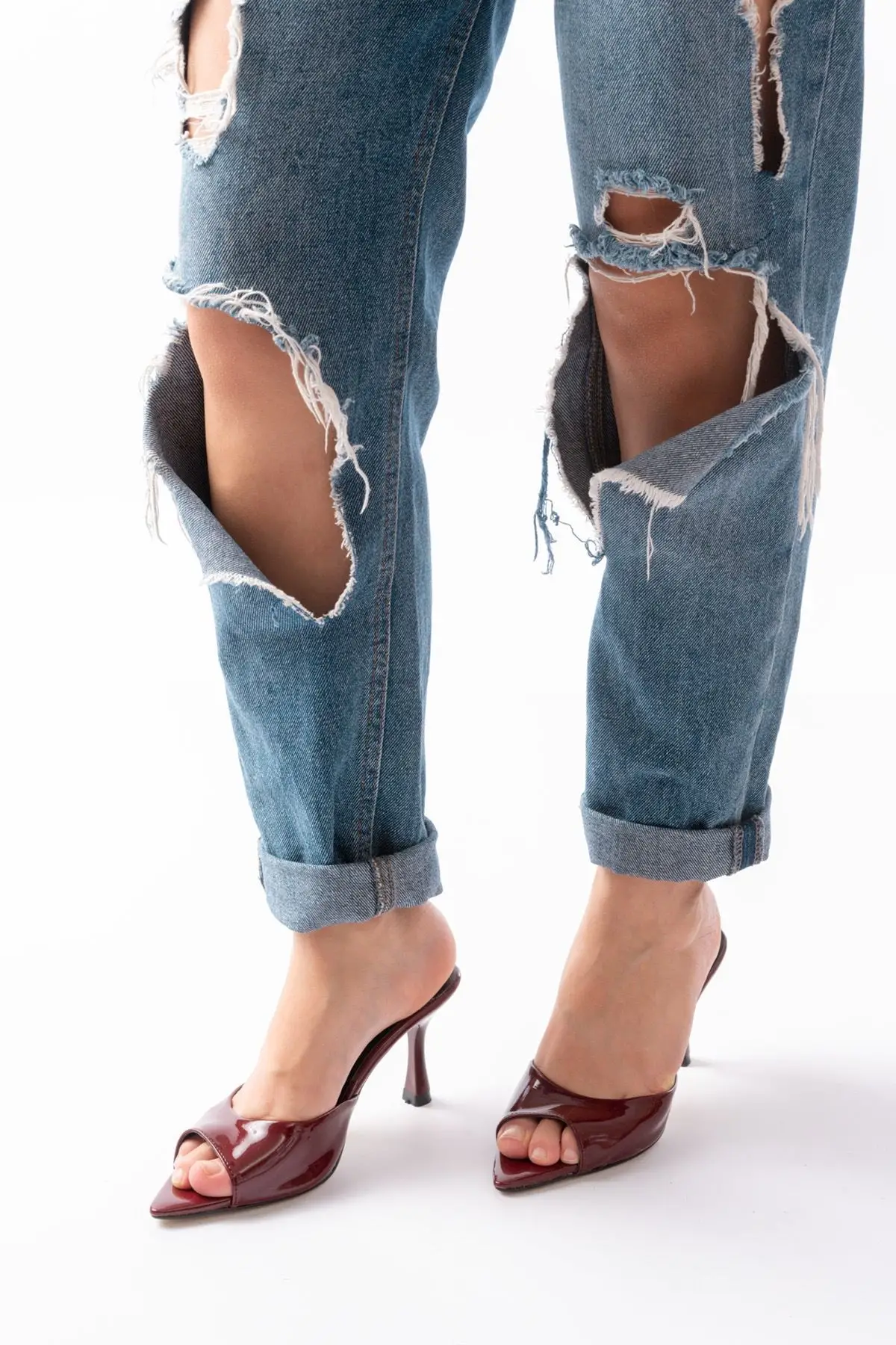 716 Bordo Rugan Sivri Burunlu Topuklu Kadın Terlik