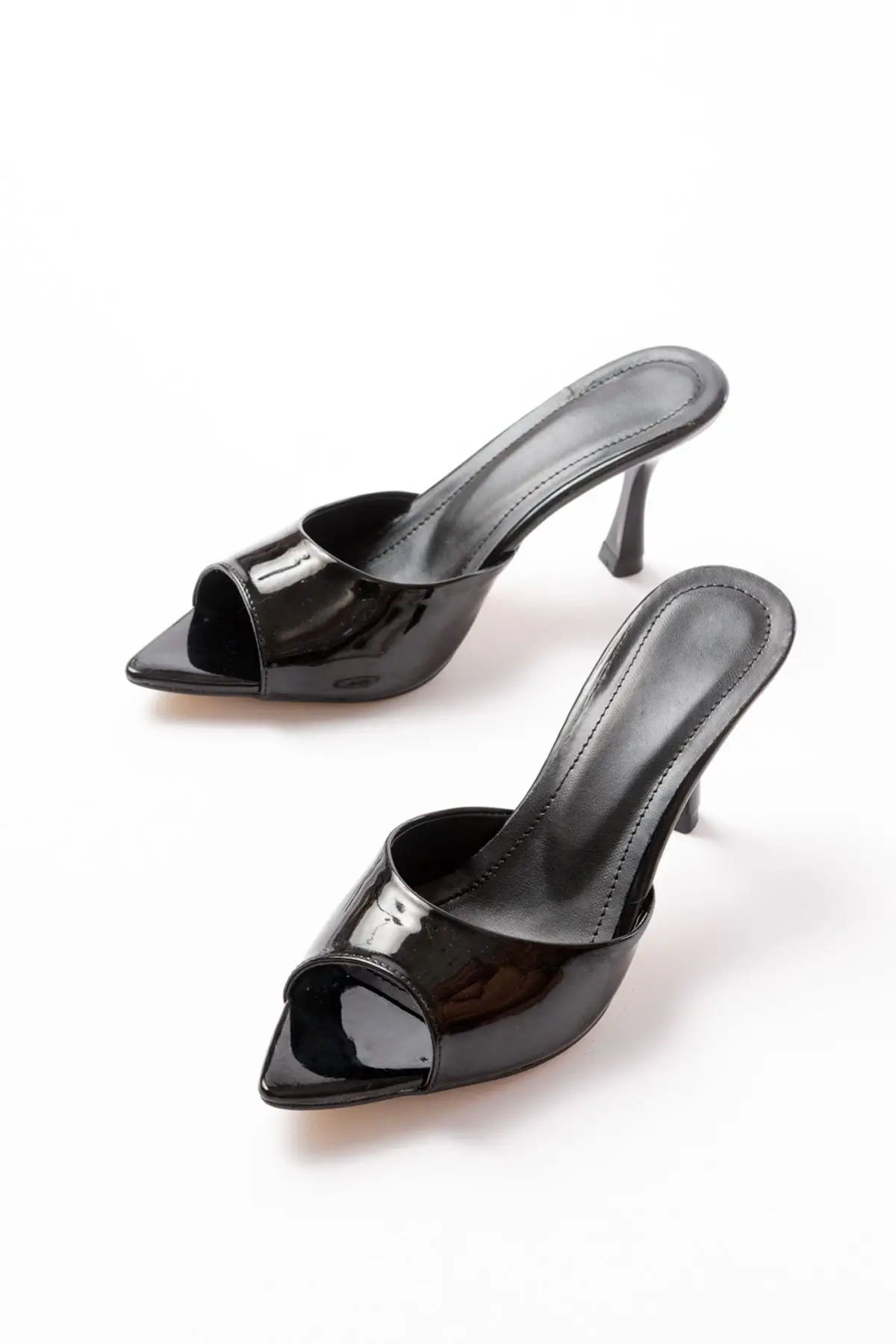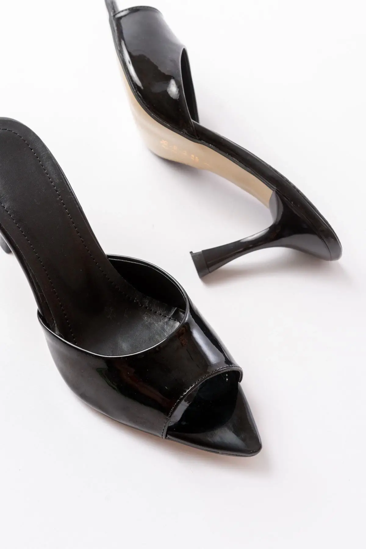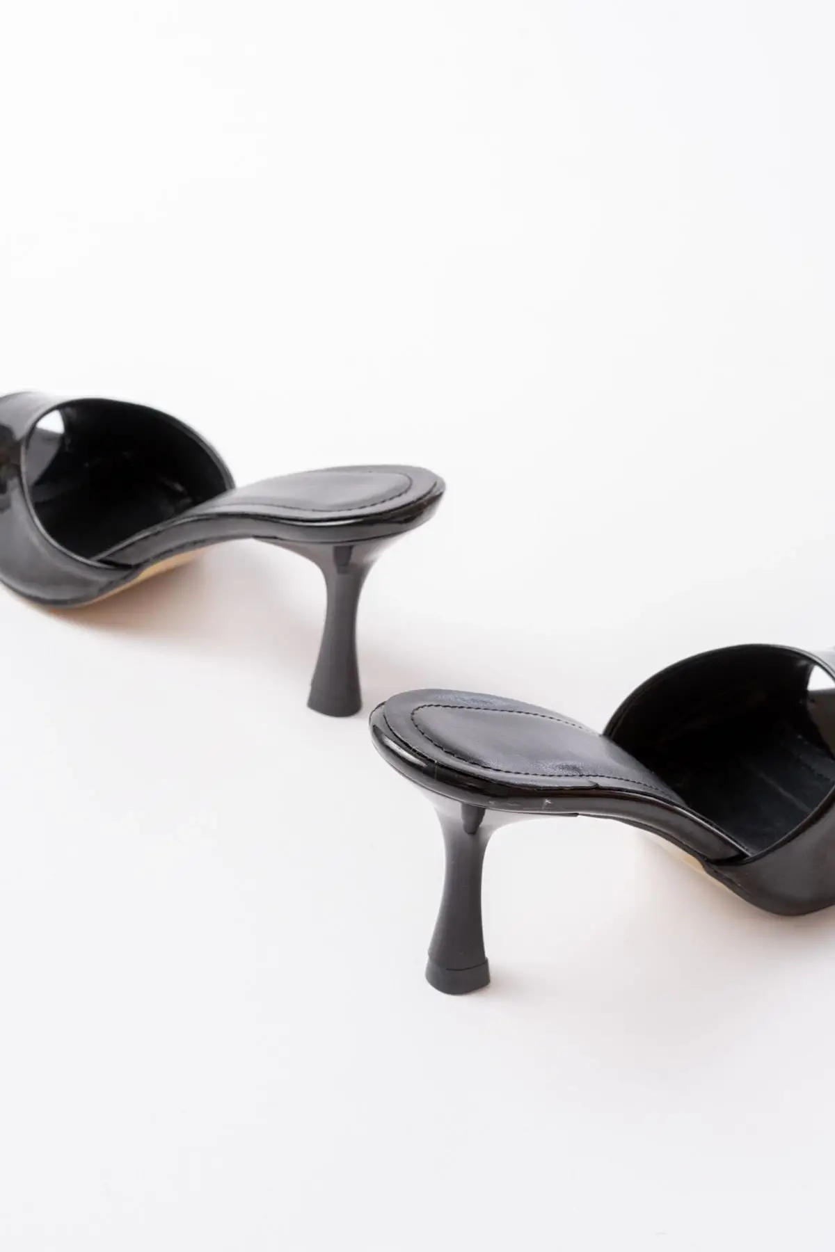 716 Siyah Rugan Sivri Burunlu Topuklu Kadın Terlik