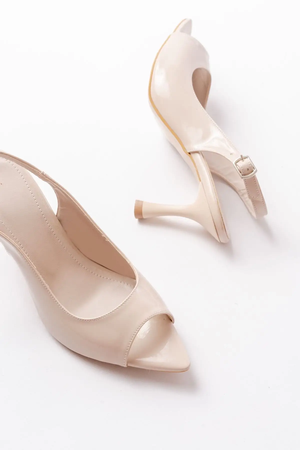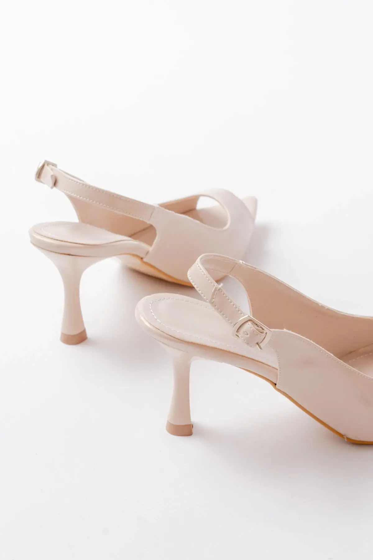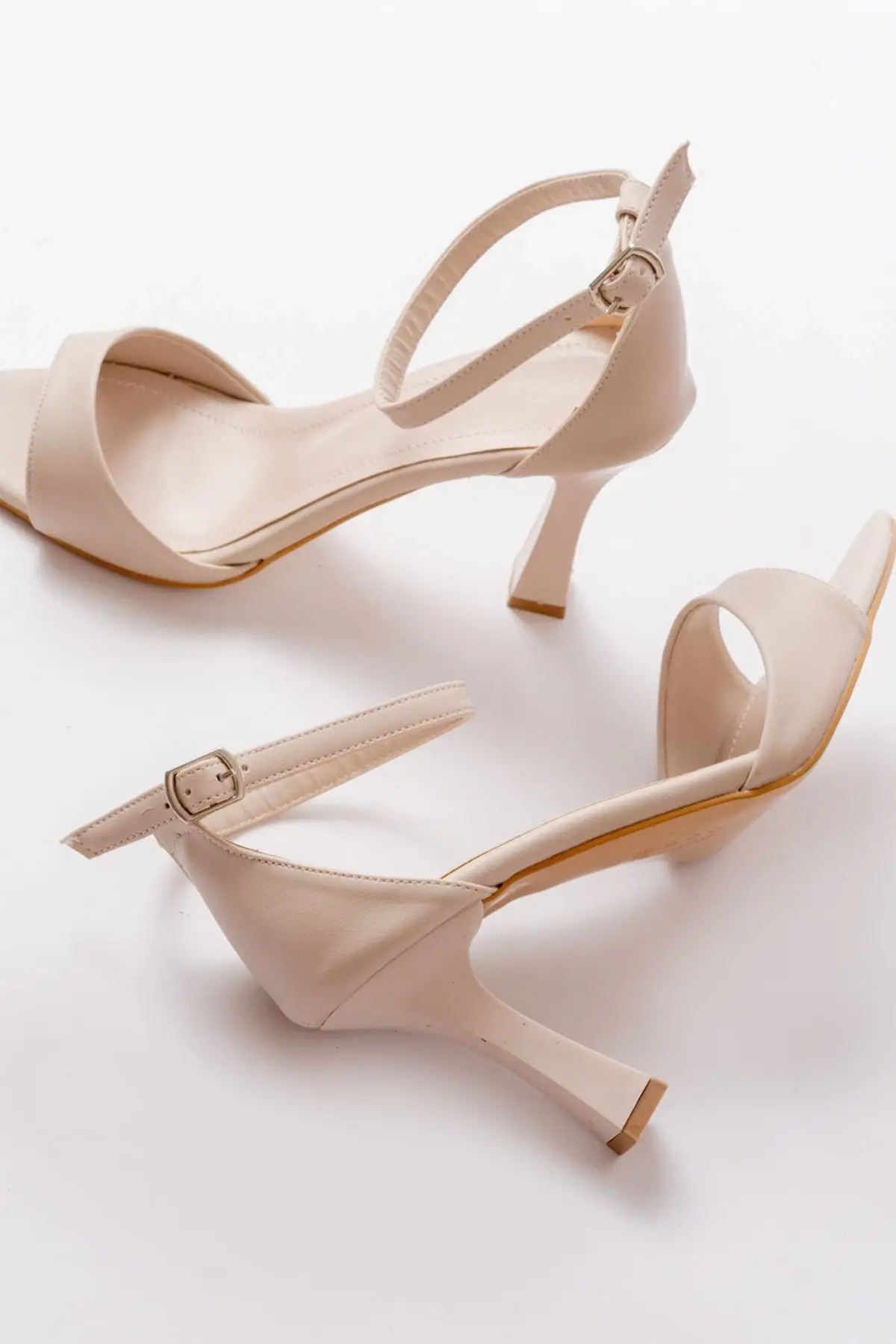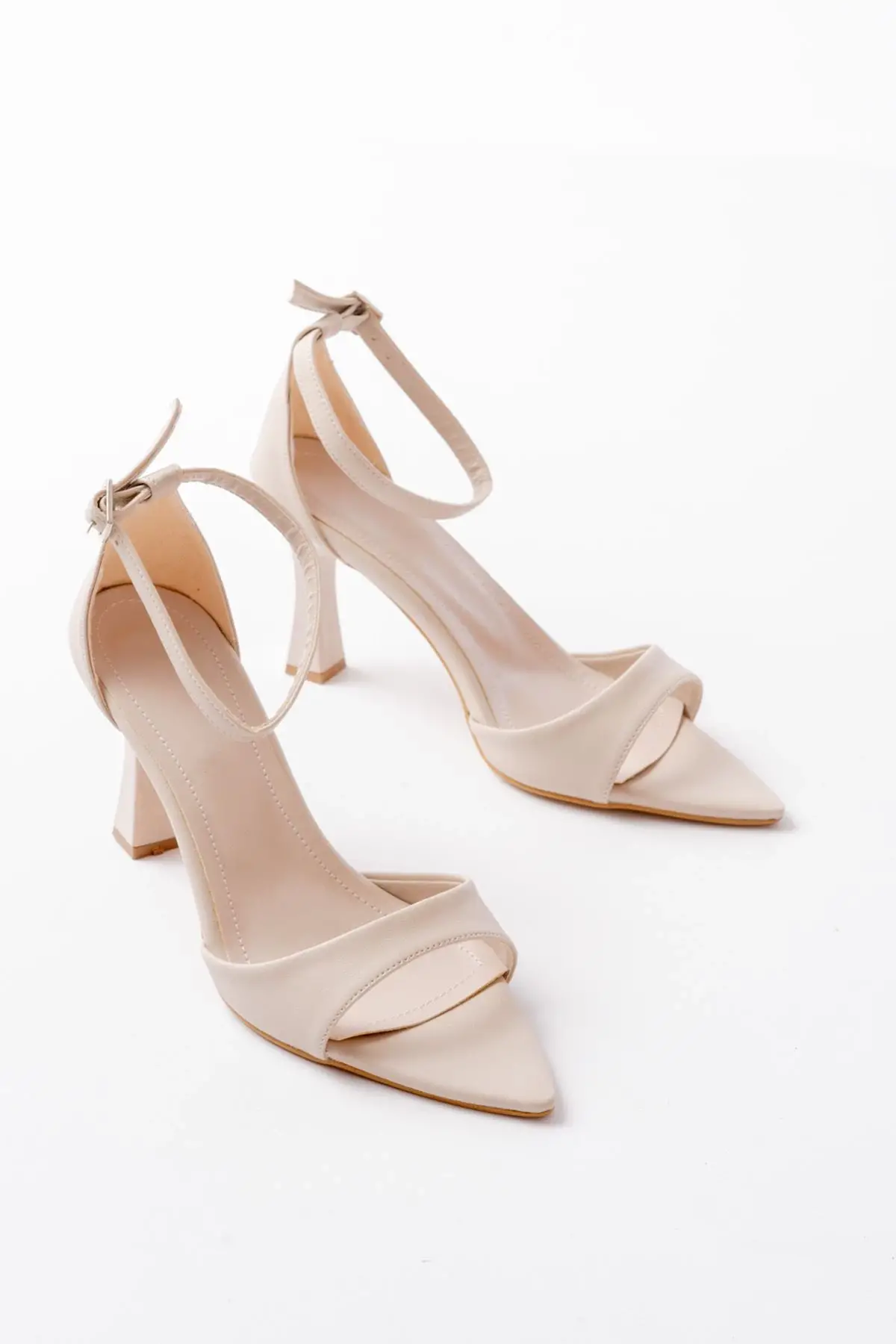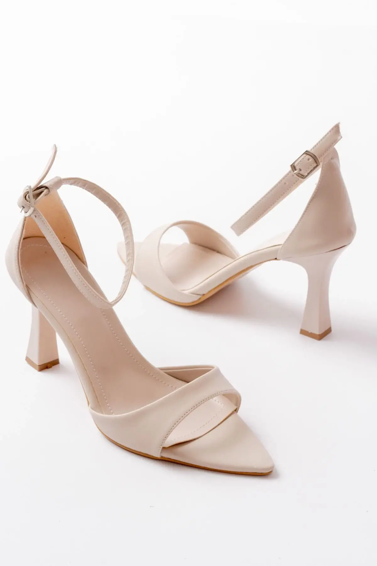 717 Bej Rugan Sivri Burunlu Topuklu Kadın Sandalet