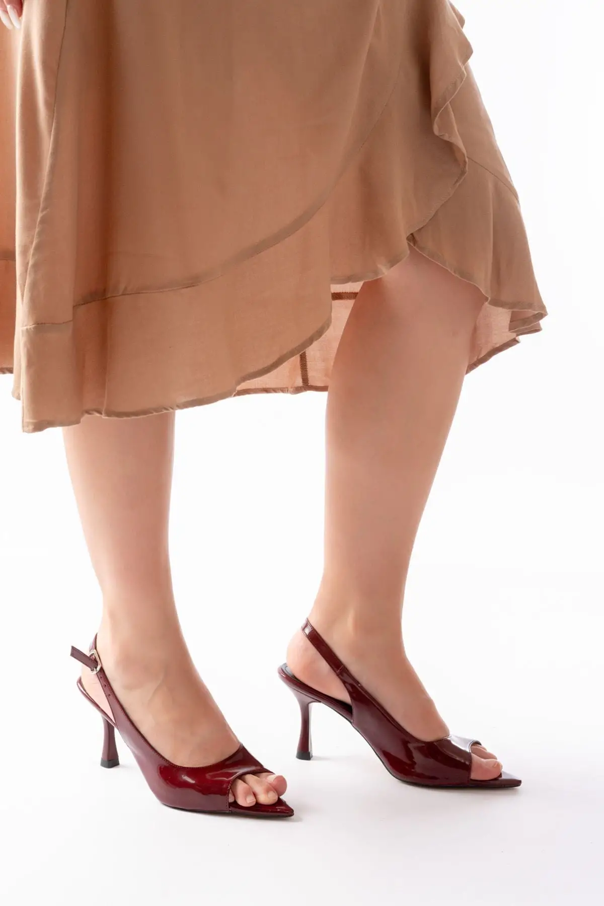 717 Bordo Rugan Sivri Burunlu Topuklu Kadın Sandalet