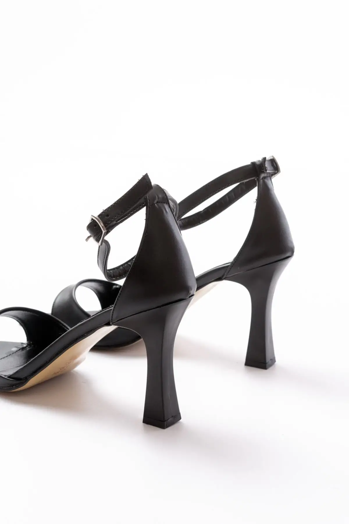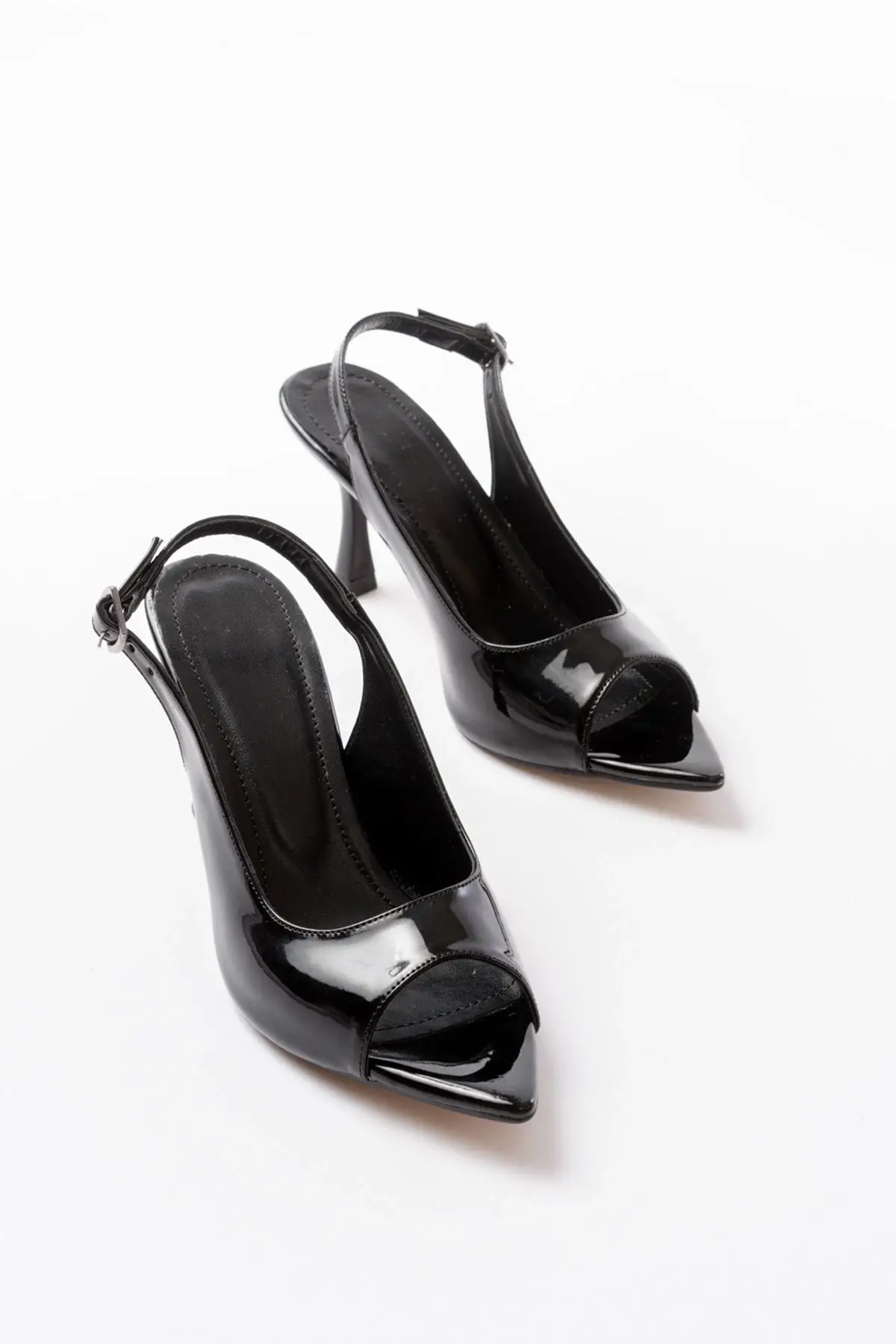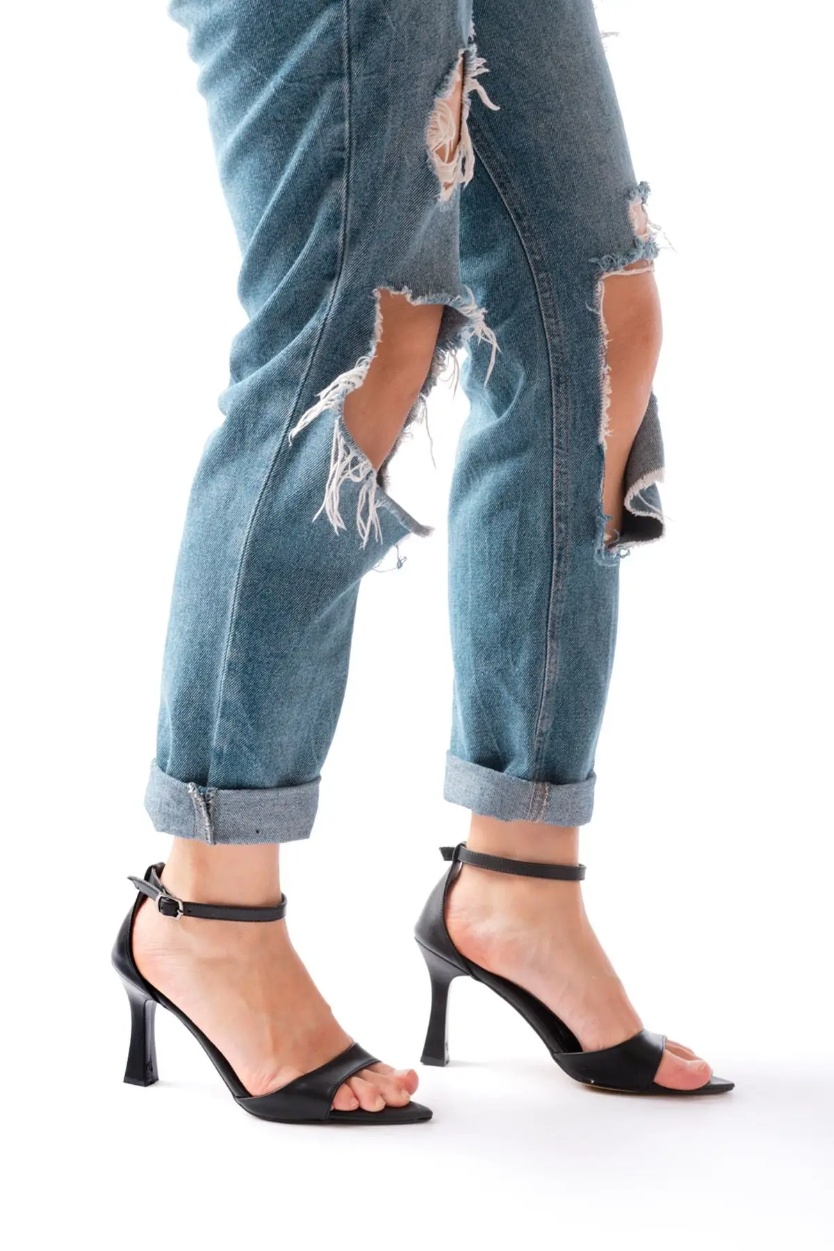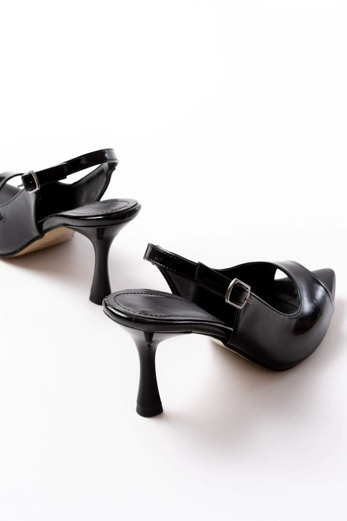 717 Siyah Rugan Sivri Burunlu Topuklu Kadın Sandalet