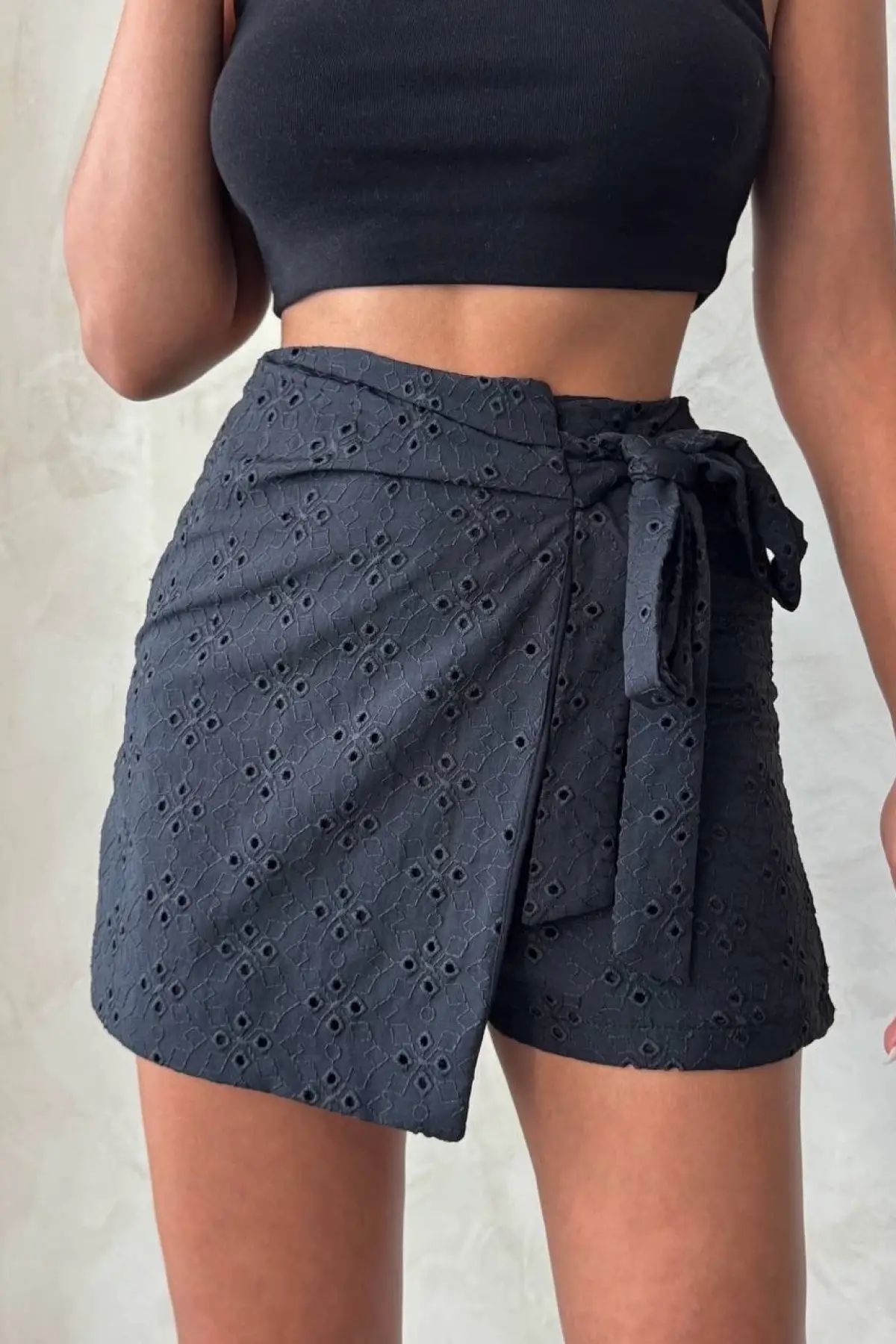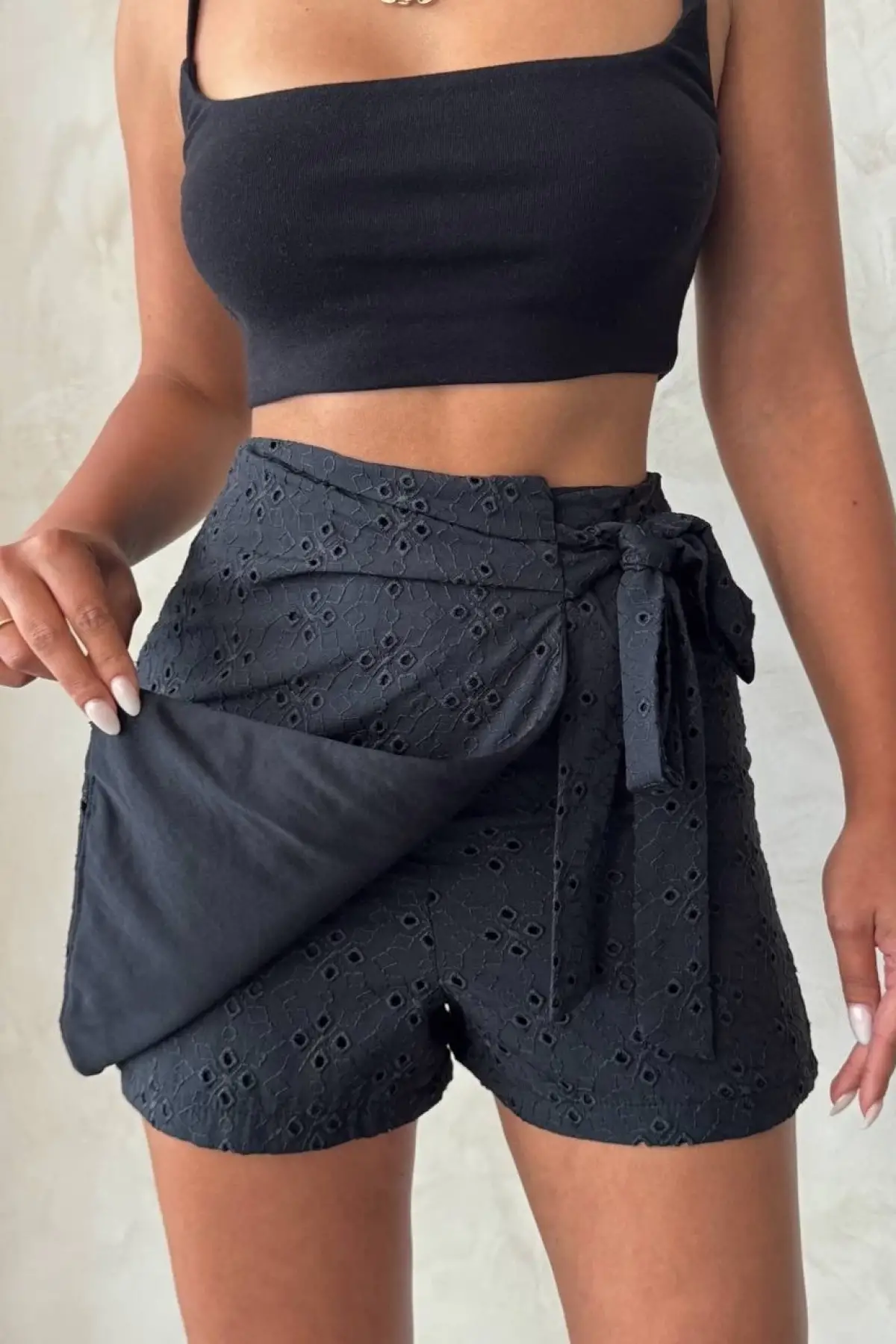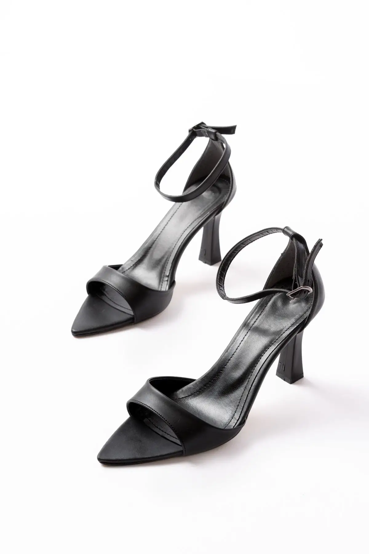718 Siyah Cilt Sivri Burunlu Topuklu Bilekten Bağlamalı Kadın Ayakkabı
