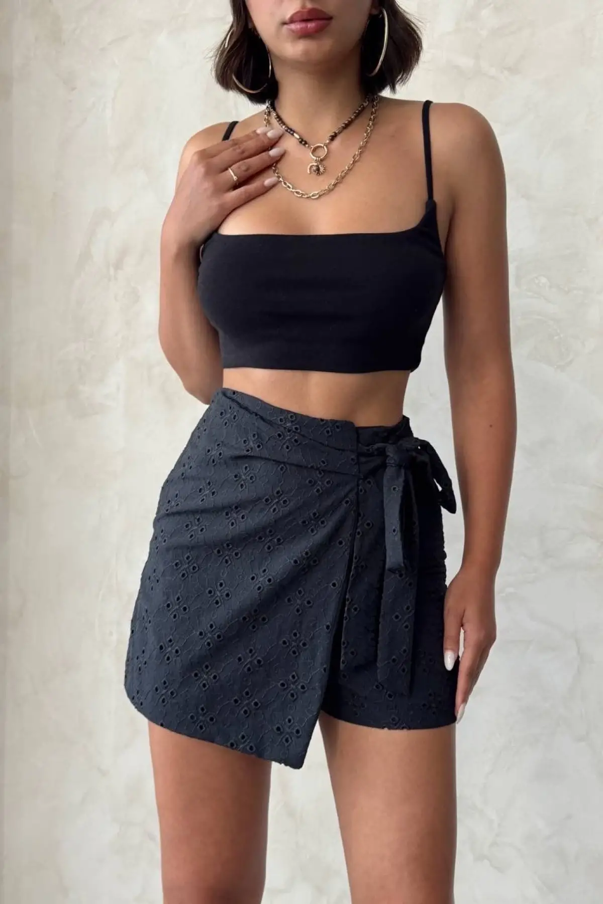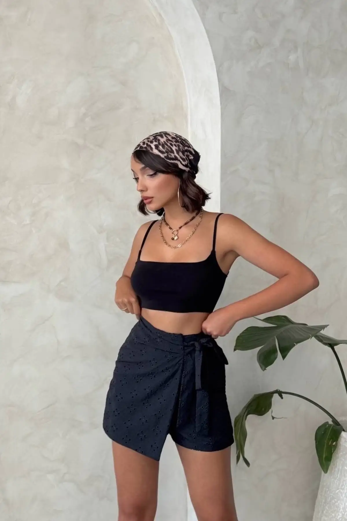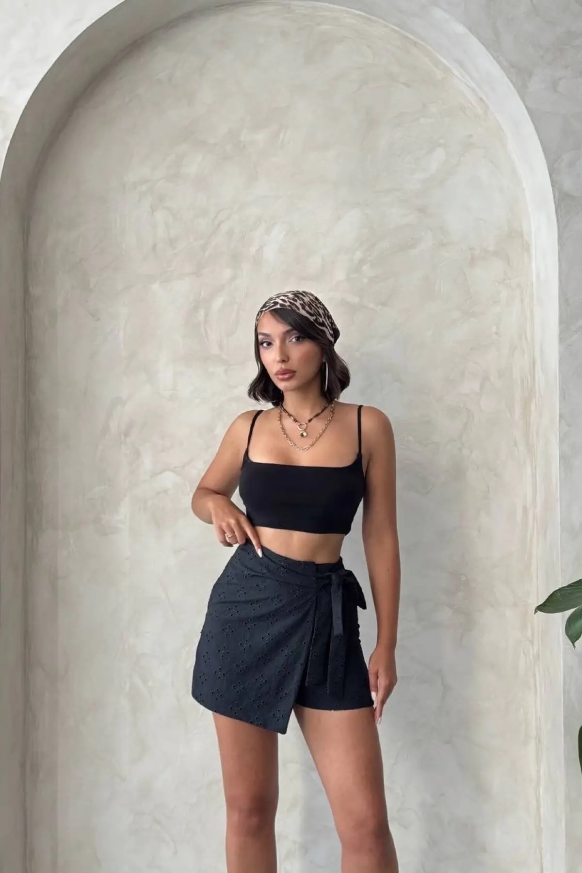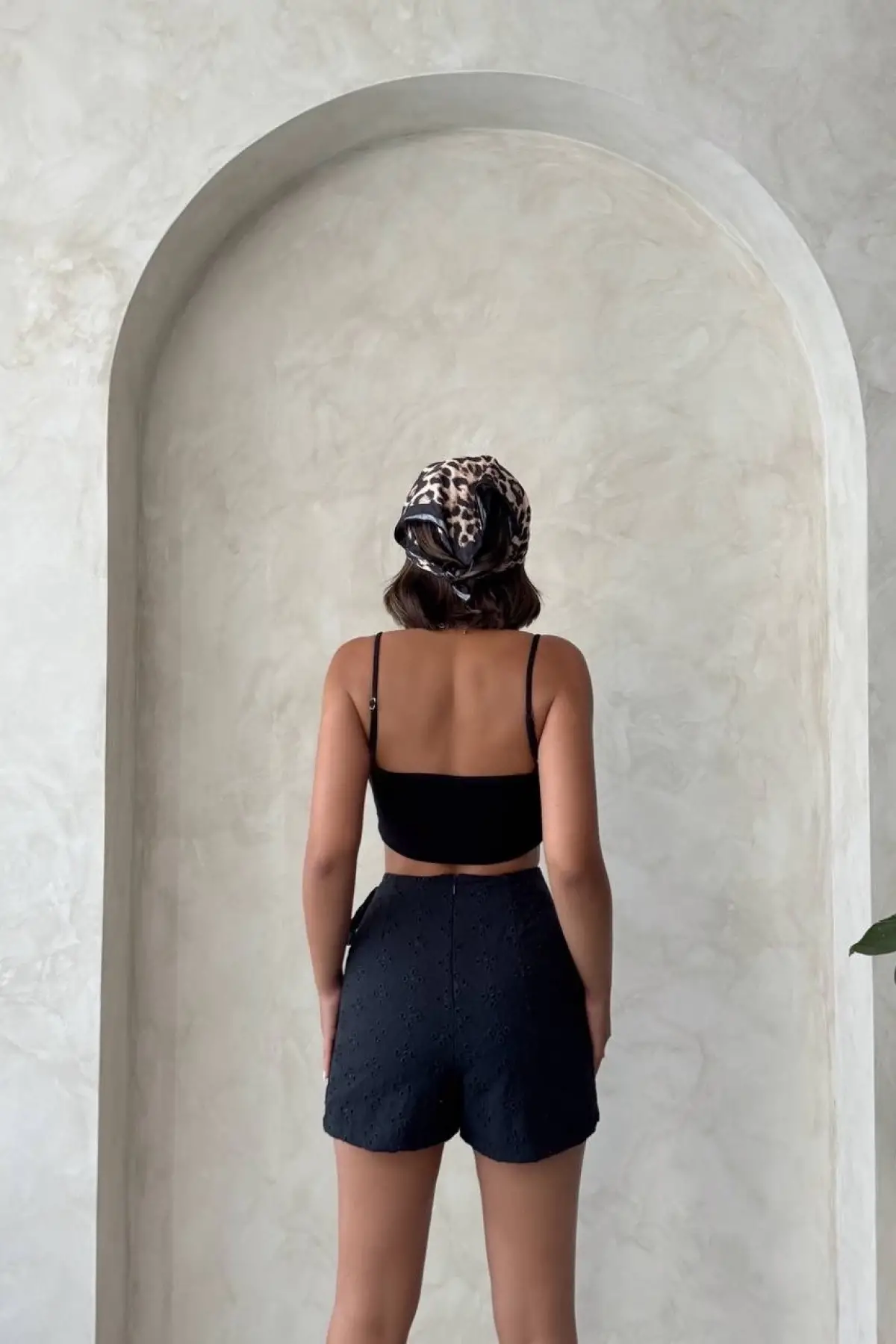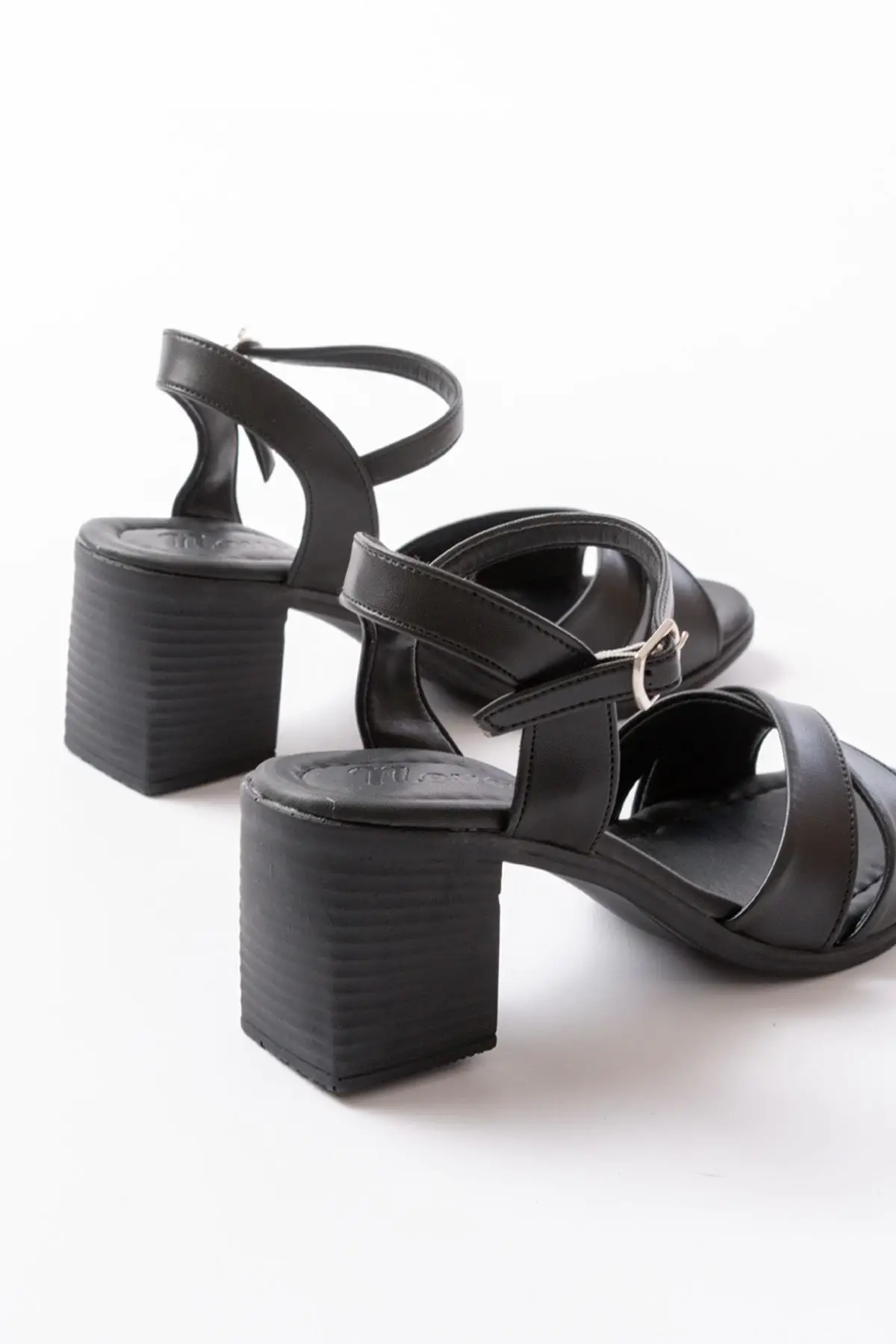 K-11 Siyah Günlük Çapraz Topuklu Kadın Sandalet