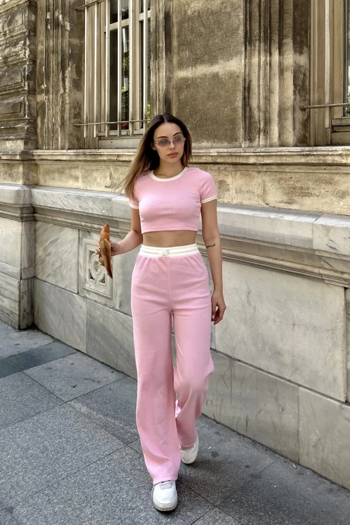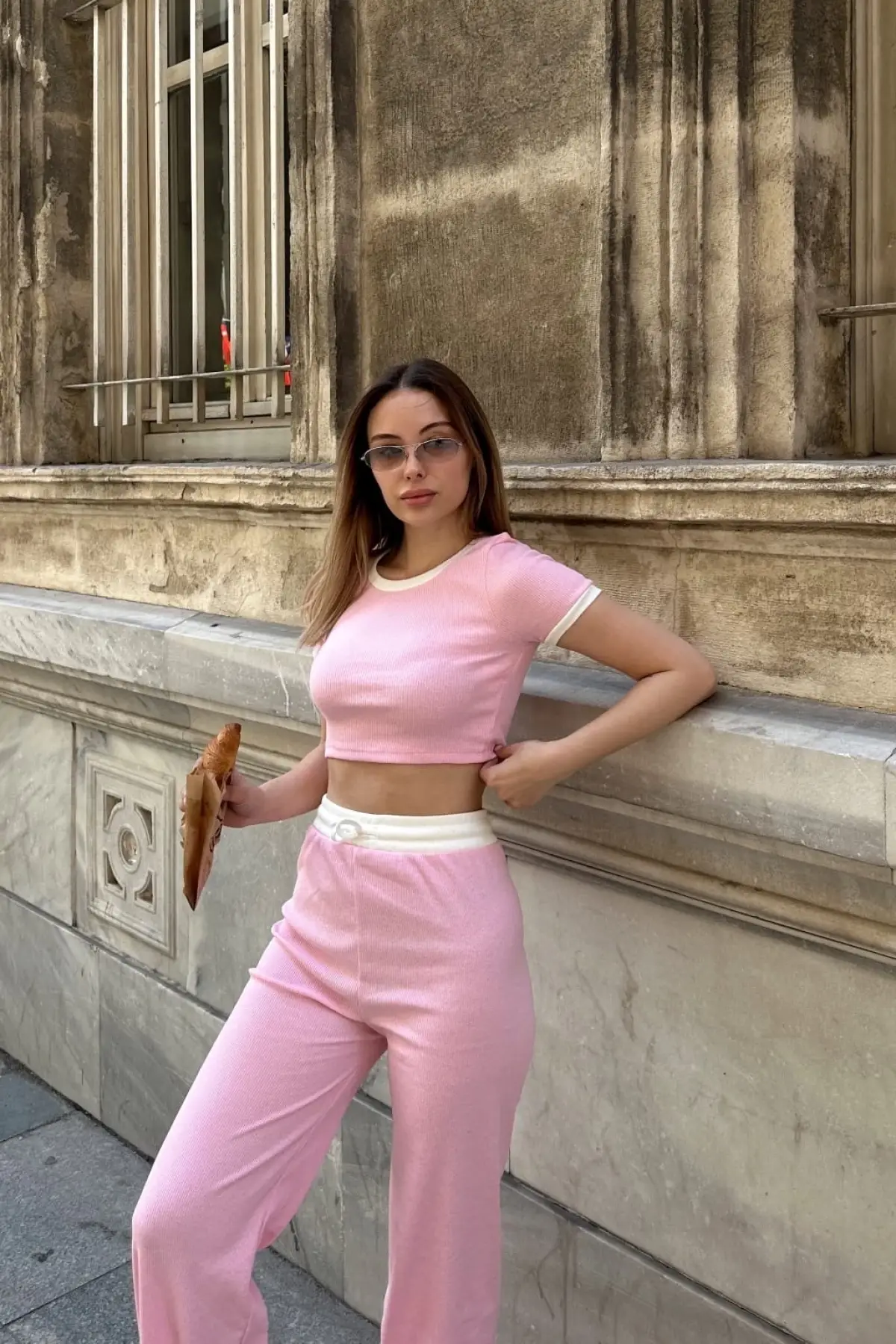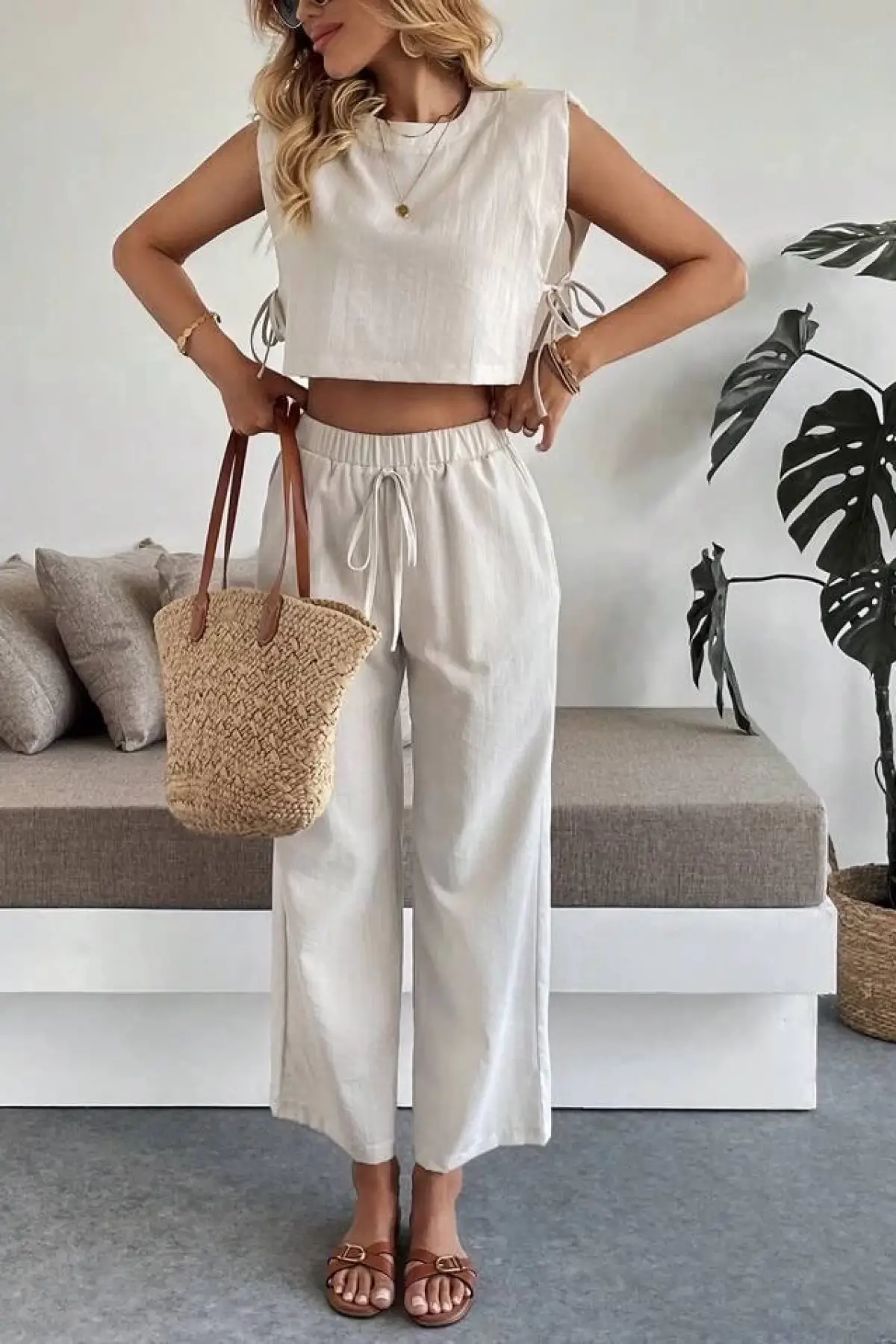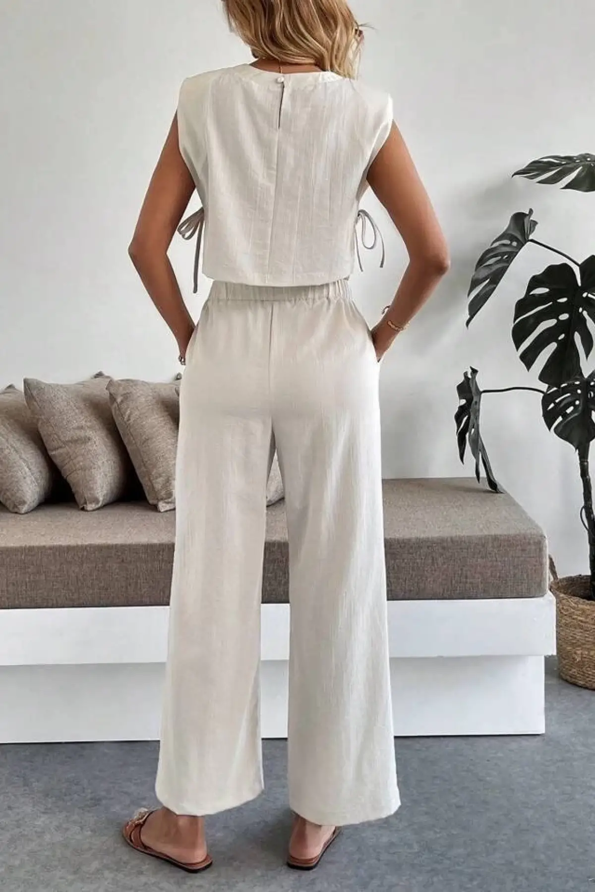 Yan Bağlama Detaylı Pantolonlu Takım Bej