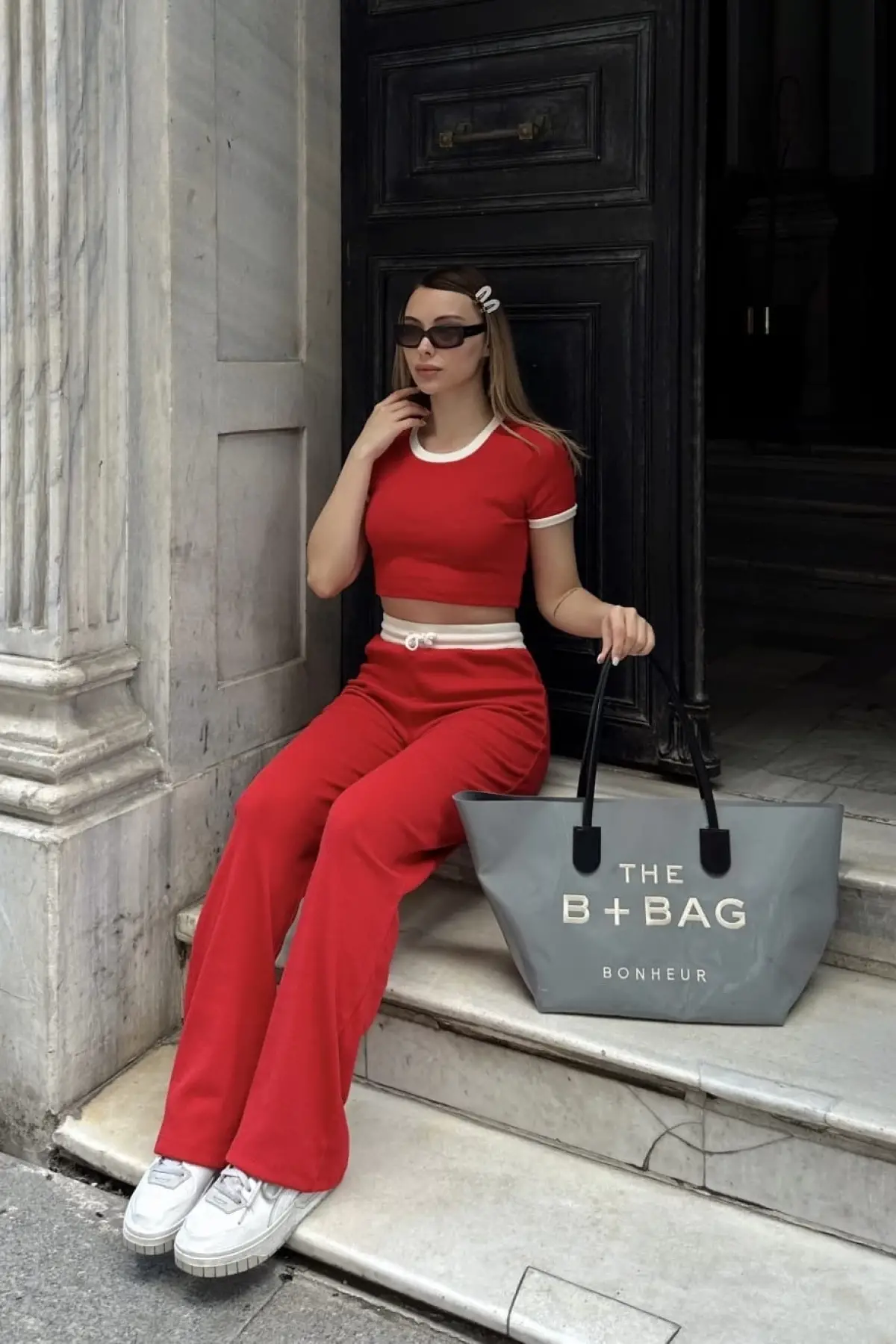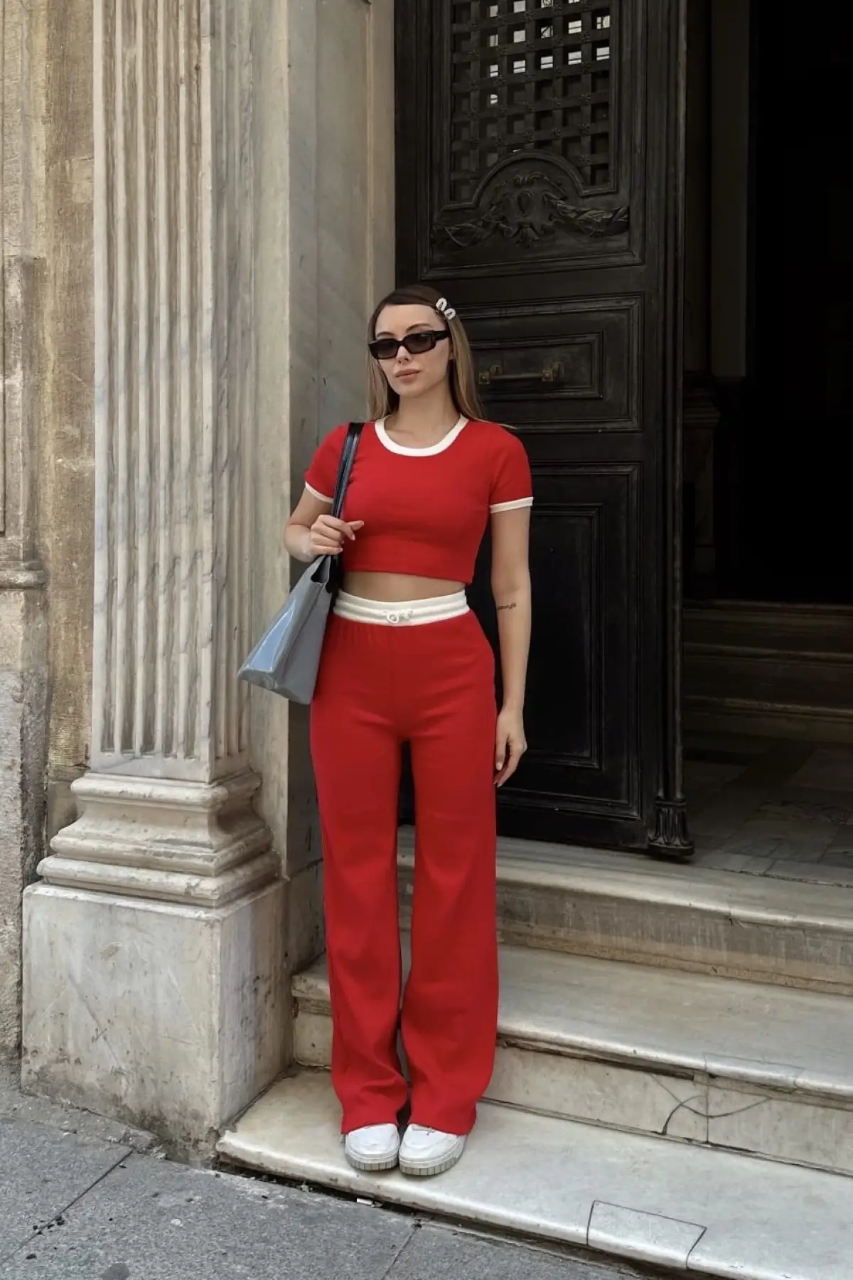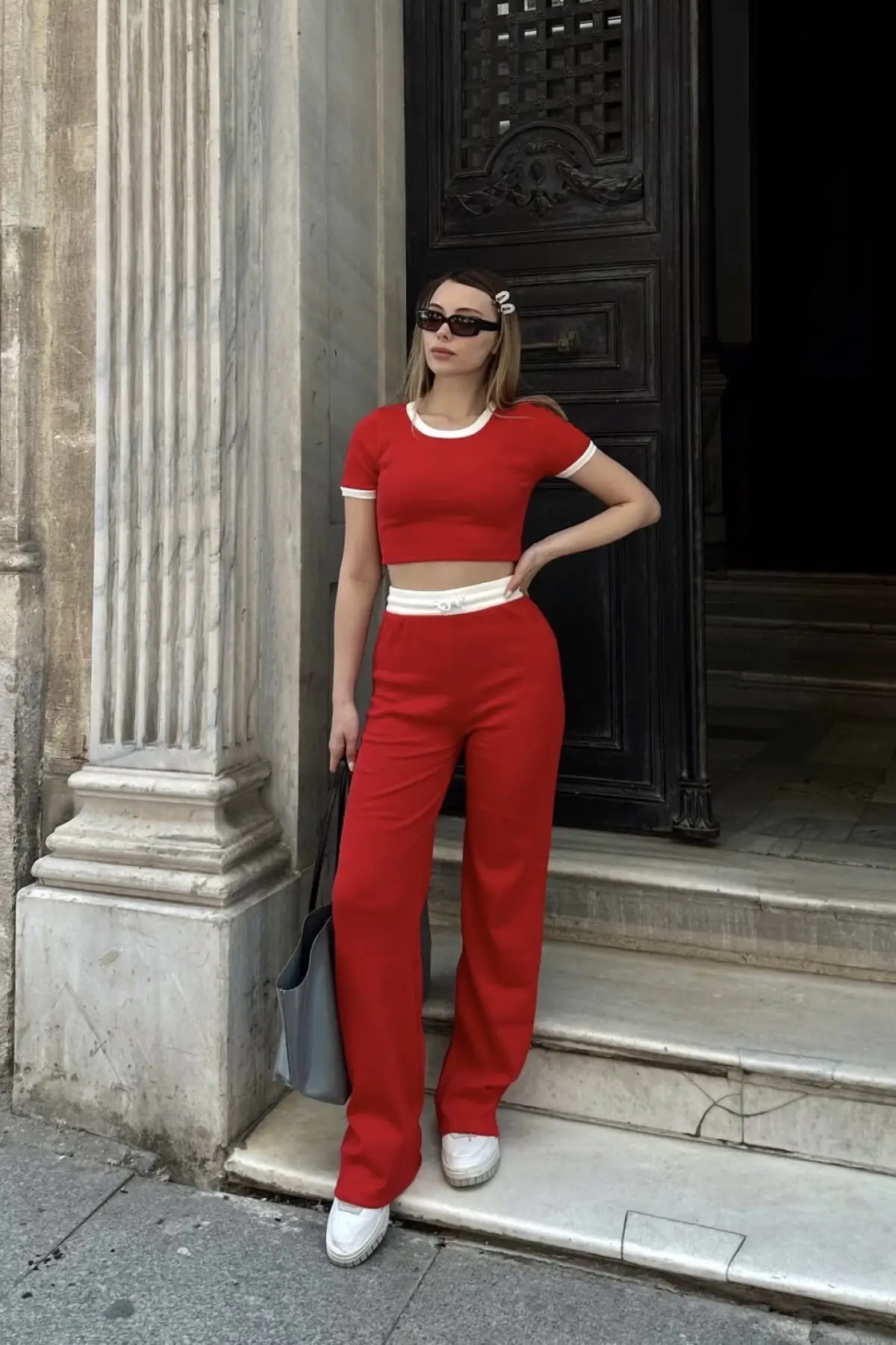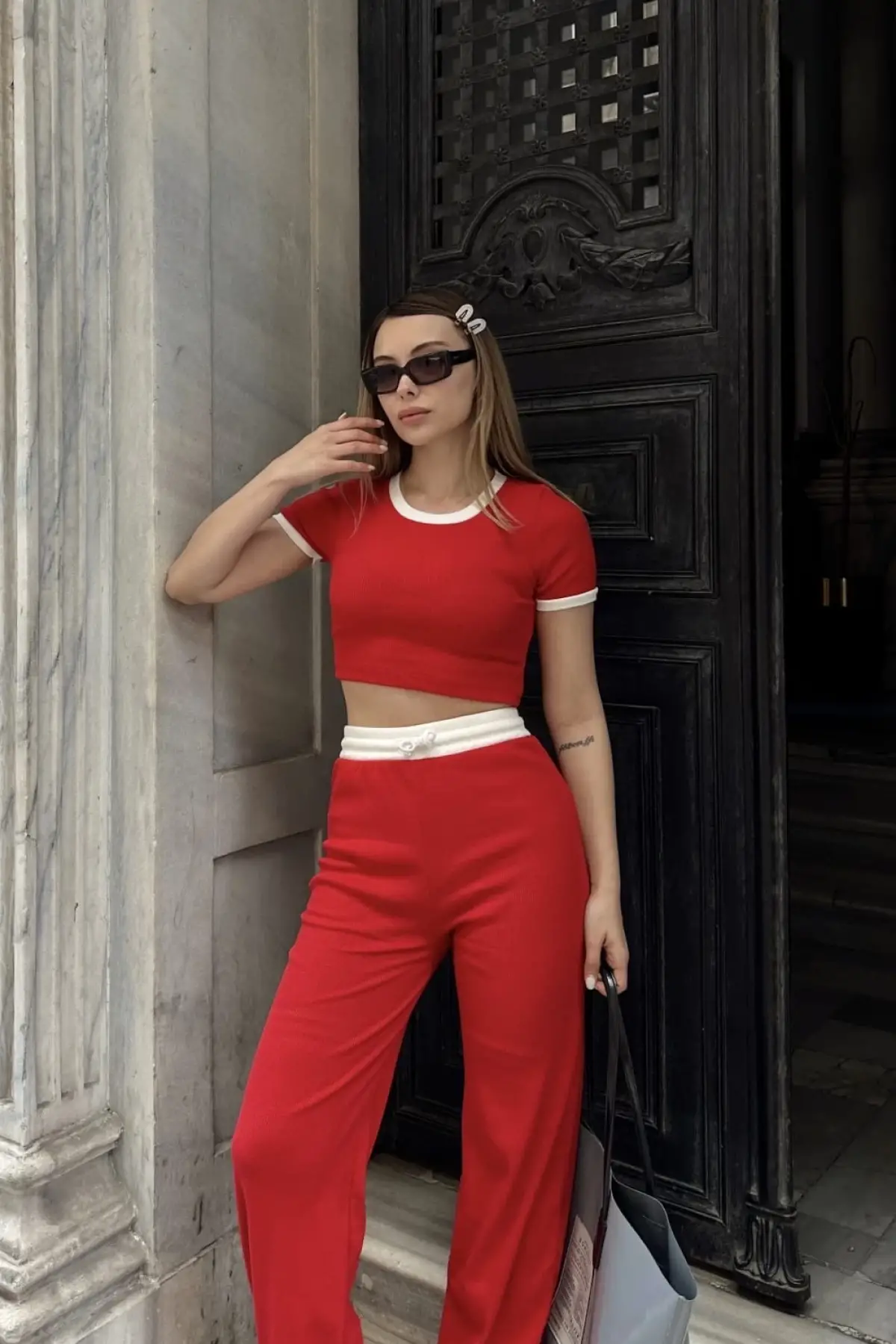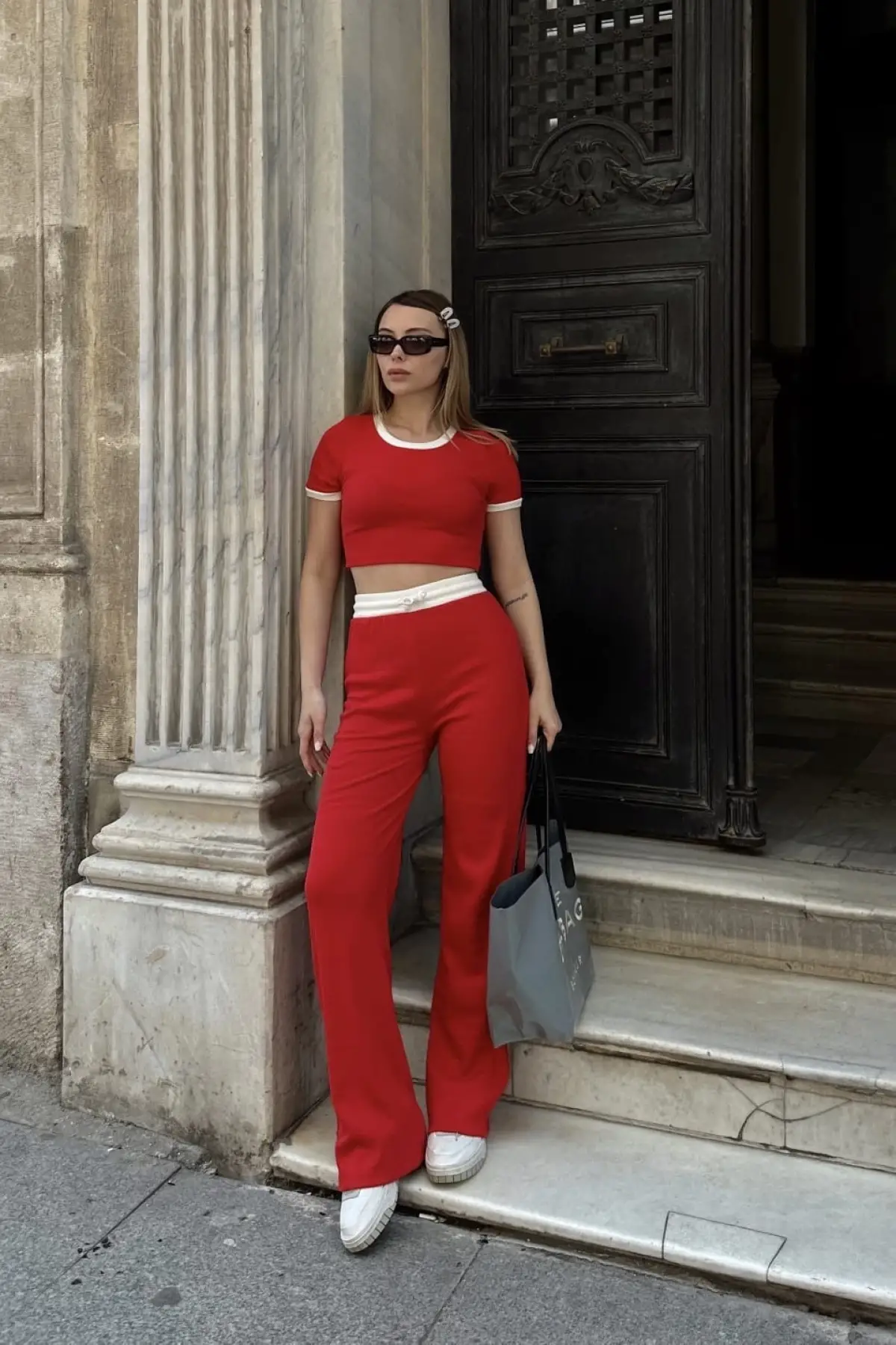 Yan Bağlama Detaylı Pantolonlu Takım Bej