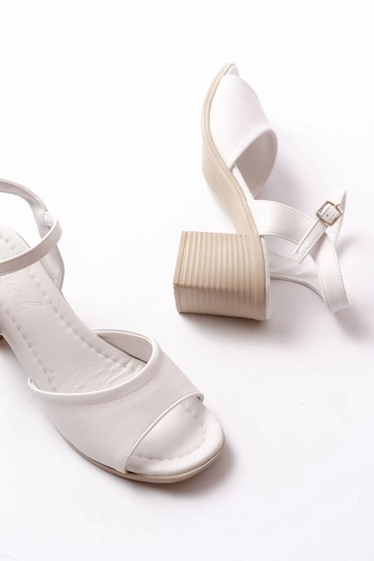 K-13 Beyaz Günlük Topuklu Kadın Sandalet
