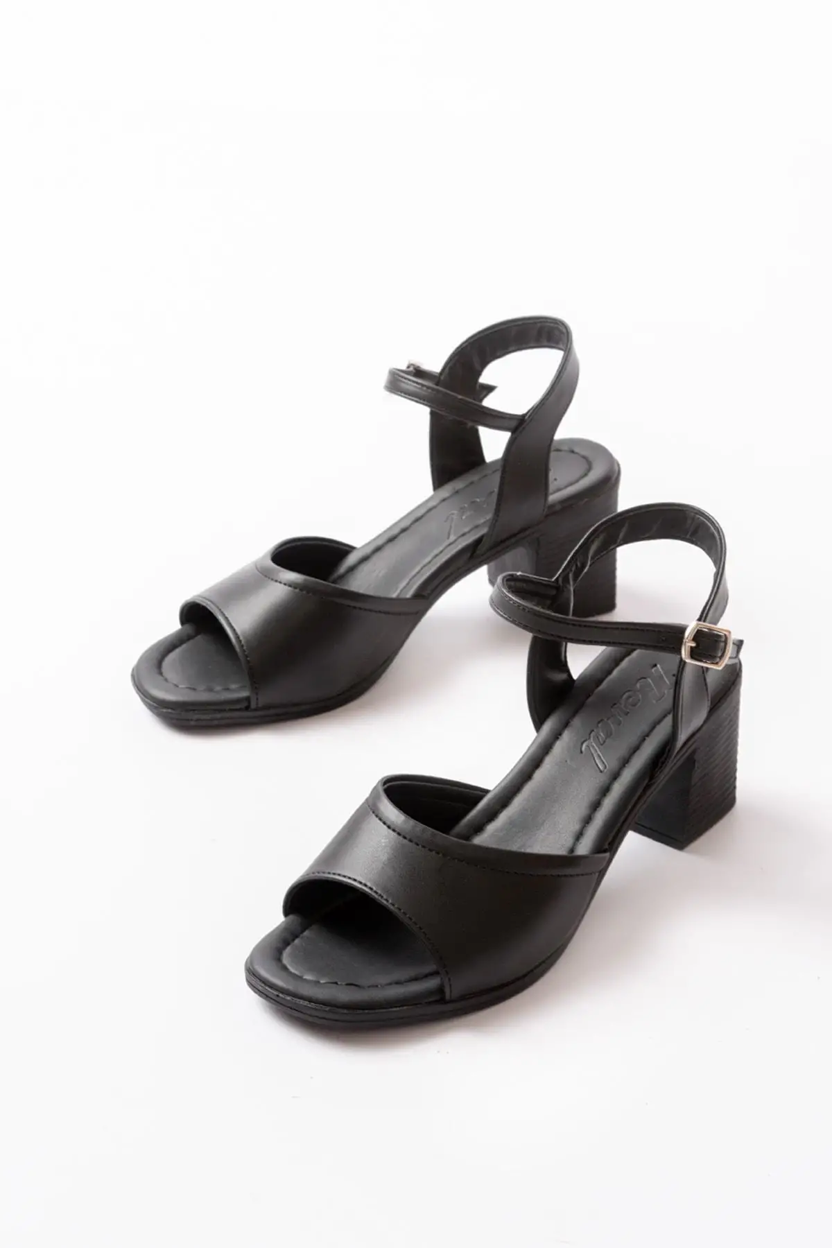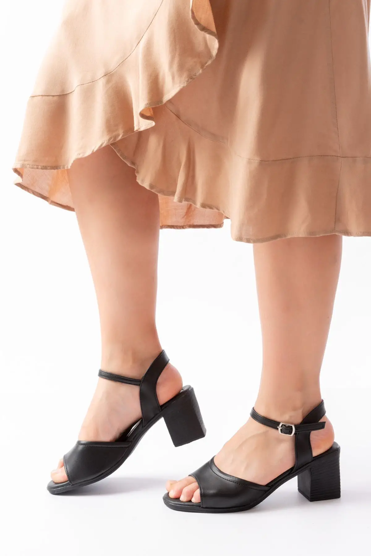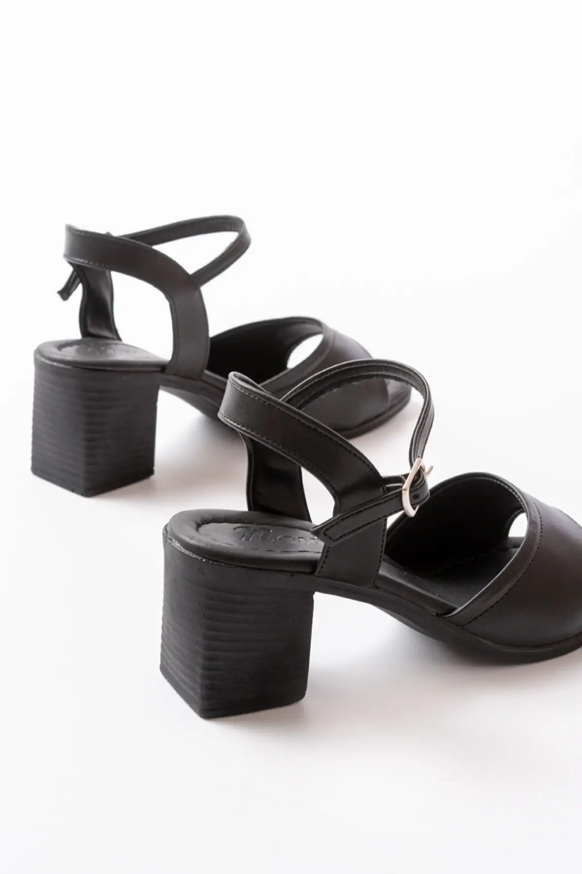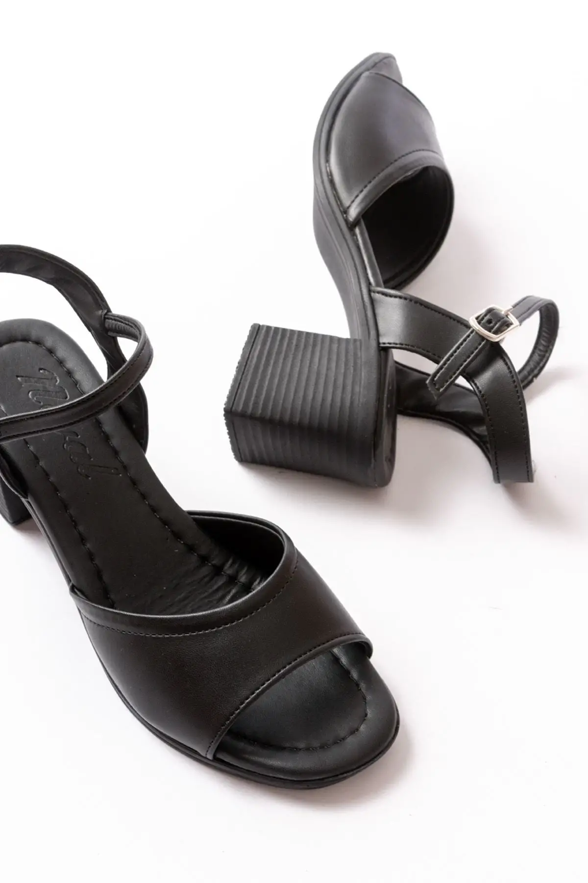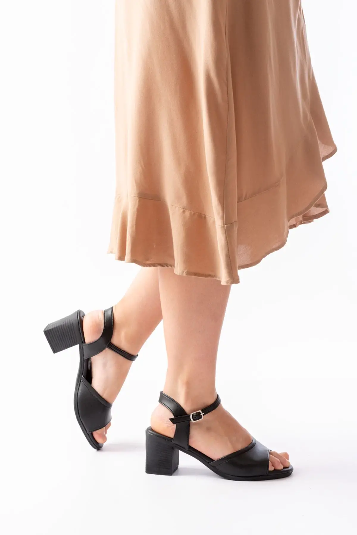 K-13 Siyah Günlük Topuklu Kadın Sandalet