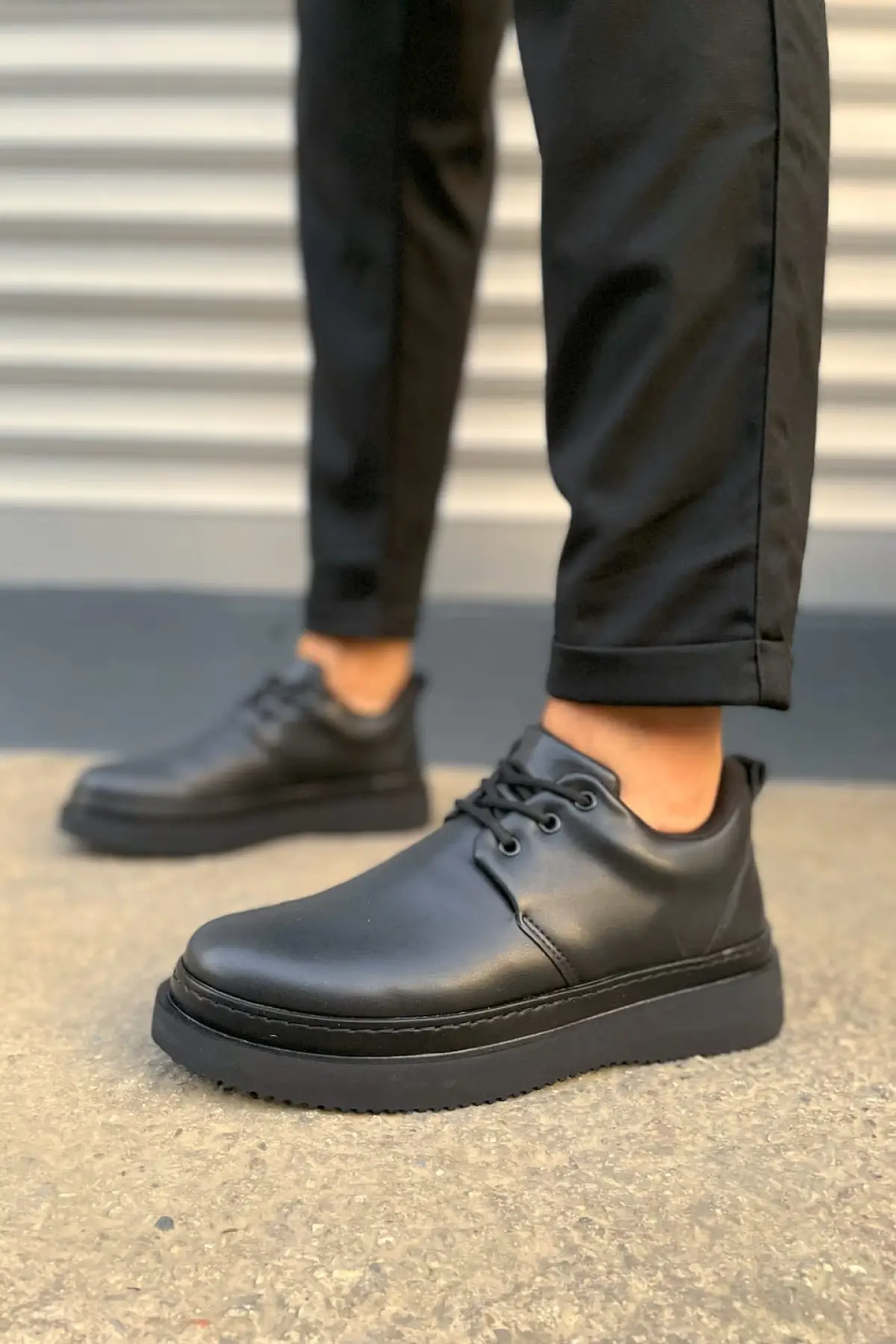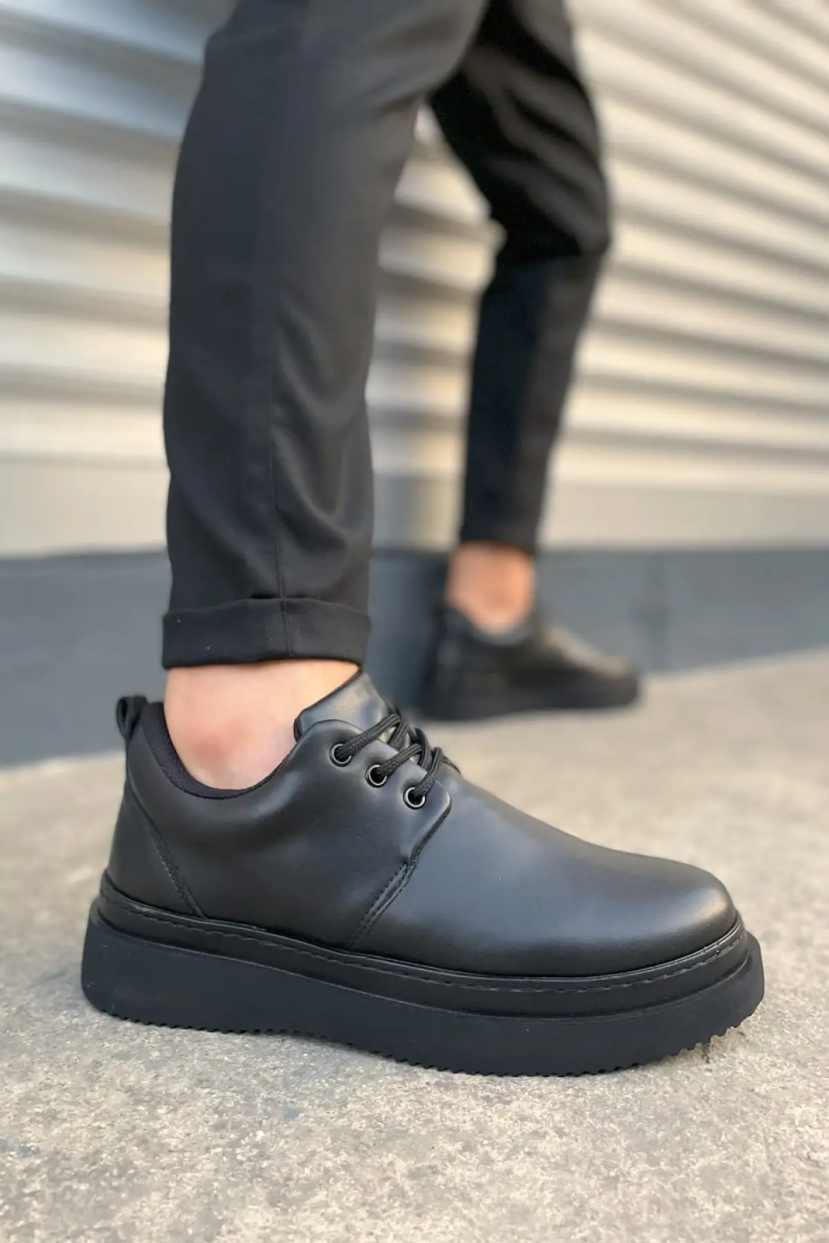 Tb122 Mode Bağcıklı Cilt Erkek Günlük Sneaker Ayakkabı Cst - Siyah