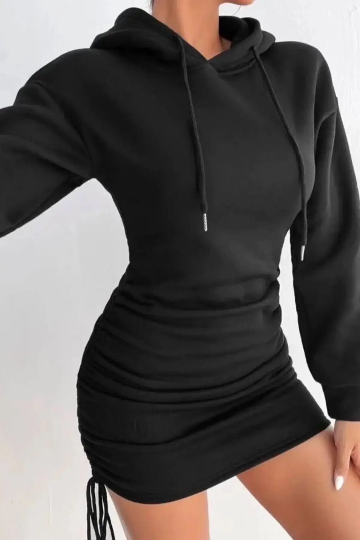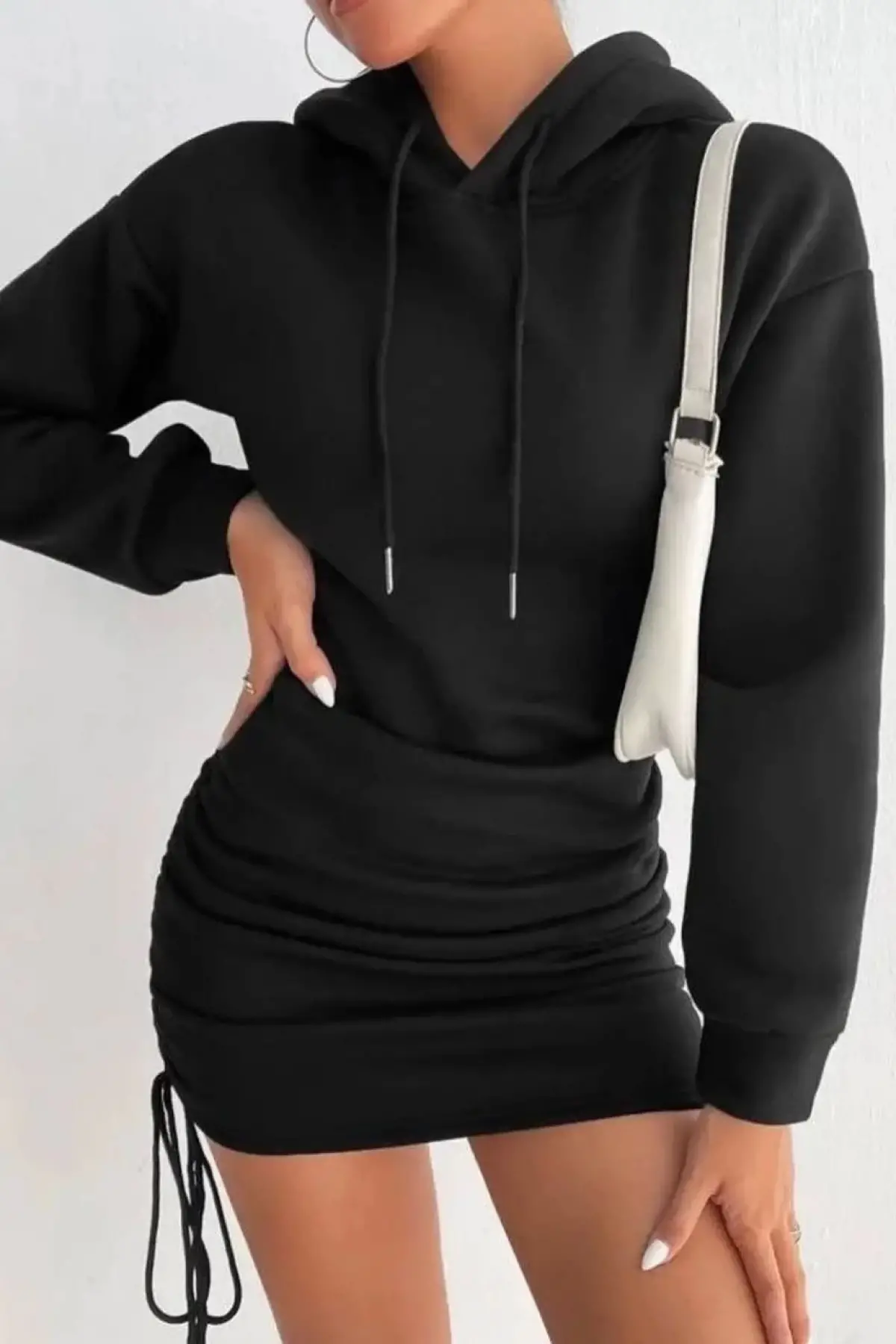 3 İplik Şardonlu Kompact Kapşonlu Elbise Siyah