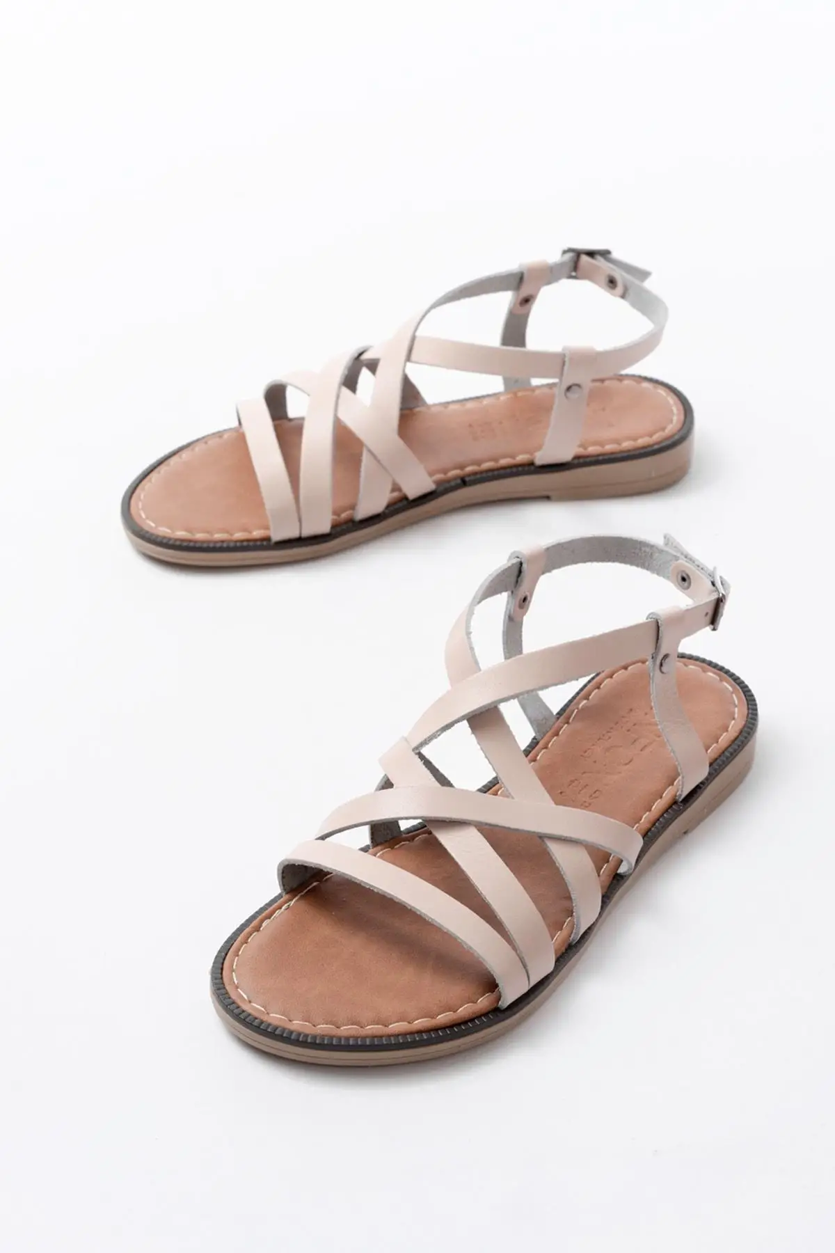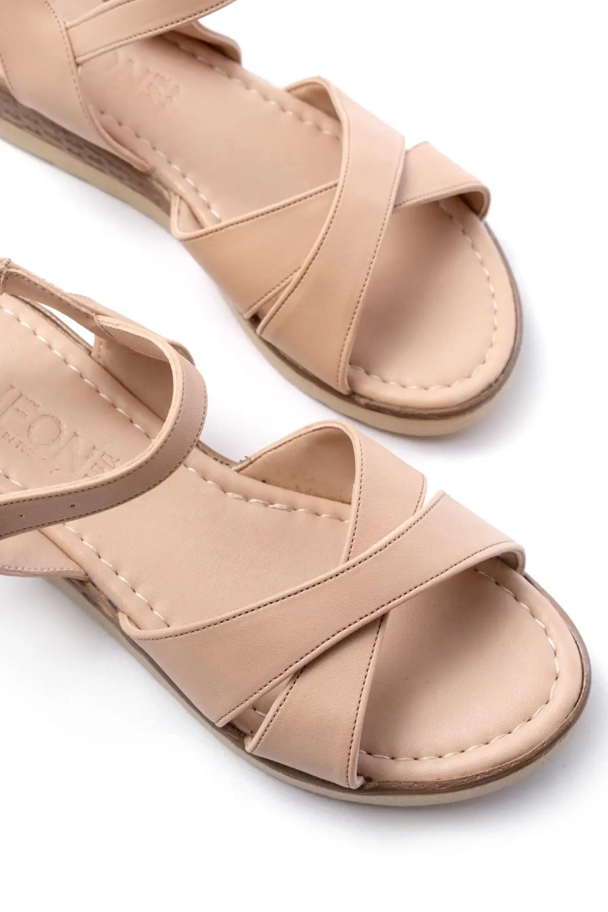 692-564 Bej Ortopedik Taban Çapraz Tokalı Kadın Sandalet