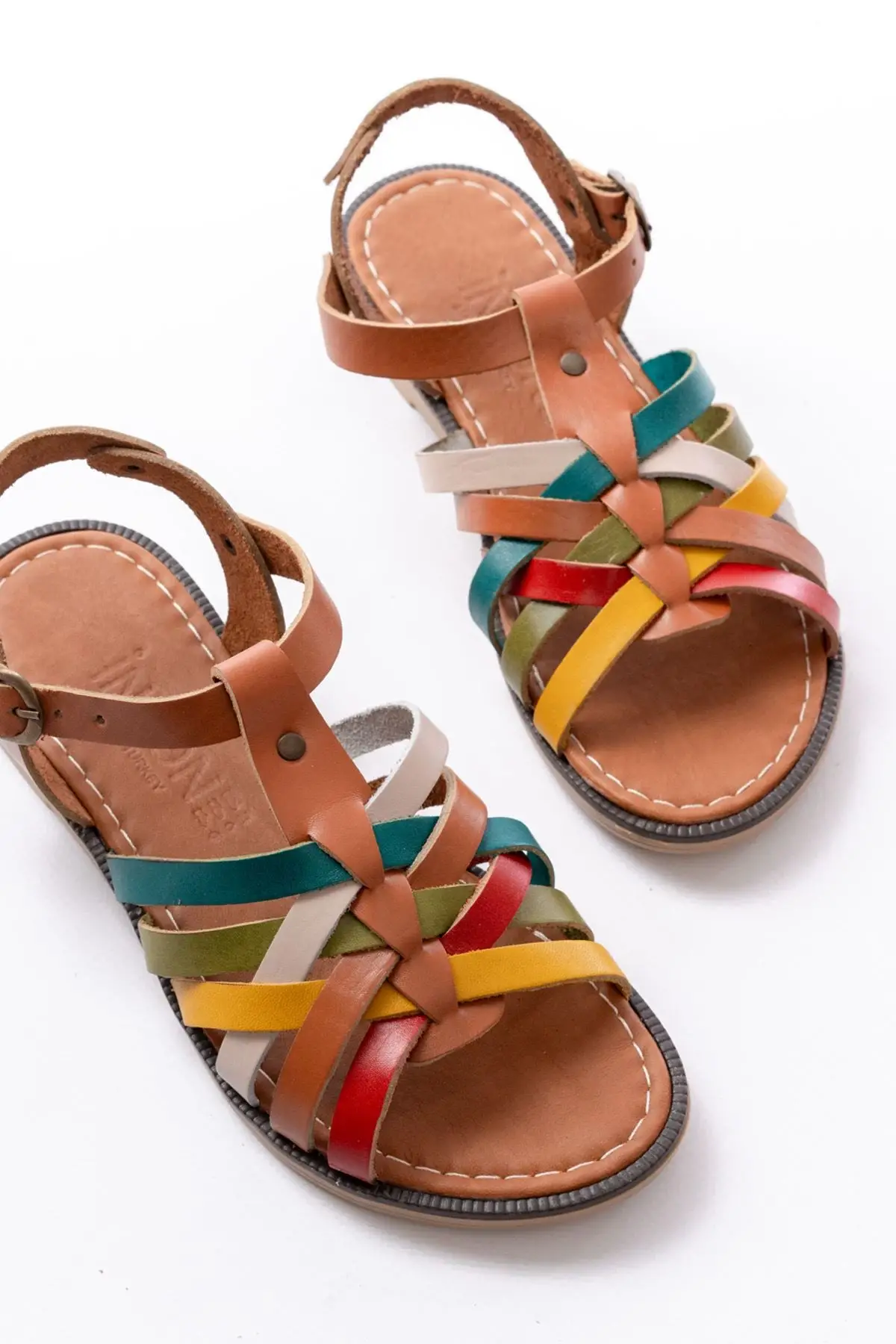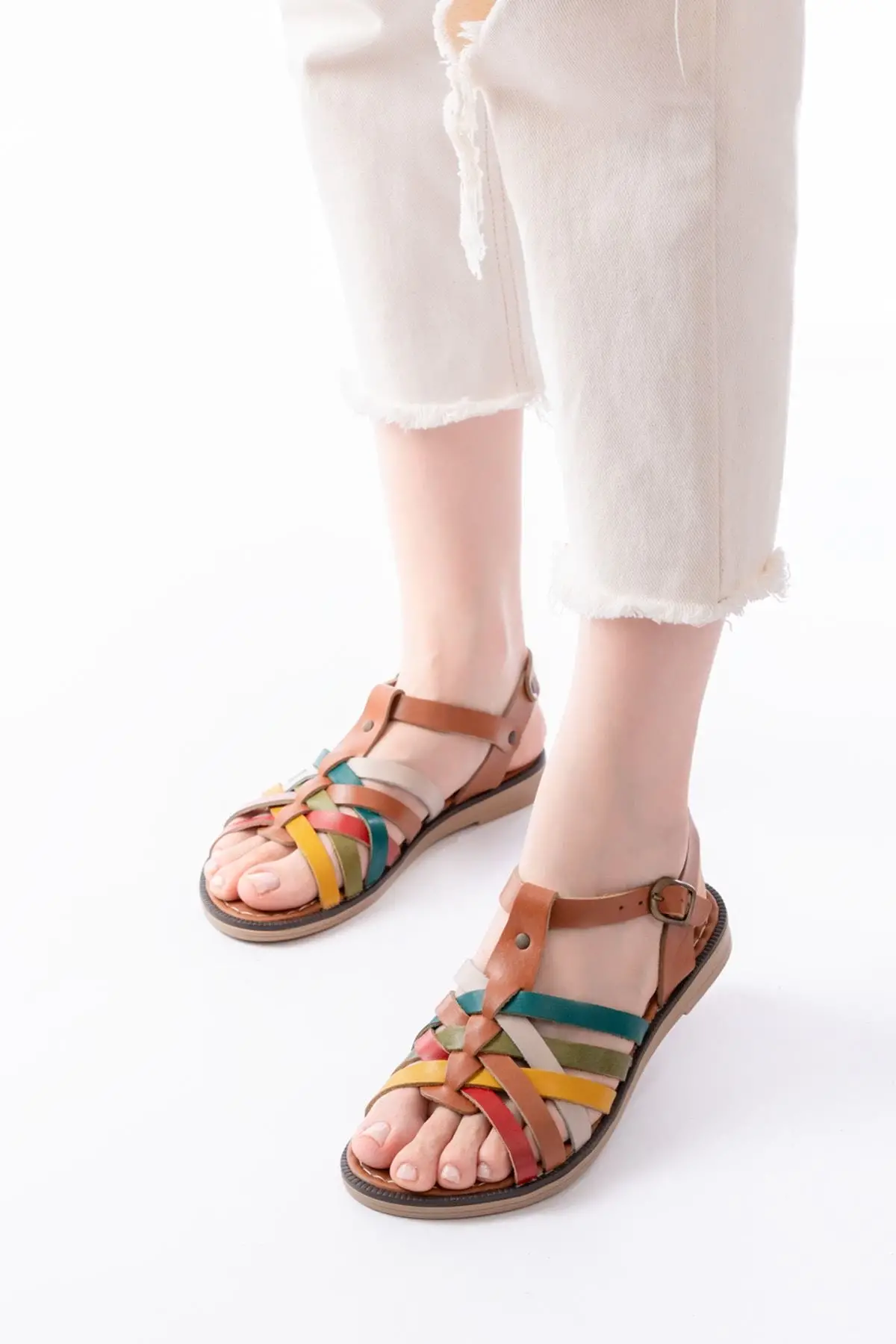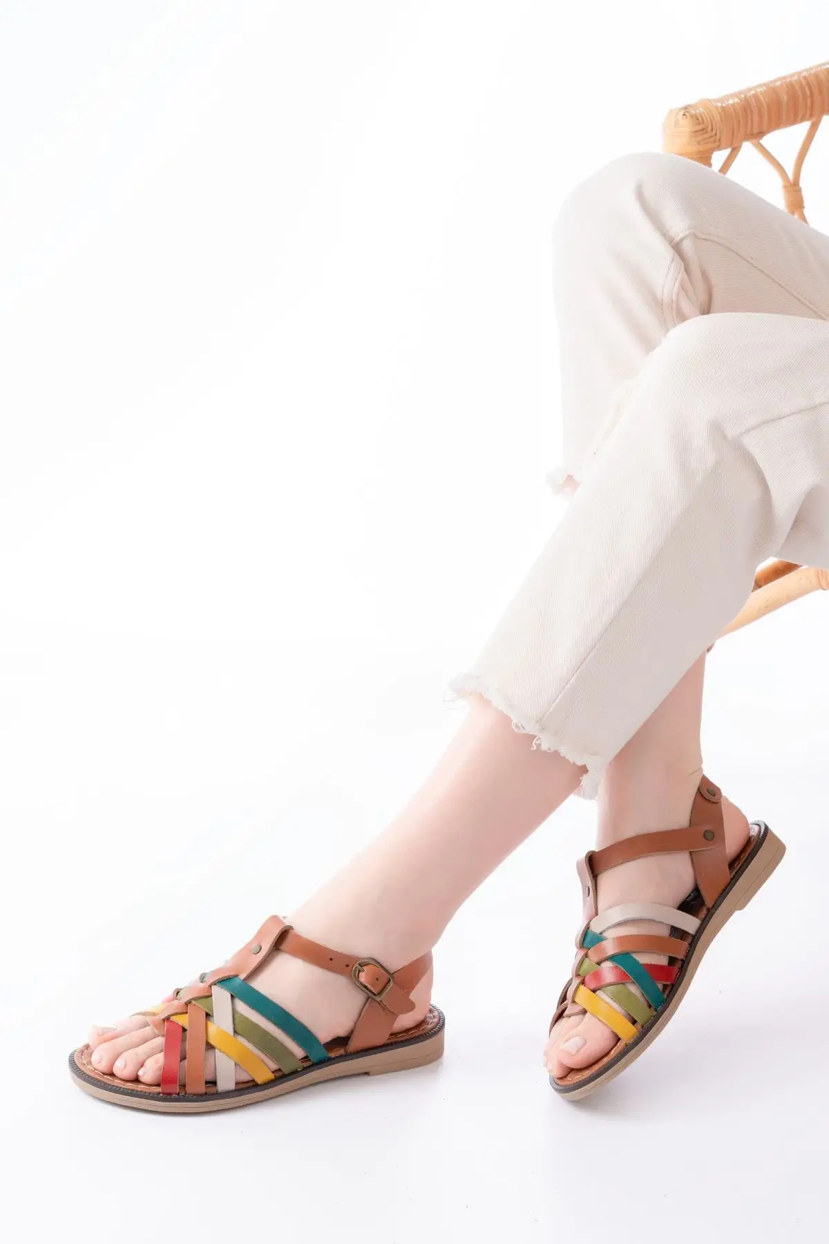 205-208 Multi Hakiki Deri Ortopedik Taban Kadın Sandalet