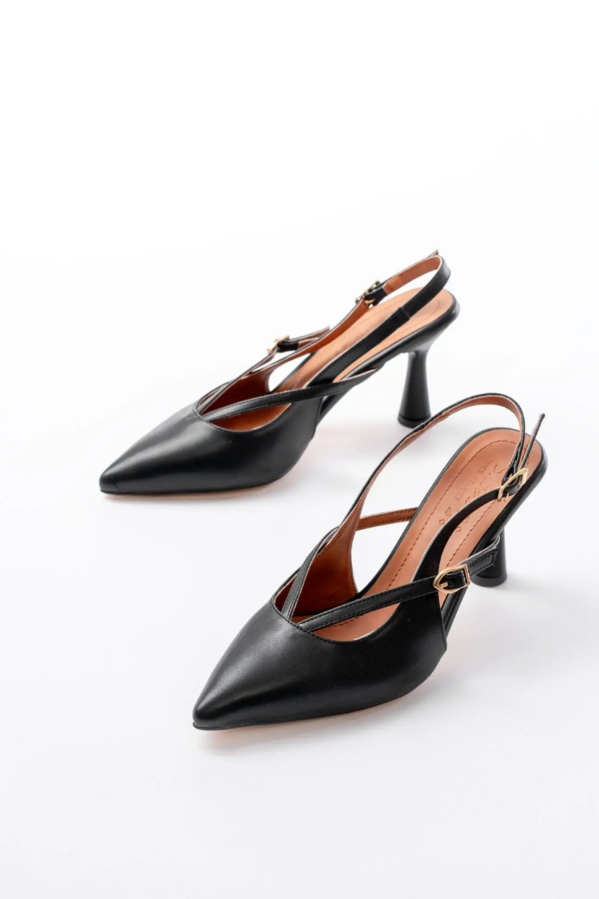 4962 Siyah Sivri Burun Tokalı Yuvarlak Topuk Kadın Sandalet