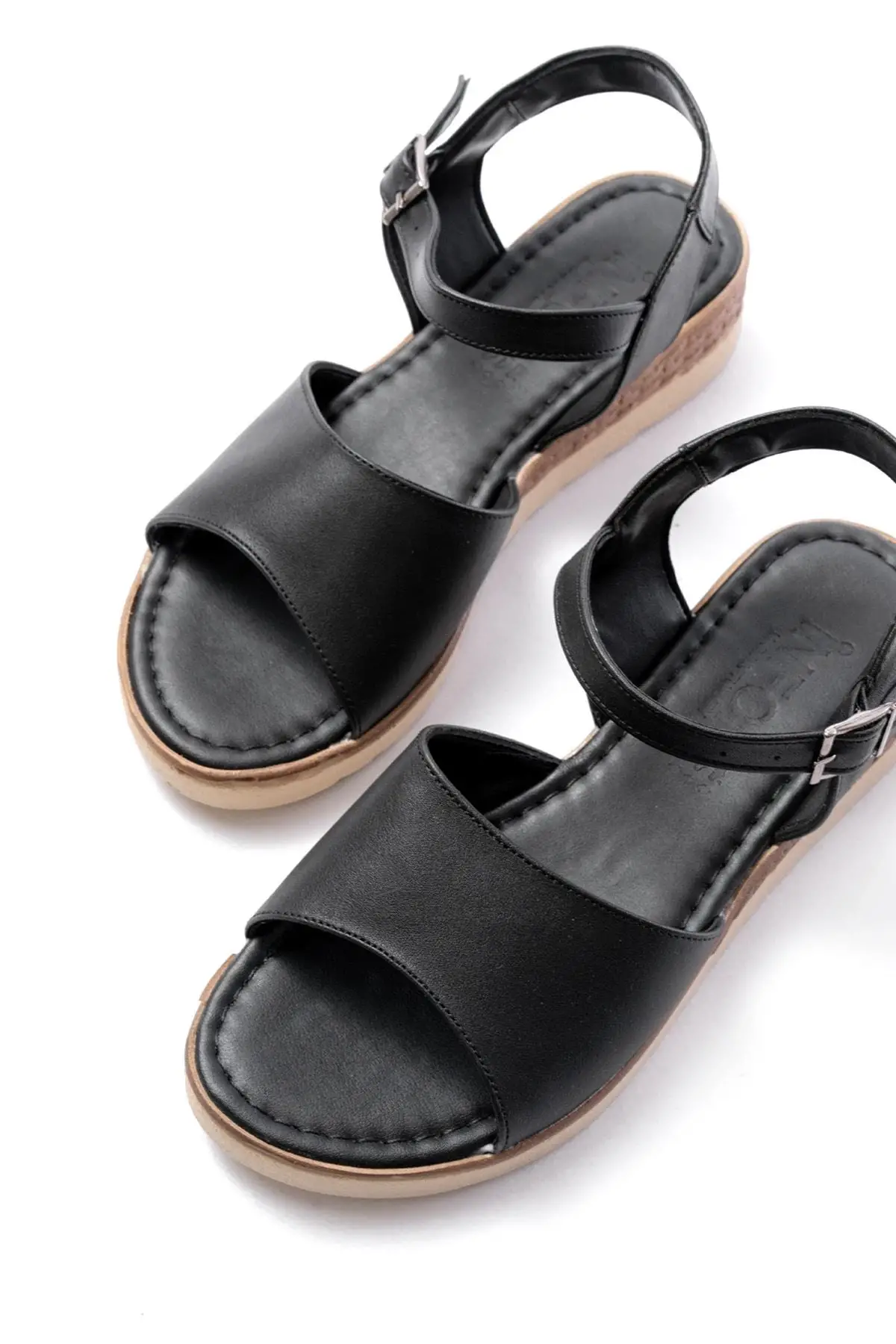 692-500 Siyah Ortopedik Taban Tokalı Kadın Sandalet