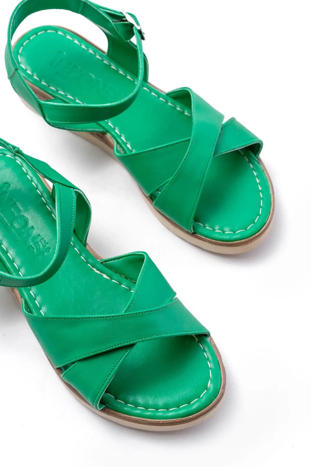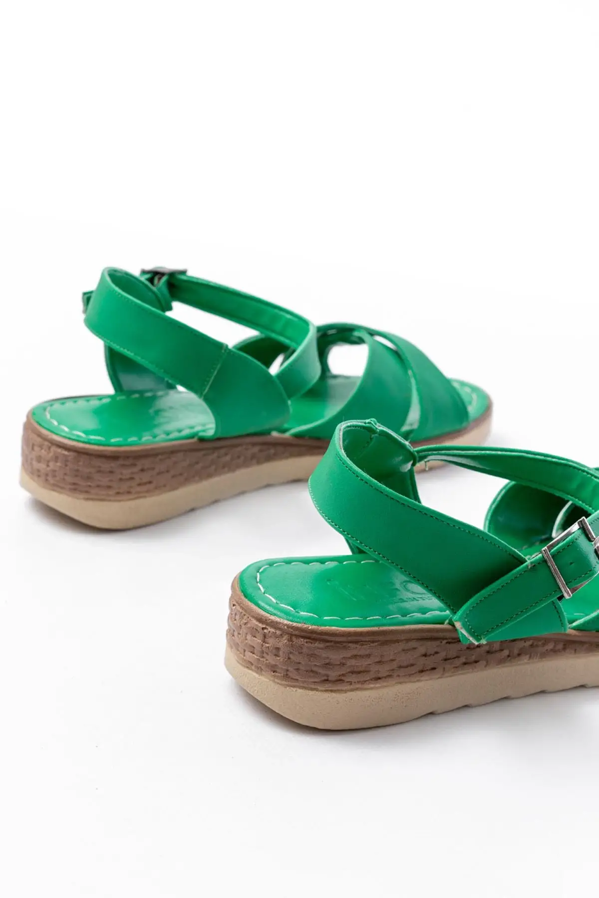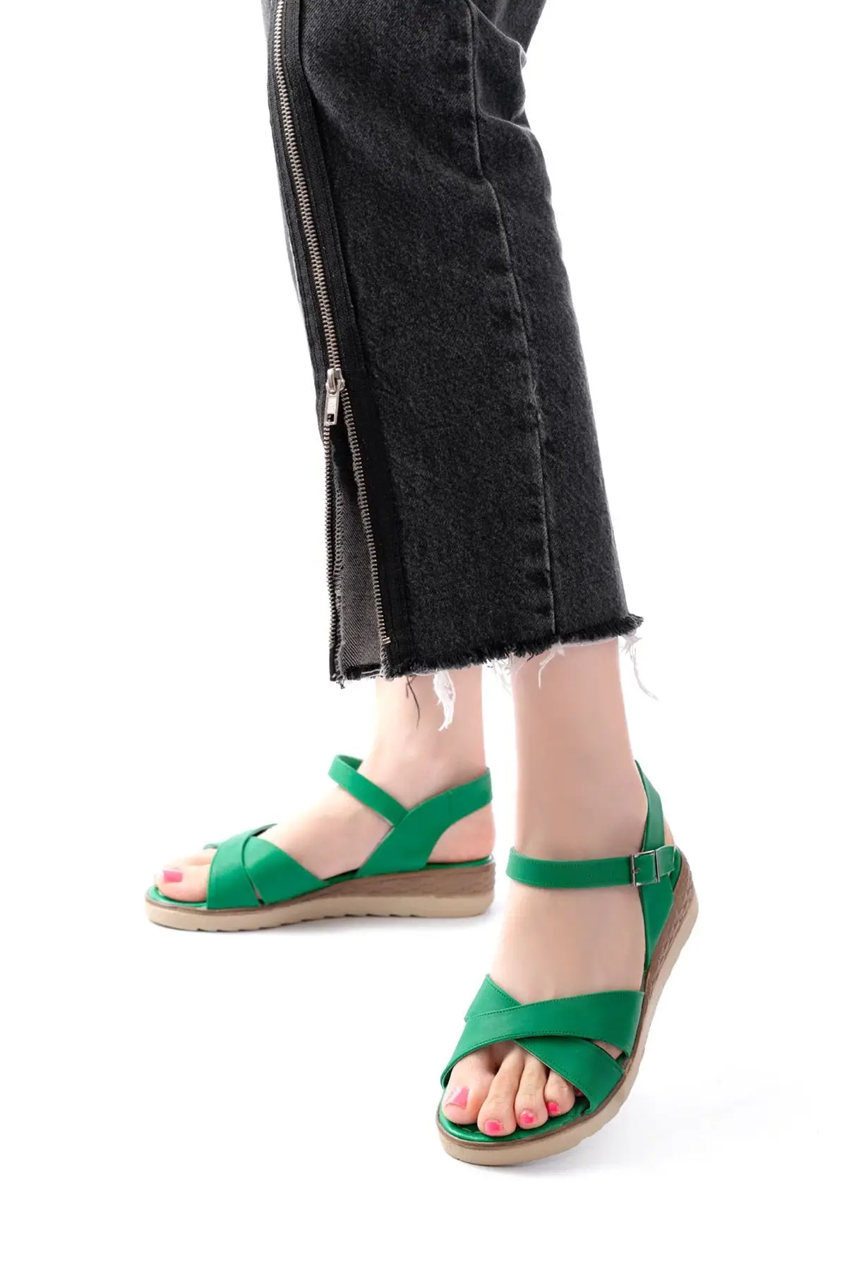 692-564 Çimen Yeşili Ortopedik Taban Çapraz Tokalı Kadın Sandalet