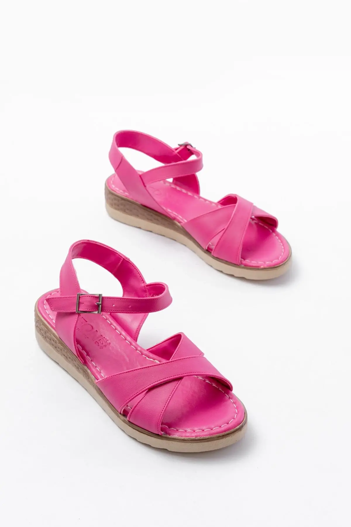 692-564 Fuşya Ortopedik Taban Çapraz Tokalı Kadın Sandalet