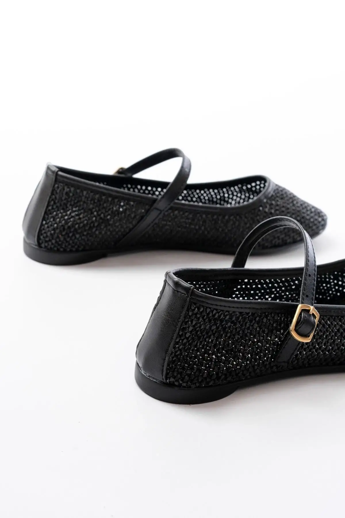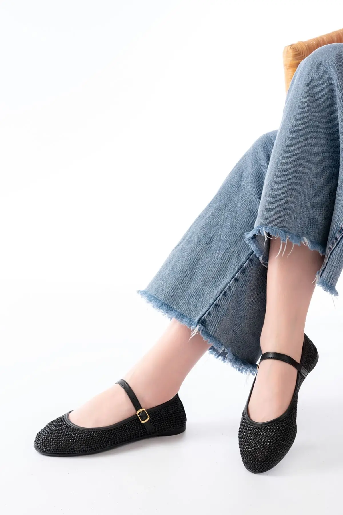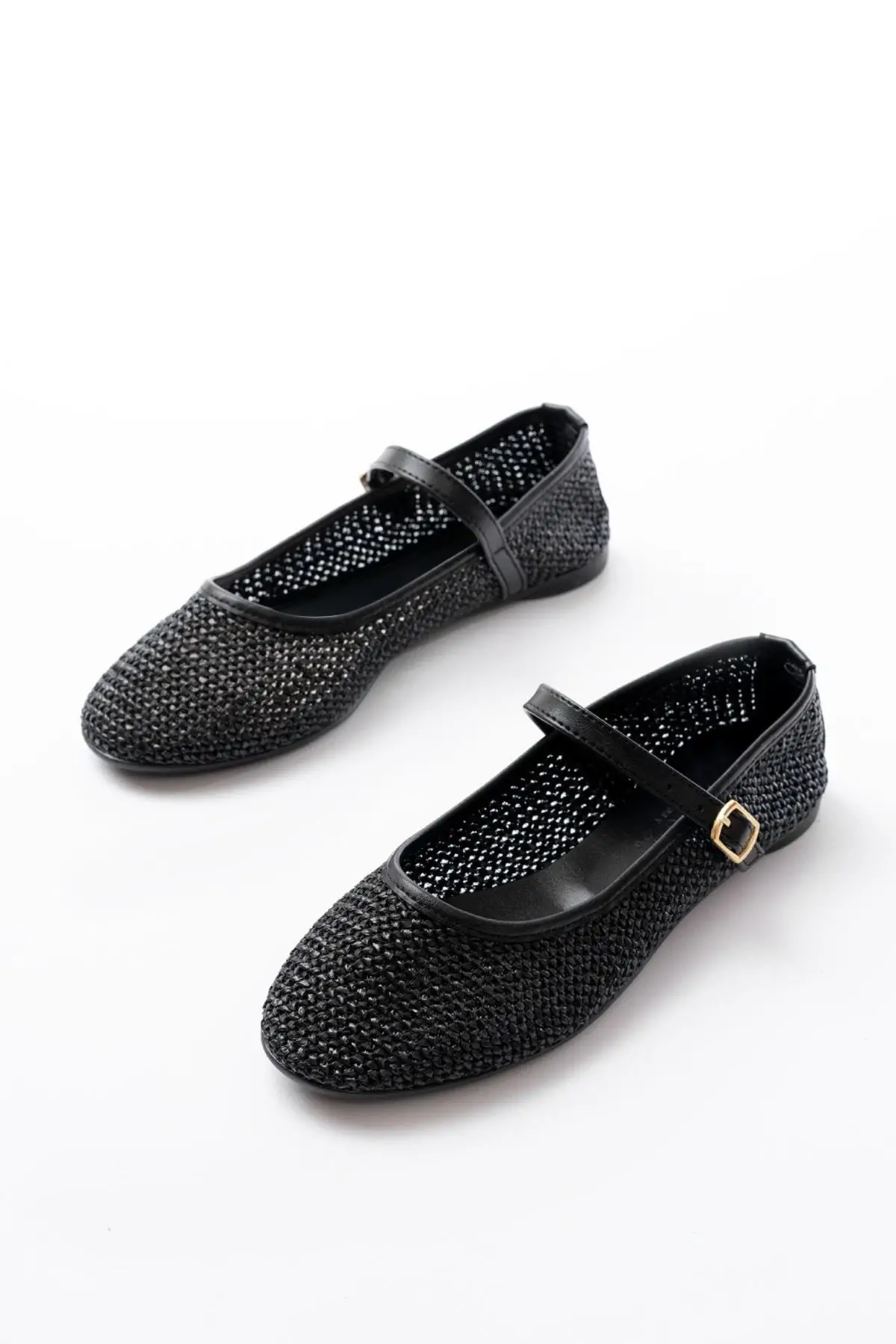 7432 Siyah Fileli Toka Detaylı Günlük Kadın Babet
