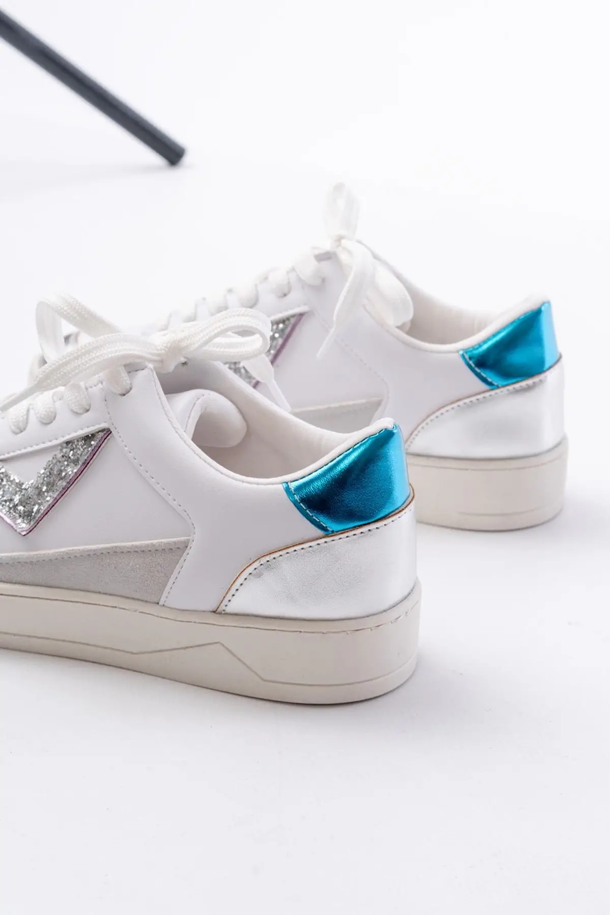Sv-01 Beyaz Garni Bağcıklı Kadın Spor Ayakkabı
